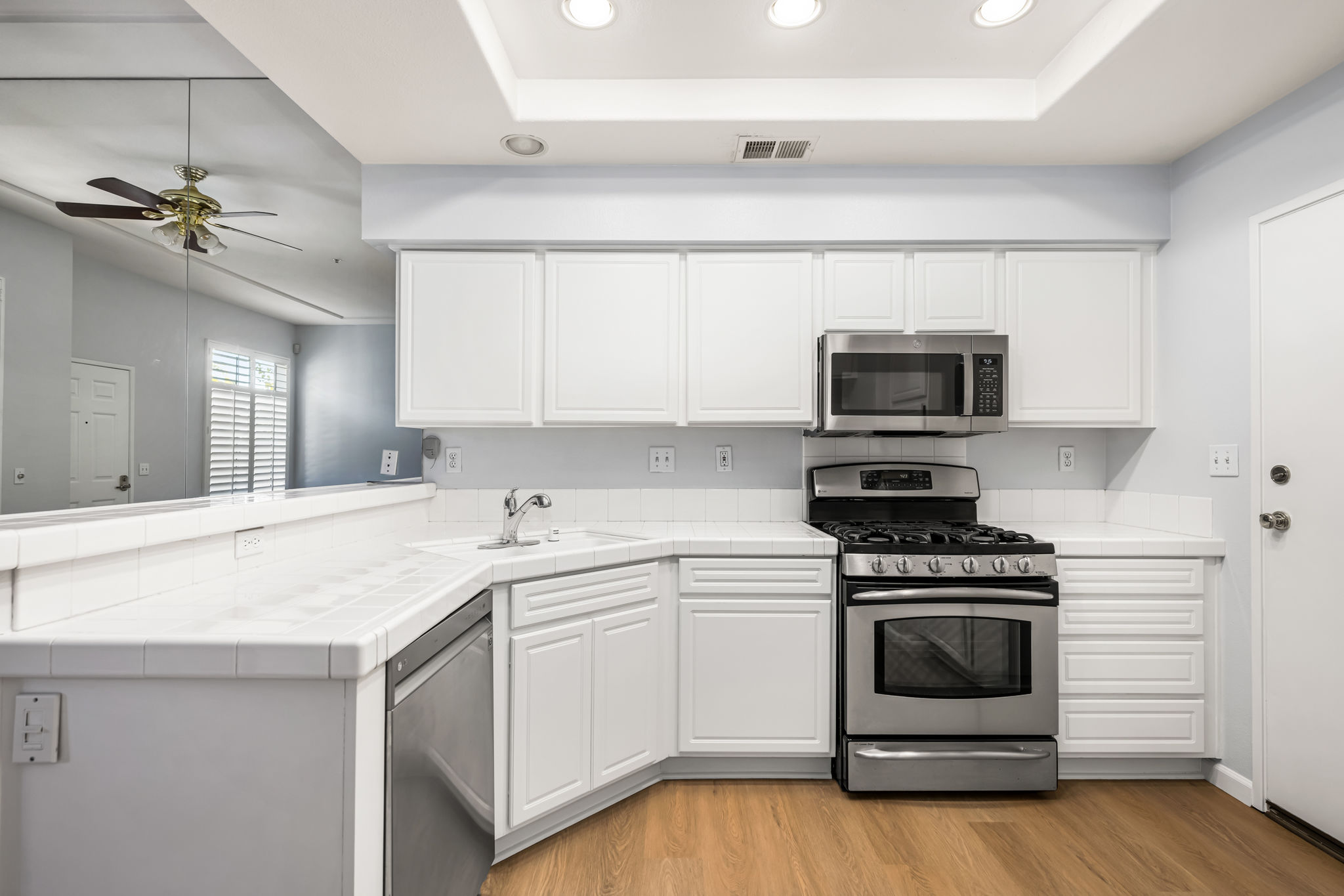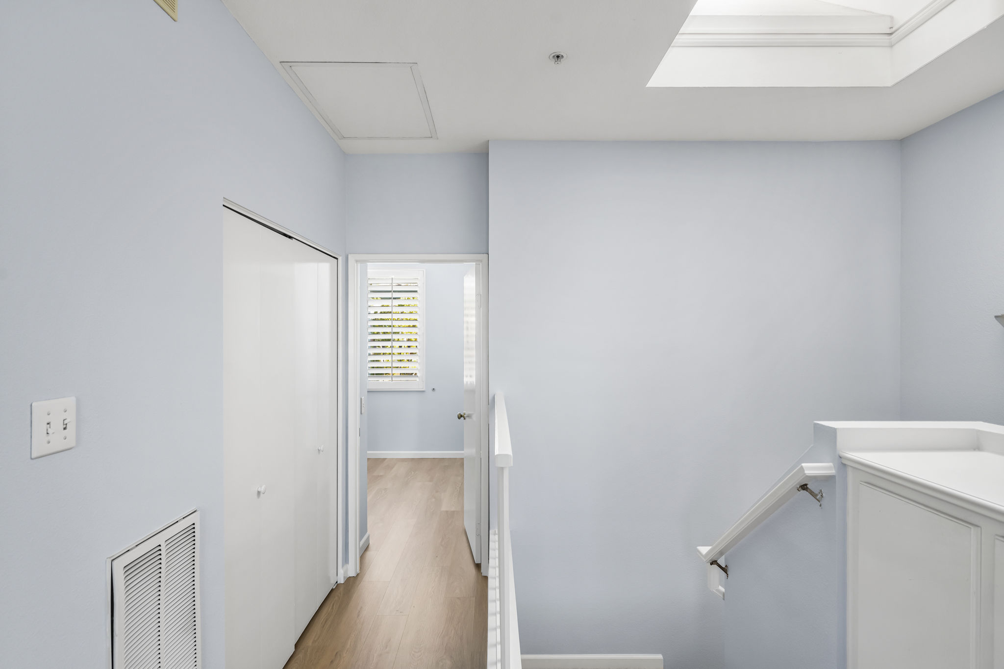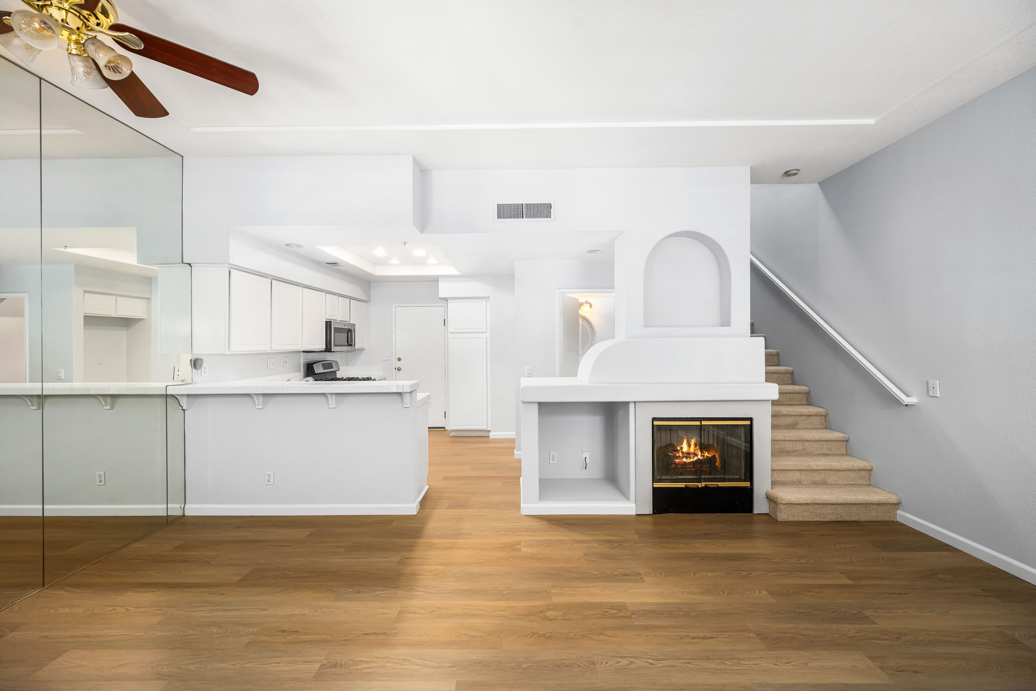 Welcome to this fabulous townhouse in the highly desirable Vineyards Community in the wonderful hillside community of Foothill Ranch. This light and bright 2 bedroom, 2.5 bath home with high ceilings, loads of windows and direct access from the two car garage, is just what you've been waiting for. You’ll love this prime and serene inside tract location with a gated front patio. This entire home has been freshly painted in a neutral designer color, with newly installed luxury vinyl. The large, sunny kitchen features a breakfast bar, recessed lighting, stainless steel appliances, and plenty of cabinet space for storage. The living room is spacious with a mirrored accent wall and has a cozy and inviting fireplace. Custom upgrades include: plantation shutters, ceiling fans, mirrored wardrobes, and closet organizers. There's a convenient downstairs powder room. Upstairs boasts a large primary suite with high ceilings, a ceiling fan, a bathroom vanity with dual sinks, an oval soaking tub, and a walk-in closet. The secondary bedroom has a full bathroom with a private balcony. The upper hall skylight allows for naturally infused sunlight. Vineyards' residents enjoy resort-style amenities including a pool/spa and children's playground. This townhouse is conveniently located close to the 241 toll road, award-winning schools, and is just minutes from Whiting Ranch Wilderness Park with its world-class mountain biking and hiking. Welcome Home!!
