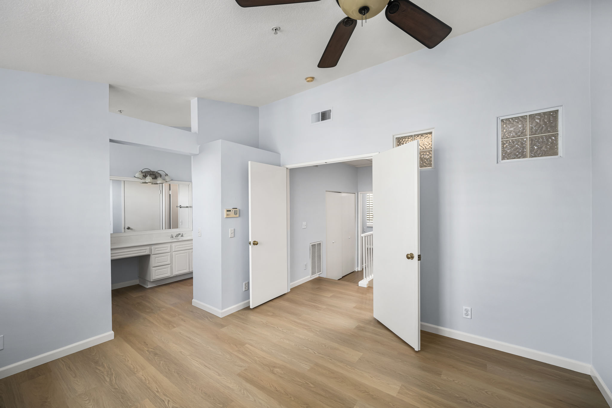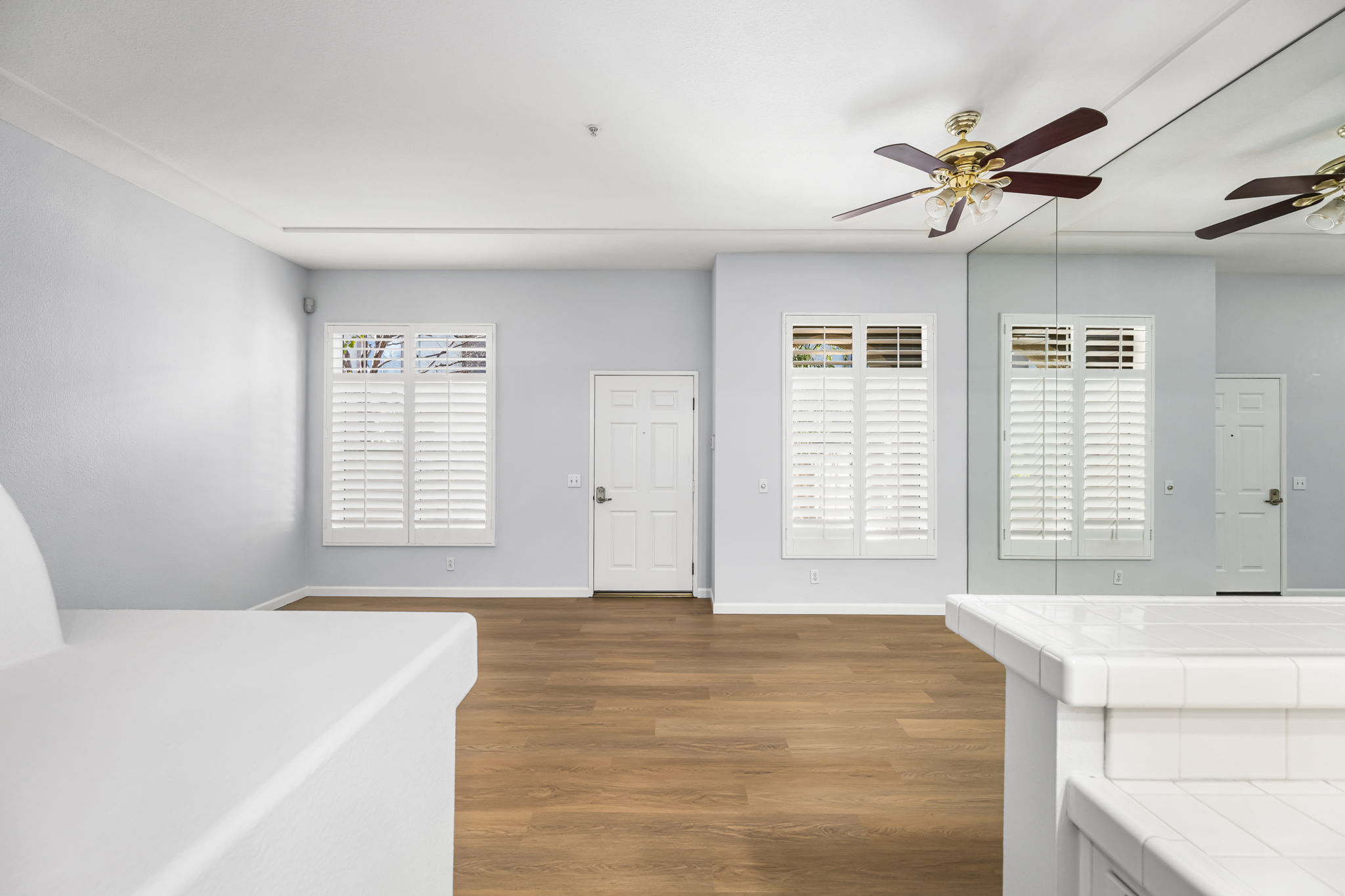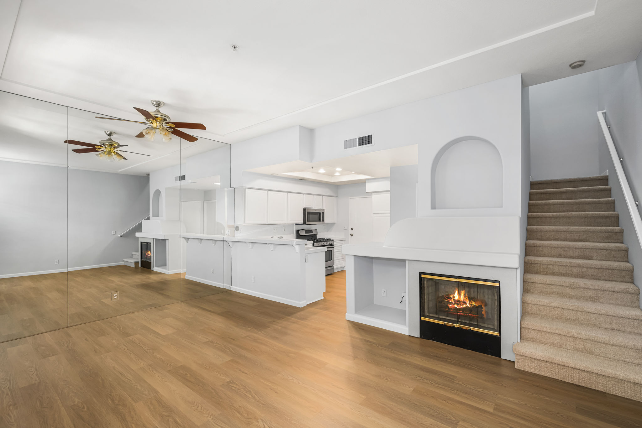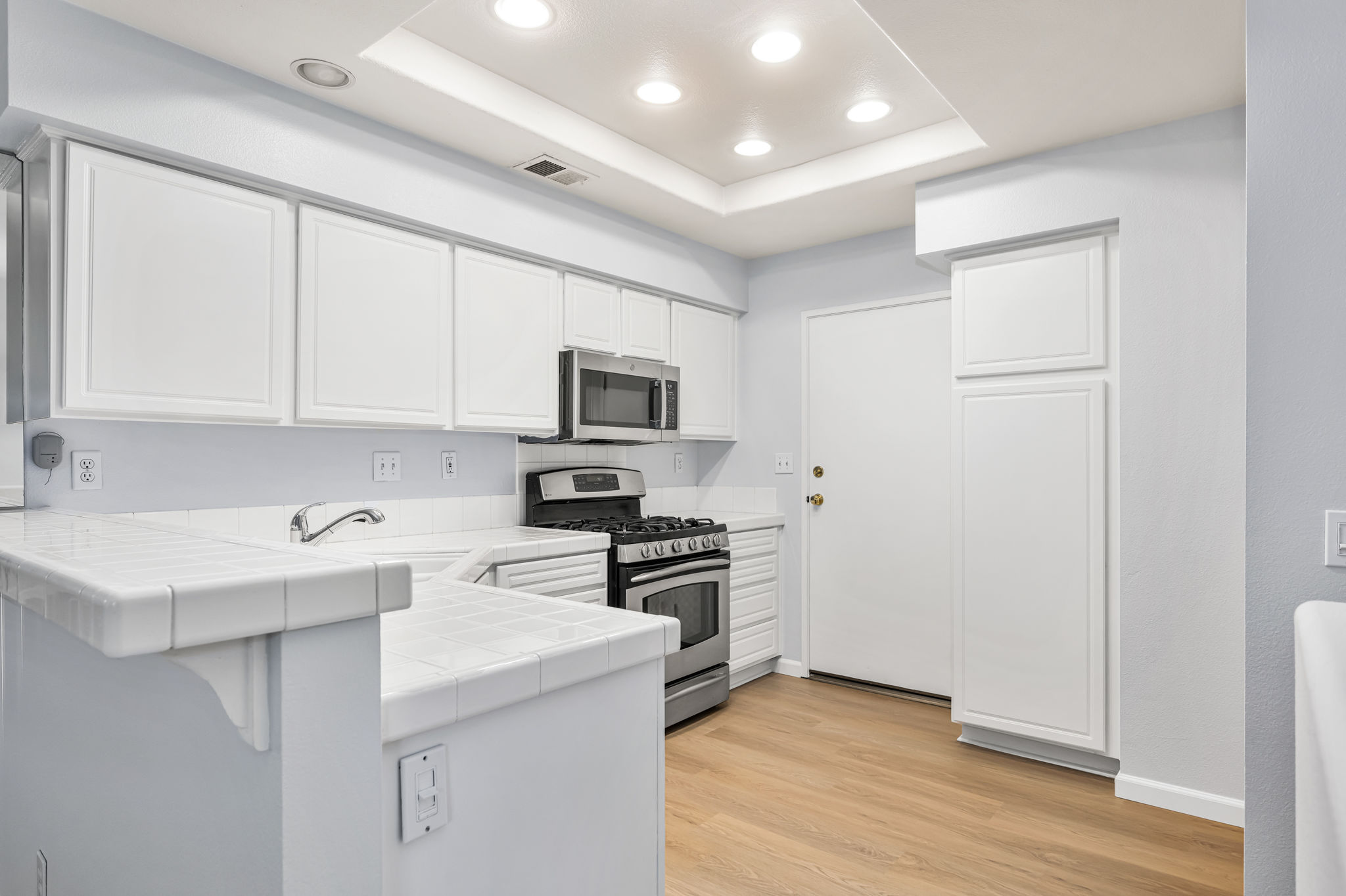 Welcome to this fabulous townhouse in the highly desirable Vineyards Community in the wonderful hillside community of Foothill Ranch. This light and bright 2 bedroom, 2.5 bath home with high ceilings, loads of windows and direct access from the two car garage, is just what you've been waiting for. You’ll love this prime and serene inside tract location with a gated front patio. This entire home has been freshly painted in a neutral designer color, with newly installed luxury vinyl. The large, sunny kitchen features a breakfast bar, recessed lighting, stainless steel appliances, and plenty of cabinet space for storage. The living room is spacious with a mirrored accent wall and has a cozy and inviting fireplace. Custom upgrades include: plantation shutters, ceiling fans, mirrored wardrobes, and closet organizers. There's a convenient downstairs powder room. Upstairs boasts a large primary suite with high ceilings, a ceiling fan, a bathroom vanity with dual sinks, an oval soaking tub, and a walk-in closet. The secondary bedroom has a full bathroom with a private balcony. The upper hall skylight allows for naturally infused sunlight. Vineyards' residents enjoy resort-style amenities including a pool/spa and children's playground. This townhouse is conveniently located close to the 241 toll road, award-winning schools, and is just minutes from Whiting Ranch Wilderness Park with its world-class mountain biking and hiking. Welcome Home!!