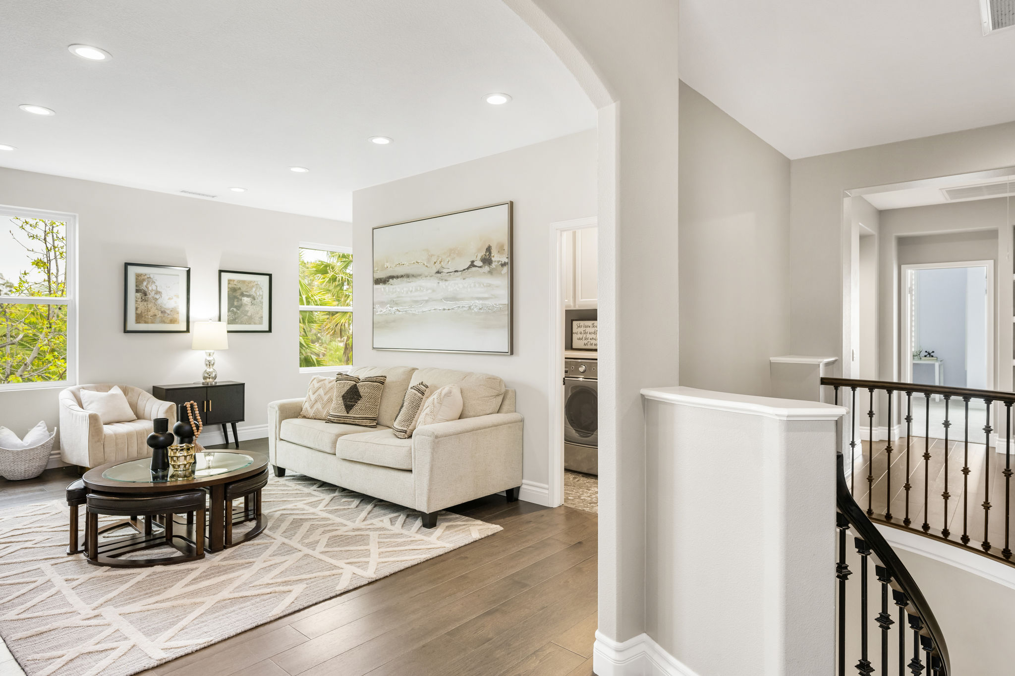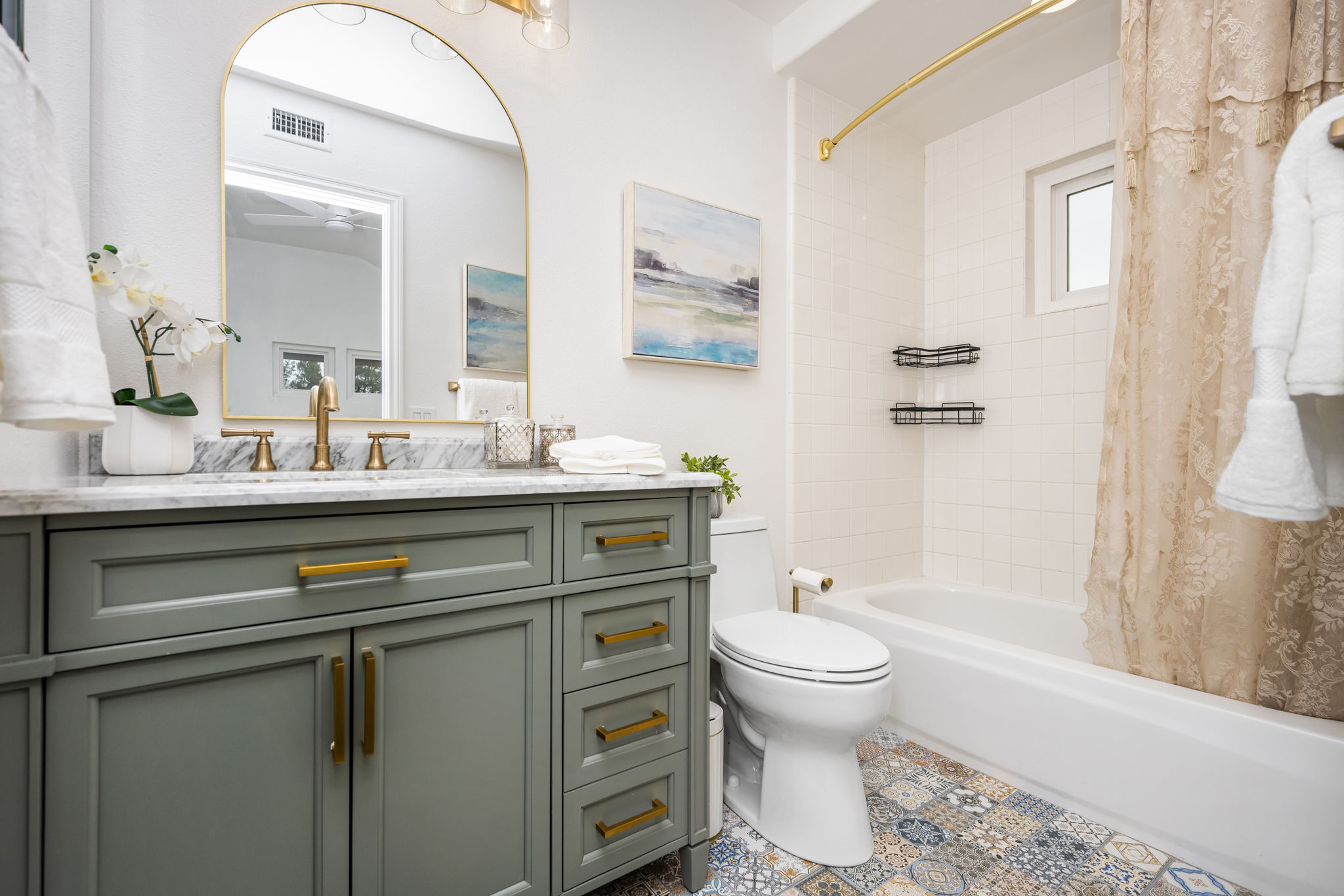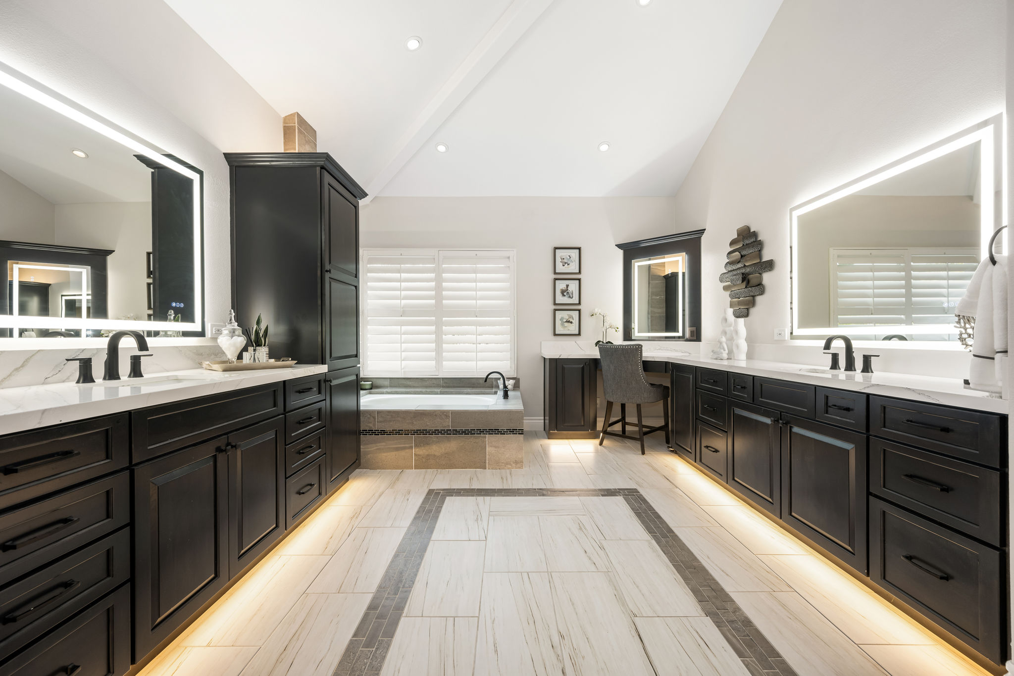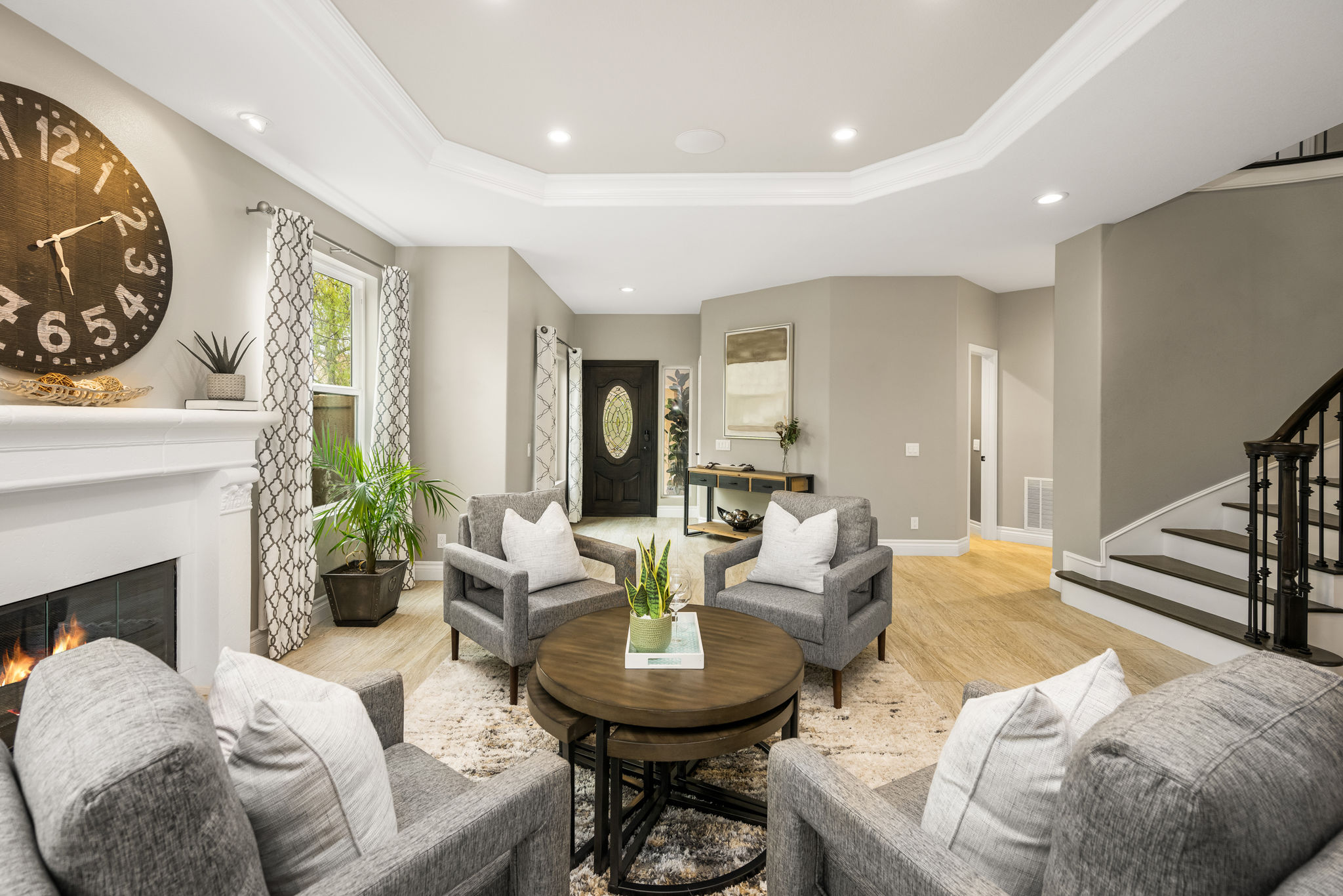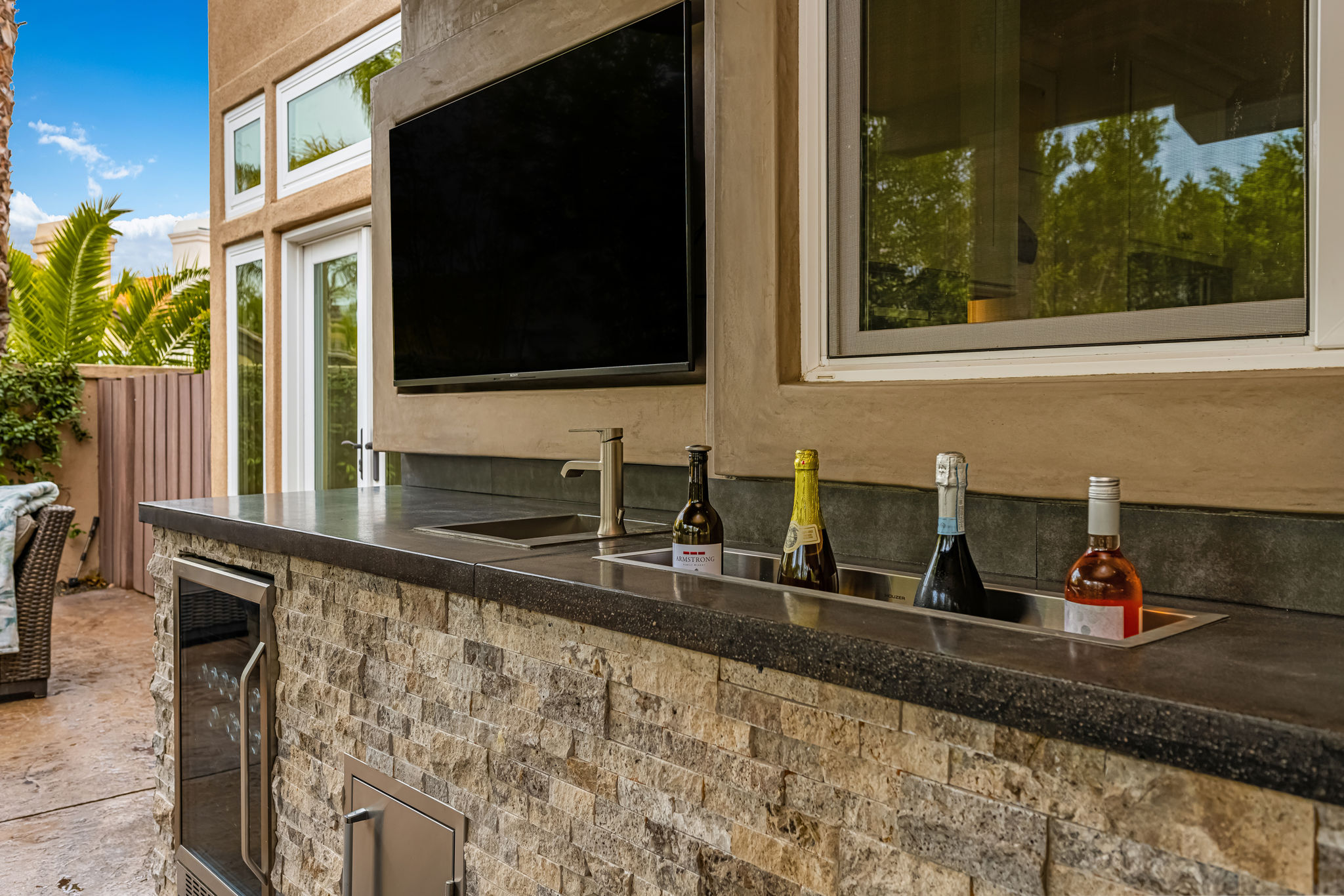 This is the one you've been waiting for — THE CROWN JEWEL OF FOOTHILL RANCH! Experience the exceptional luxury of this one-of-a-kind property with an expansive backyard oasis reminiscent of a 5-star resort. This newly remodeled masterpiece blends sophistication and exquisite architectural design, tailored for the discerning buyer. Featuring five en-suite bedrooms, 5.5 bathrooms, two fireplaces, and 4,000 sq. ft. of elegance and luxury. This entertainer's dream home welcomes you with a grand entrance into the formal living room, warmed by a fireplace and highlighted by a sweeping staircase. Custom-tiled flooring flows seamlessly through the open spaces, leading into the heart of the home — your dream kitchen. Top-of-the-line appliances include a Wolf dual-range six-burner stove, convection oven, Wolf Pro wall-vented hood, Wolf convection steam oven, Frigidaire Professional refrigerator, Bosch Silence dishwasher, and an in-wall pot filler. These complement the oversized island with seating. Quartz countertops, a custom glass backsplash, and a walk-in pantry complete this culinary haven. The family room and dining area embrace the open-concept floor plan, enhanced by expansive folding glass doors that seamlessly connect the indoor and outdoor living spaces. Guests will appreciate the downstairs en-suite bedroom, while the separate dedicated office offers serene views of the beautiful backyard. The primary suite with a retreat boasts a two-sided fireplace, a remodeled bath with separate vanities, a soaking tub, a custom spa shower with multiple shower heads, and a large walk-in closet with custom organizers. A loft with a media center and a laundry room serves the three additional spacious en-suite bedrooms. Custom upgrades include all-new doors, vinyl windows, a whole-house whisper fan, seller-owned solar, 15-foot retractable wall-to-patio folding doors, and two variable-speed heat pumps with zone ducting. The home automation system distributes audio/video and integrates lighting, security, HVAC & pool controls w/ a touch. No expense was spared in the recently renovated resort-style entertainer's backyard, with a gorgeous pool and spa, a custom outdoor kitchen with a BBQ, a bar with a refrigerator, a warming tray, a pizza oven, and a wide-screen TV. Relax under the custom patio cover with built-in gas heaters, a wine trough, a fridge, sink, and wide-screen TV. Enjoy sunny lounging areas, a gas fire pit, and a large raised vegetable garden.