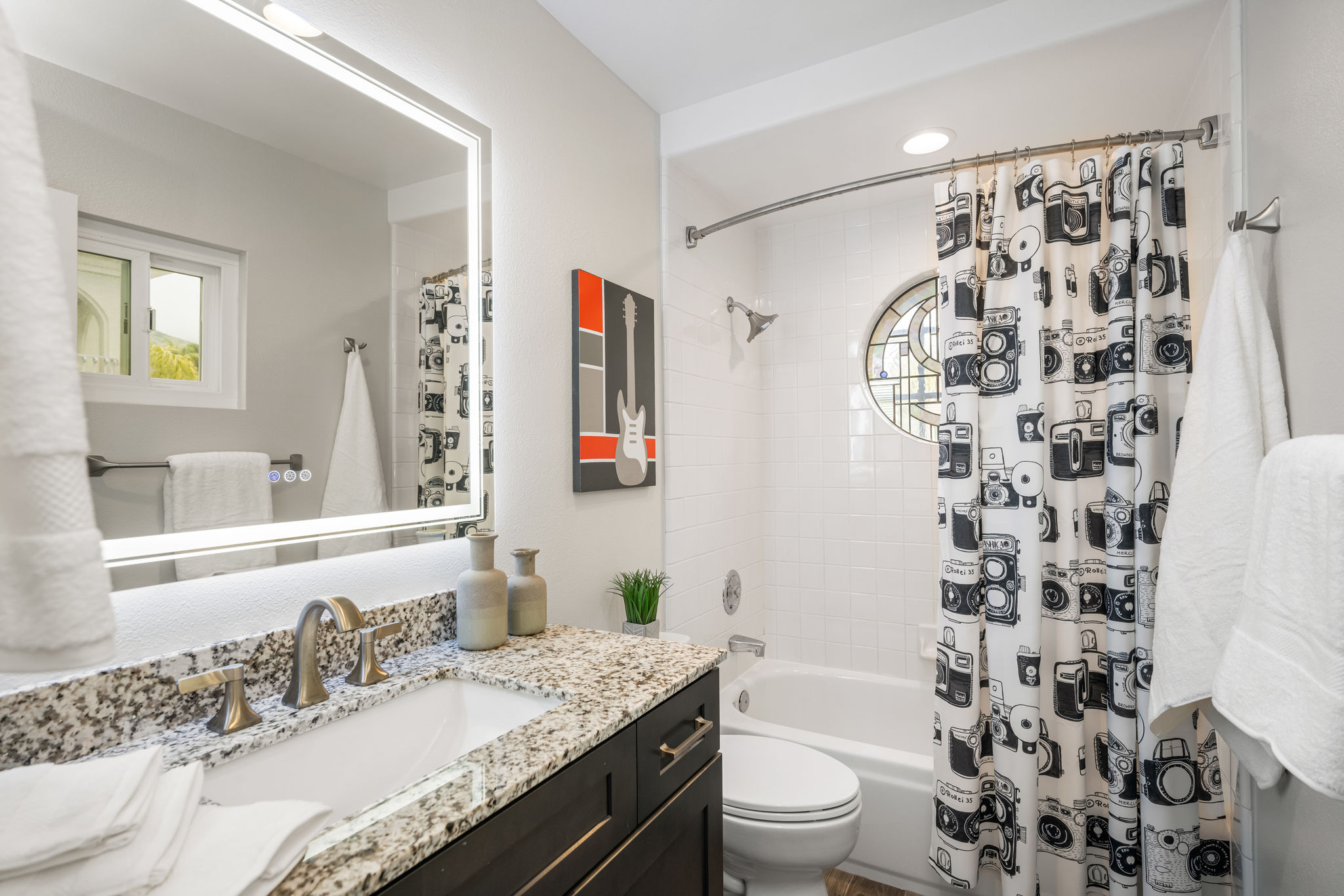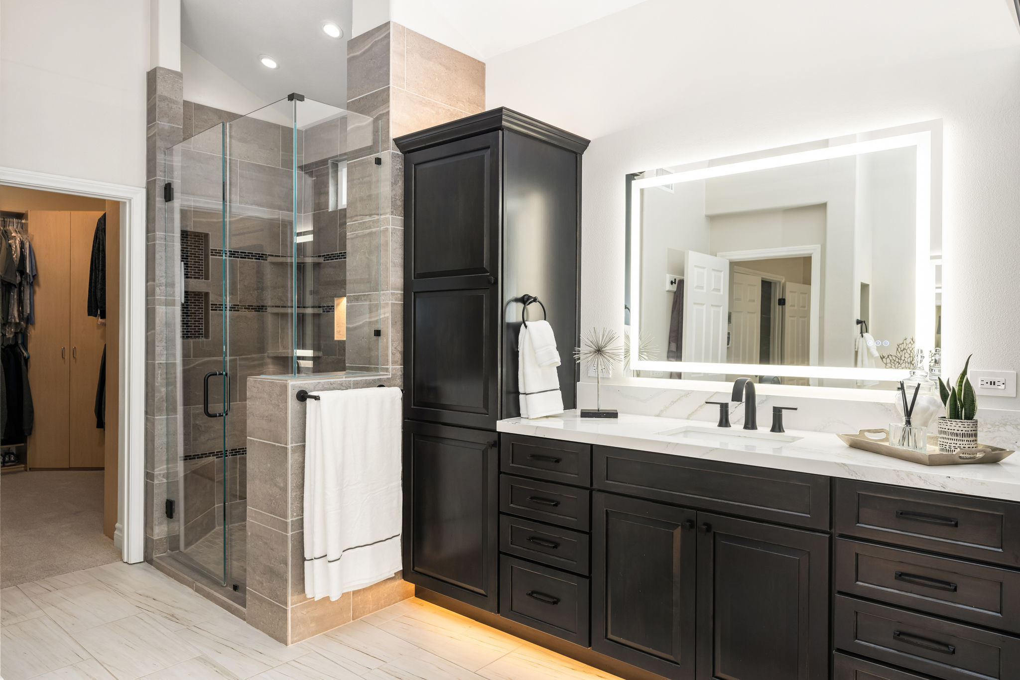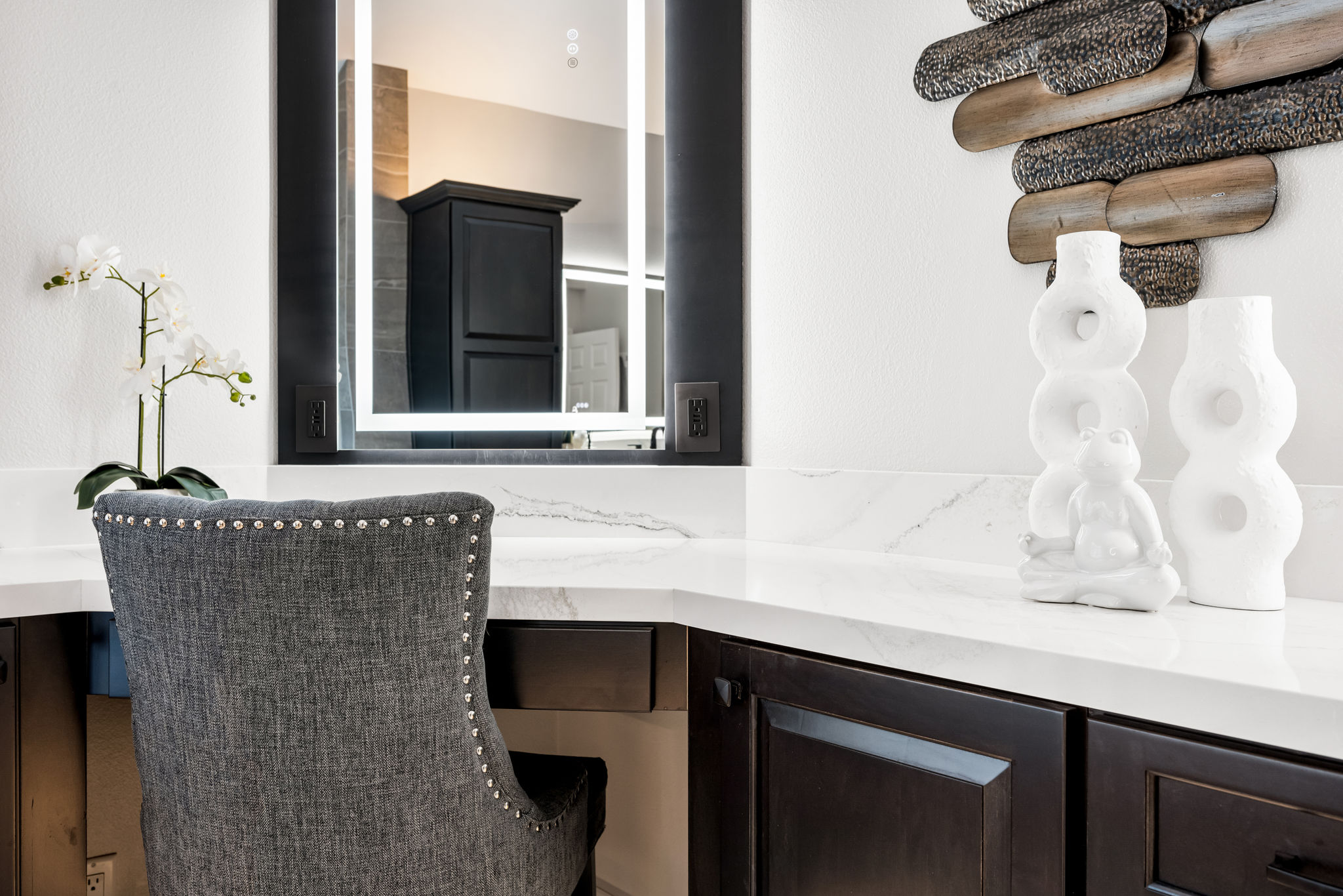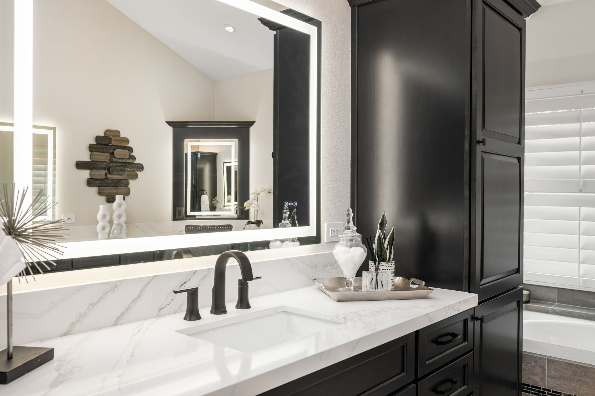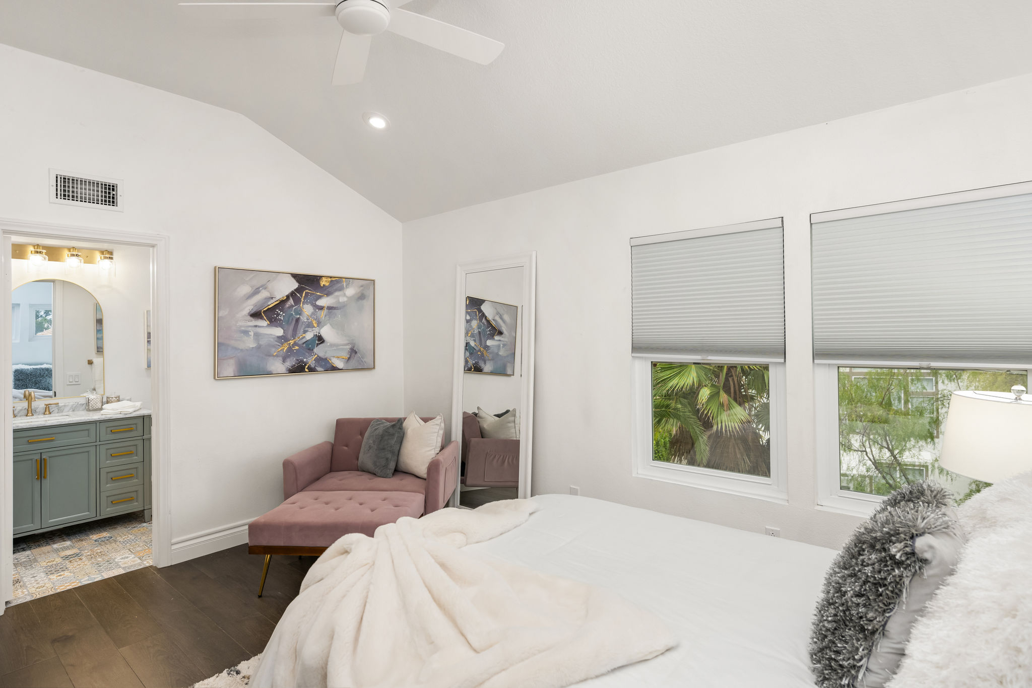 This is the one you've been waiting for — THE CROWN JEWEL OF FOOTHILL RANCH! Experience the exceptional luxury of this one-of-a-kind property with an expansive backyard oasis reminiscent of a 5-star resort. This newly remodeled masterpiece blends sophistication and exquisite architectural design, tailored for the discerning buyer. Featuring five en-suite bedrooms, 5.5 bathrooms, two fireplaces, and 4,000 sq. ft. of elegance and luxury. This entertainer's dream home welcomes you with a grand entrance into the formal living room, warmed by a fireplace and highlighted by a sweeping staircase. Custom-tiled flooring flows seamlessly through the open spaces, leading into the heart of the home — your dream kitchen. Top-of-the-line appliances include a Wolf dual-range six-burner stove, convection oven, Wolf Pro wall-vented hood, Wolf convection steam oven, Frigidaire Professional refrigerator, Bosch Silence dishwasher, and an in-wall pot filler. These complement the oversized island with seating. Quartz countertops, a custom glass backsplash, and a walk-in pantry complete this culinary haven. The family room and dining area embrace the open-concept floor plan, enhanced by expansive folding glass doors that seamlessly connect the indoor and outdoor living spaces. Guests will appreciate the downstairs en-suite bedroom, while the separate dedicated office offers serene views of the beautiful backyard. The primary suite with a retreat boasts a two-sided fireplace, a remodeled bath with separate vanities, a soaking tub, a custom spa shower with multiple shower heads, and a large walk-in closet with custom organizers. A loft with a media center and a laundry room serves the three additional spacious en-suite bedrooms. Custom upgrades include all-new doors, vinyl windows, a whole-house whisper fan, seller-owned solar, 15-foot retractable wall-to-patio folding doors, and two variable-speed heat pumps with zone ducting. The home automation system distributes audio/video and integrates lighting, security, HVAC & pool controls w/ a touch. No expense was spared in the recently renovated resort-style entertainer's backyard, with a gorgeous pool and spa, a custom outdoor kitchen with a BBQ, a bar with a refrigerator, a warming tray, a pizza oven, and a wide-screen TV. Relax under the custom patio cover with built-in gas heaters, a wine trough, a fridge, sink, and wide-screen TV. Enjoy sunny lounging areas, a gas fire pit, and a large raised vegetable garden.