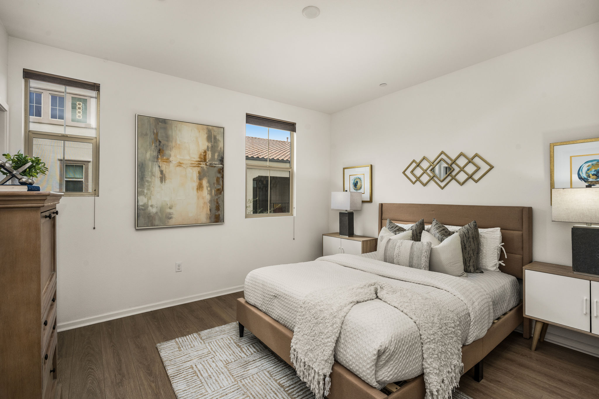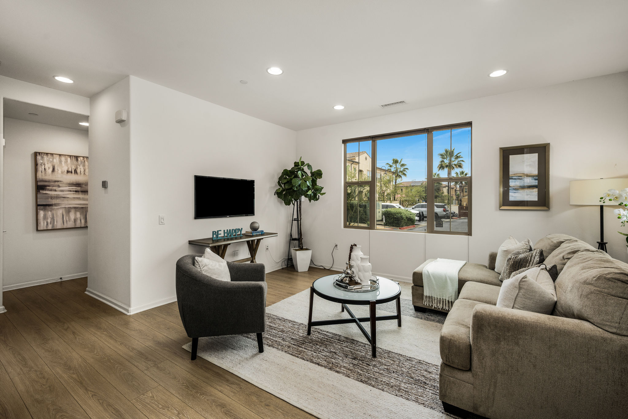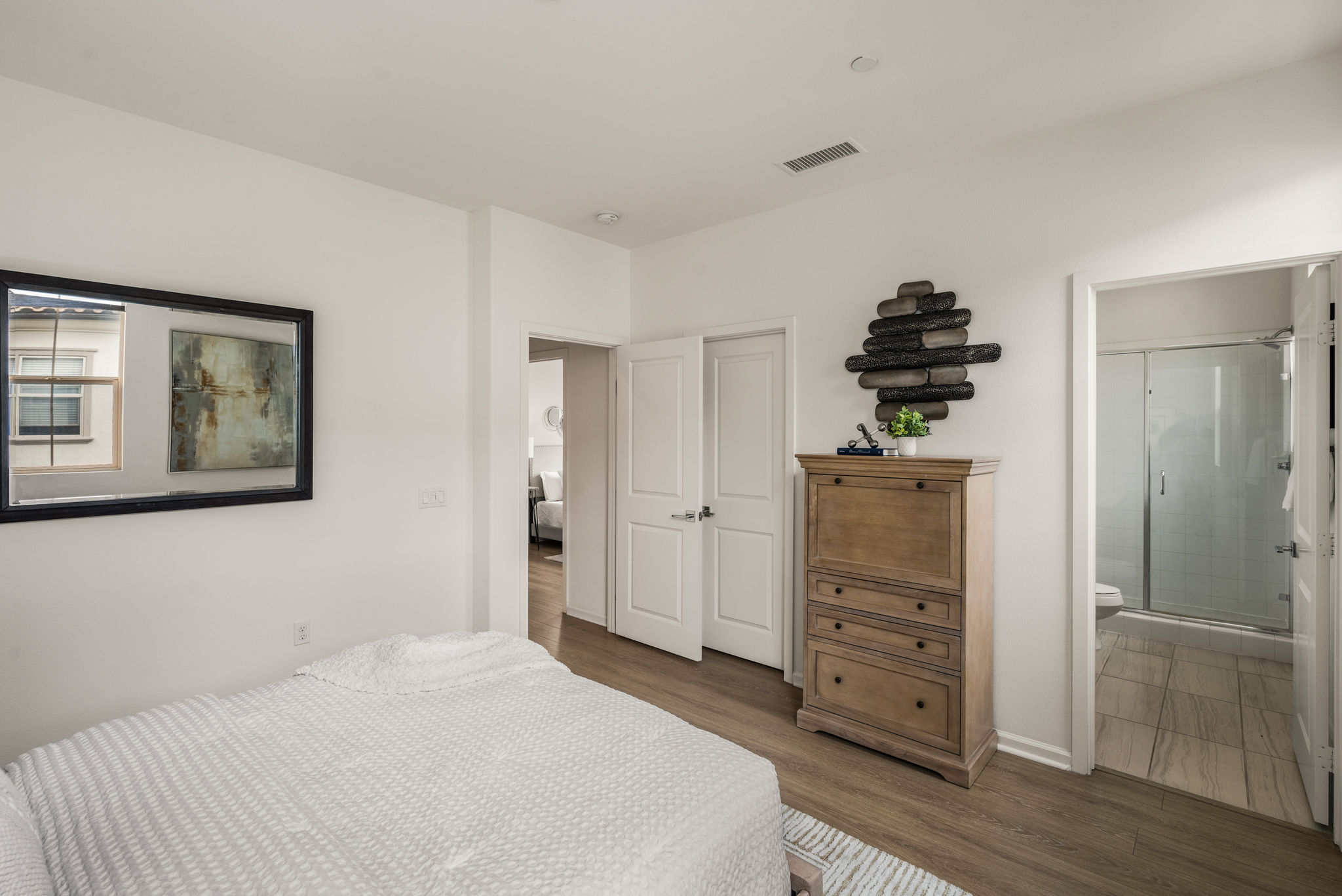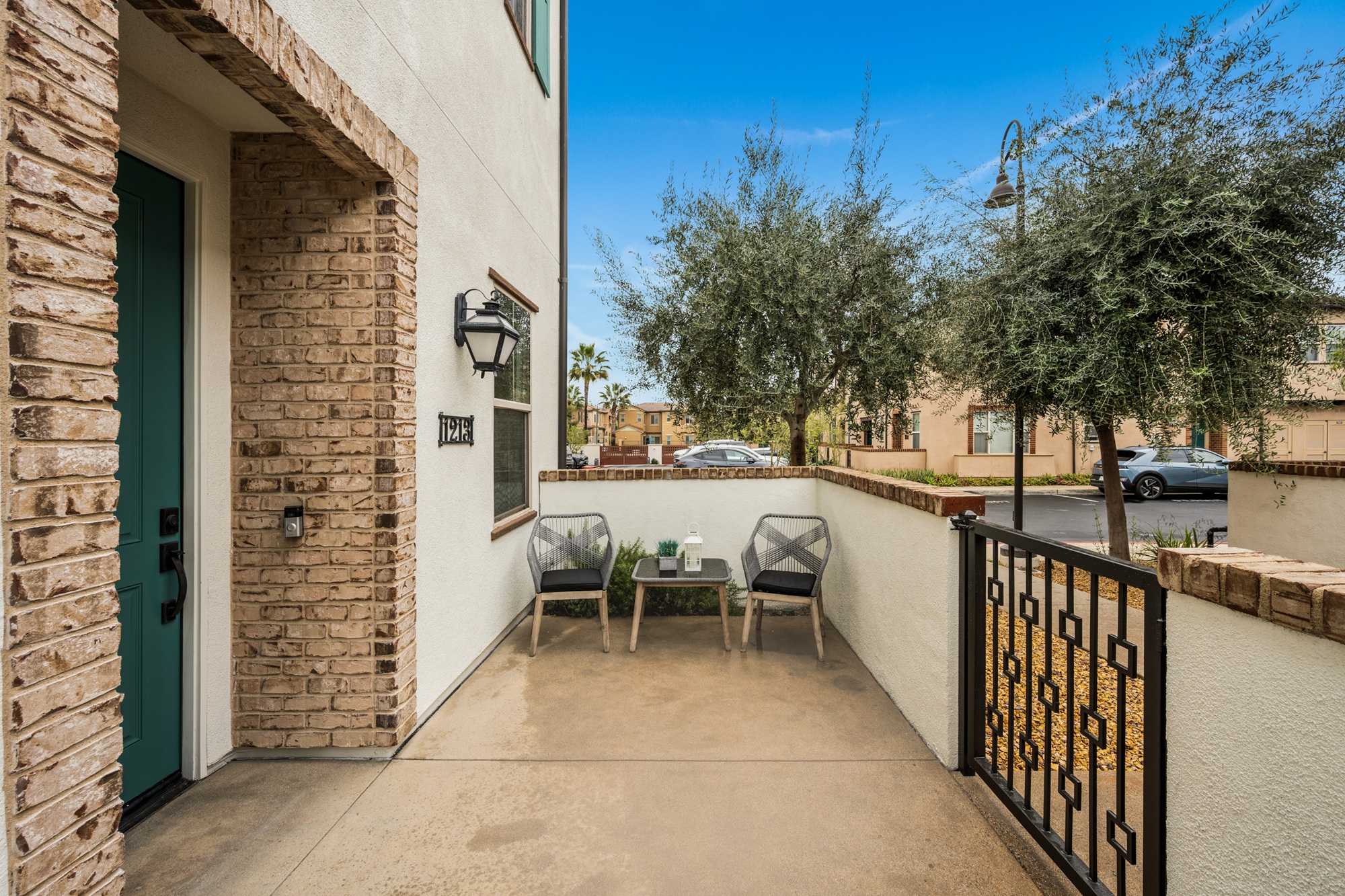 Resort-style living with low HOA and no Mello-Roos—this turnkey townhome checks all the boxes! Welcome to this beautifully upgraded 2-bedroom, 2.5-bath residence with an attached two-car garage, set on a corner location in the scenic hills of Foothill Ranch. Located within the highly desirable, gated, Spanish-inspired community of El Paseo, this home offers comfort, style, and everyday convenience. Thoughtfully designed across two levels, the residence welcomes you through a charming private patio—perfect for enjoying your morning coffee or unwinding at the end of the day. Inside, an open and airy floor plan seamlessly connects the kitchen and living space, creating an ideal setting for everyday living and entertaining. The kitchen is highlighted by quartz countertops, rich wood cabinetry, stainless steel appliances, and luxury vinyl flooring. The light-filled living room features large windows with Bali shades, providing a warm and inviting atmosphere. The main level is complete with a half bath, an indoor laundry closet, a coat closet, and direct access to the two-car garage. Upstairs, both bedrooms offer private en-suite bathrooms. The primary suite includes a custom bathroom with a single vanity, a walk-in shower, and a generous walk-in closet. The secondary bedroom features a spacious closet and an en-suite bathroom with a single vanity and a shower-tub combination. Additional upgrades include recessed lighting, baseboards, and epoxy flooring in the garage. Residents enjoy access to El Paseo’s resort-style amenities, including a pool, clubhouse, and playground. Conveniently located near shopping, dining, grocery stores, entertainment, parks, and miles of hiking and mountain biking trails. This home offers the perfect blend of comfort, style, and lifestyle convenience. Hurry-At this price, it won't last long!
