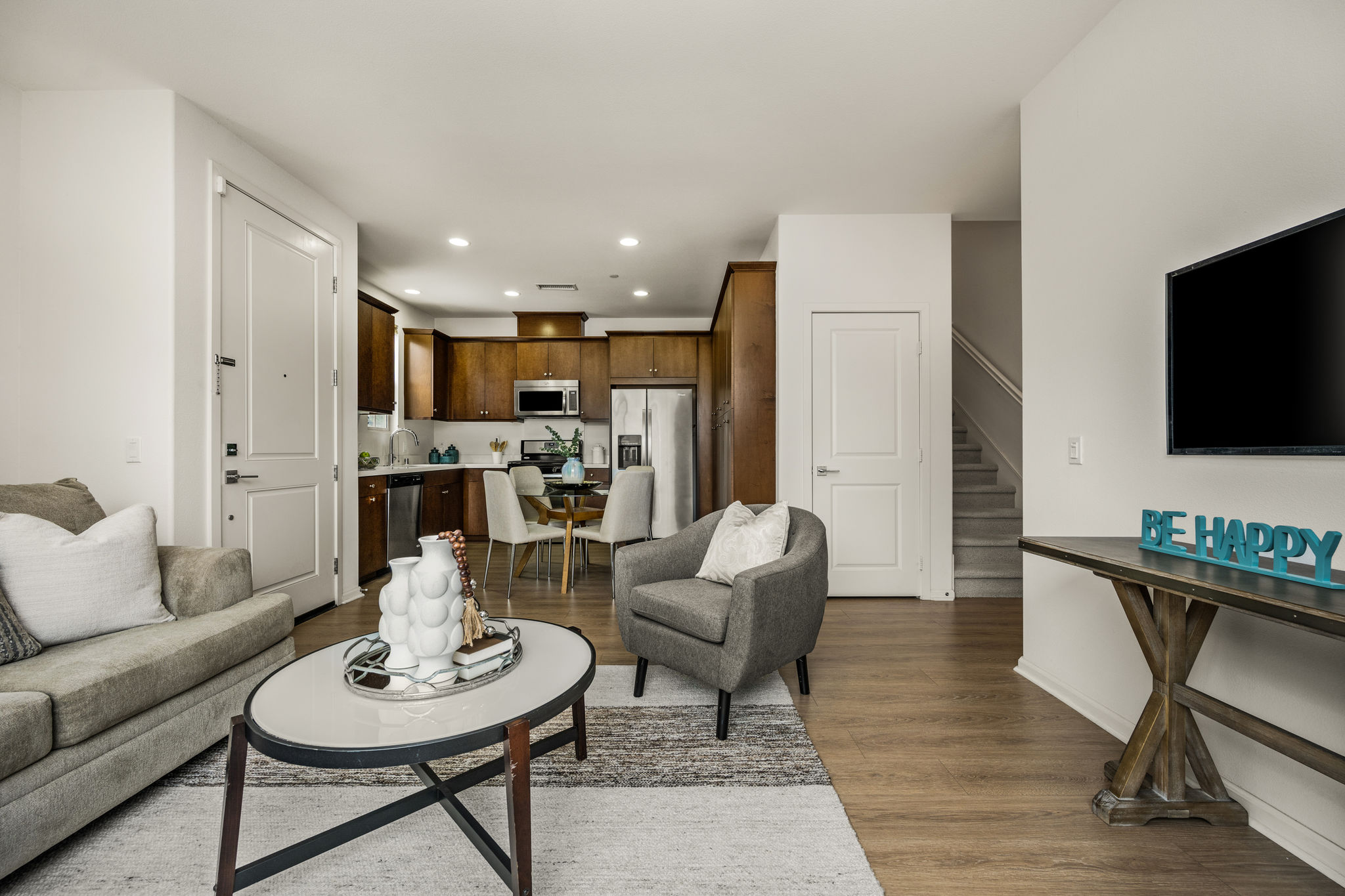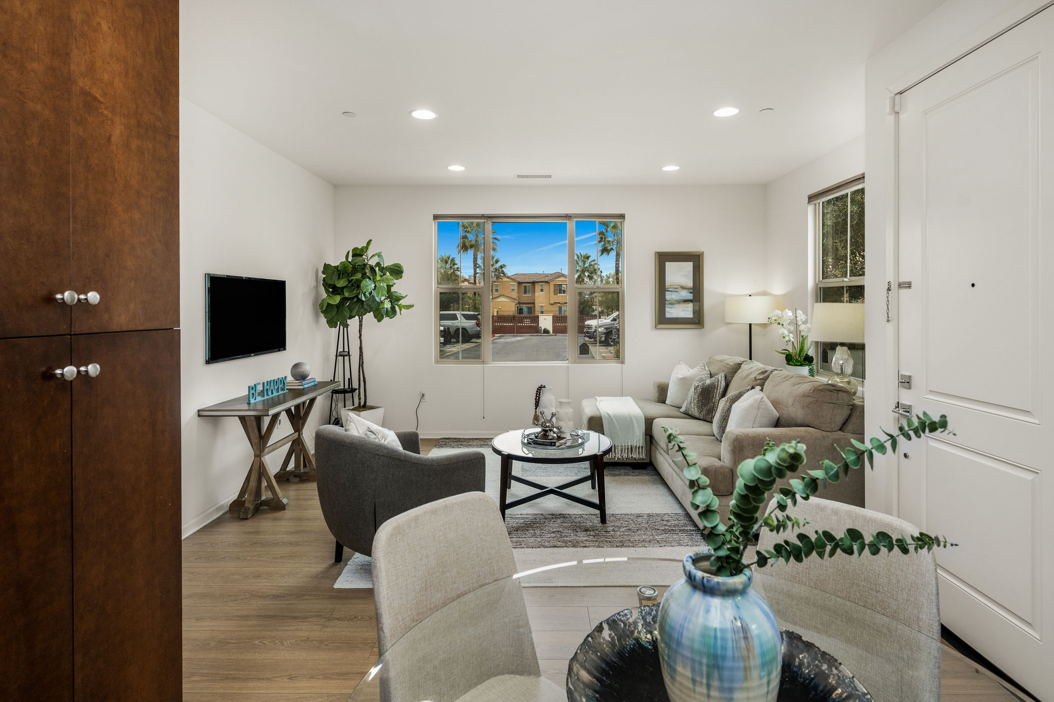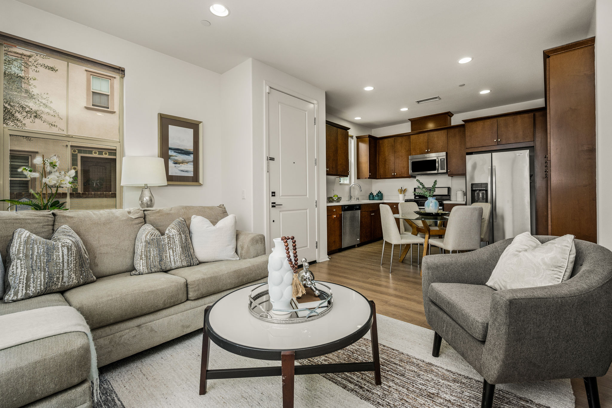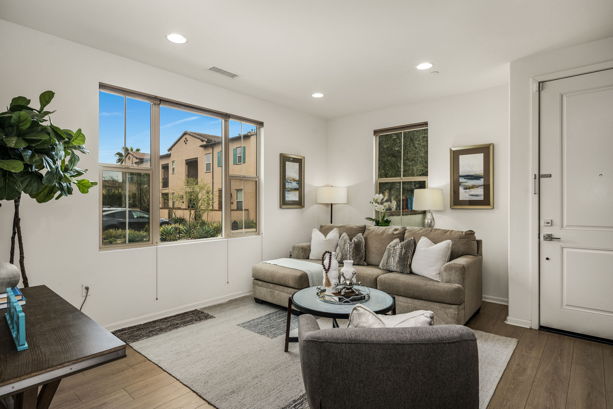 Resort-style living with low HOA and no Mello-Roos—this turnkey townhome checks all the boxes! Welcome to this beautifully upgraded 2-bedroom, 2.5-bath residence with an attached two-car garage, set on a corner location in the scenic hills of Foothill Ranch. Located within the highly desirable, gated, Spanish-inspired community of El Paseo, this home offers comfort, style, and everyday convenience. Thoughtfully designed across two levels, the residence welcomes you through a charming private patio—perfect for enjoying your morning coffee or unwinding at the end of the day. Inside, an open and airy floor plan seamlessly connects the kitchen and living space, creating an ideal setting for everyday living and entertaining. The kitchen is highlighted by quartz countertops, rich wood cabinetry, stainless steel appliances, and luxury vinyl flooring. The light-filled living room features large windows with Bali shades, providing a warm and inviting atmosphere. The main level is complete with a half bath, an indoor laundry closet, a coat closet, and direct access to the two-car garage. Upstairs, both bedrooms offer private en-suite bathrooms. The primary suite includes a custom bathroom with a single vanity, a walk-in shower, and a generous walk-in closet. The secondary bedroom features a spacious closet and an en-suite bathroom with a single vanity and a shower-tub combination. Additional upgrades include recessed lighting, baseboards, and epoxy flooring in the garage. Residents enjoy access to El Paseo’s resort-style amenities, including a pool, clubhouse, and playground. Conveniently located near shopping, dining, grocery stores, entertainment, parks, and miles of hiking and mountain biking trails. This home offers the perfect blend of comfort, style, and lifestyle convenience. Hurry-At this price, it won't last long!