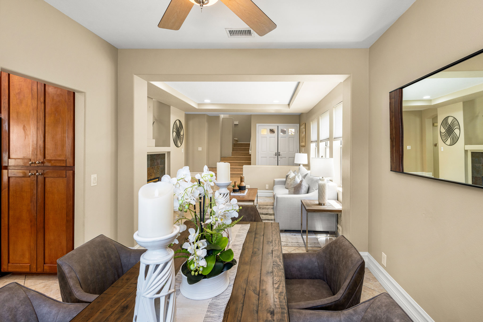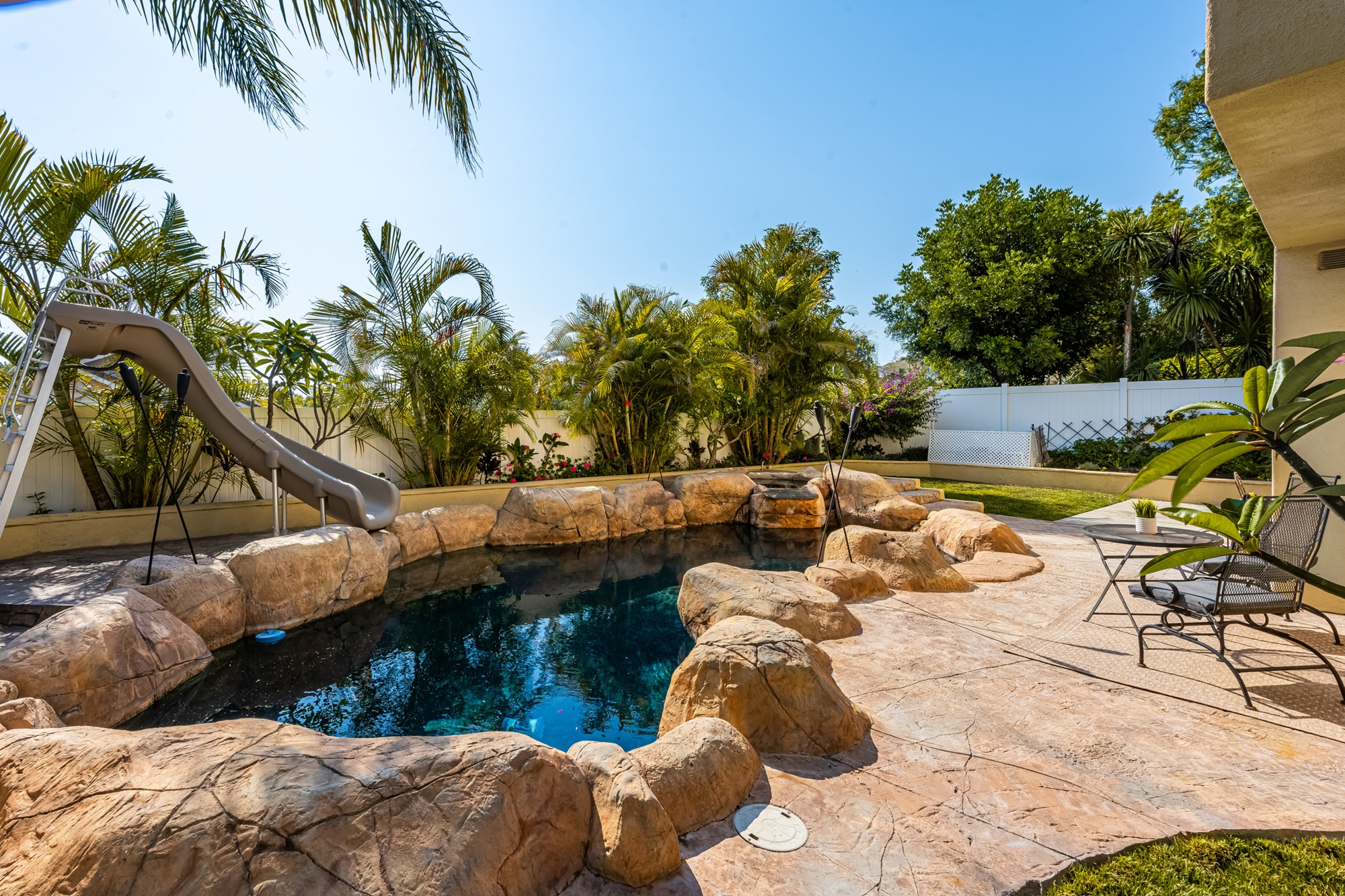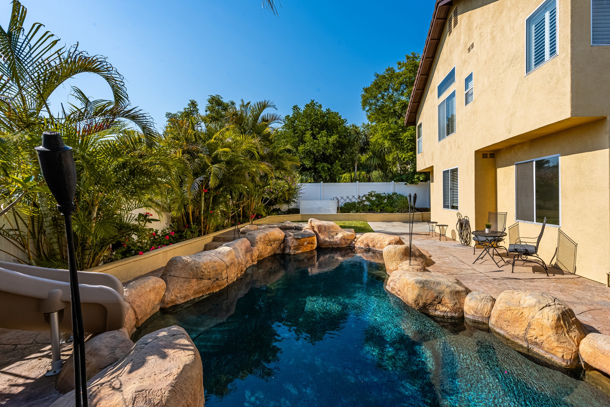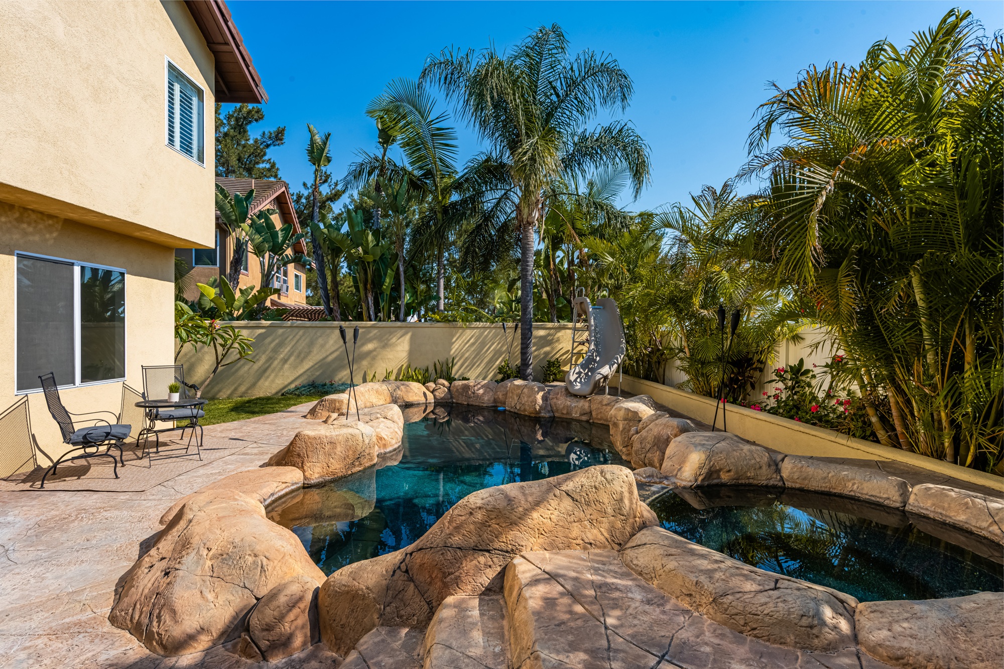 This is the one you have been waiting for! You will not find anything comparable in Irvine at this price. Live the Southern California lifestyle you have always dreamed of in the enchanting community of Foothill Ranch, surrounded by picturesque rolling hills. This stunning pool home boasts charming curb appeal and a versatile floor plan that seamlessly combines comfort and style. Designed to meet all your needs, this home features five bedrooms, three bathrooms, including one downstairs bedroom and one full bathroom, a spacious loft, and a three-car garage. Guests are welcomed into the formal living and dining rooms through a double-door entry. A dual-sided fireplace accents the formal living and dining areas. The gourmet kitchen features a center island, rich wood cabinetry, granite countertops, stainless steel appliances, and a breakfast nook overlooking the tropical backyard paradise. The adjoining family room, complete with a fireplace, is perfect for family gatherings. The downstairs bedroom is set up as an office, complete with a built-in desk and workstation, conveniently located near the downstairs laundry room. Custom upgrades include new paint, seller-owned solar, new air conditioner and furnace, carpet, and upgraded light fixtures. As you travel upstairs, you'll notice the expansive loft, which has endless possibilities for a media room, workout area, or kids' play area. The primary suite won't disappoint, featuring high ceilings, a walk-in closet, dual vanities, a soaking tub, and a separate shower enclosure. Three additional bedrooms share a secondary bathroom. You'll spend hours of enjoyment in your backyard tropical paradise, complete with a Pebble Tec pool and spa, and a patio area perfect for outdoor dining and entertaining. The yard also features a large side area perfect for a garden or play area. This lovely home has it all and is priced to sell fast!!