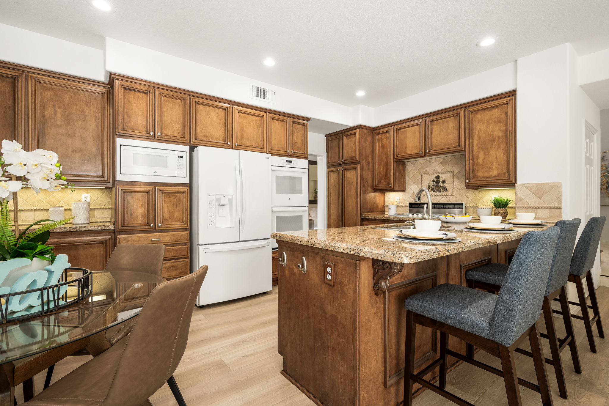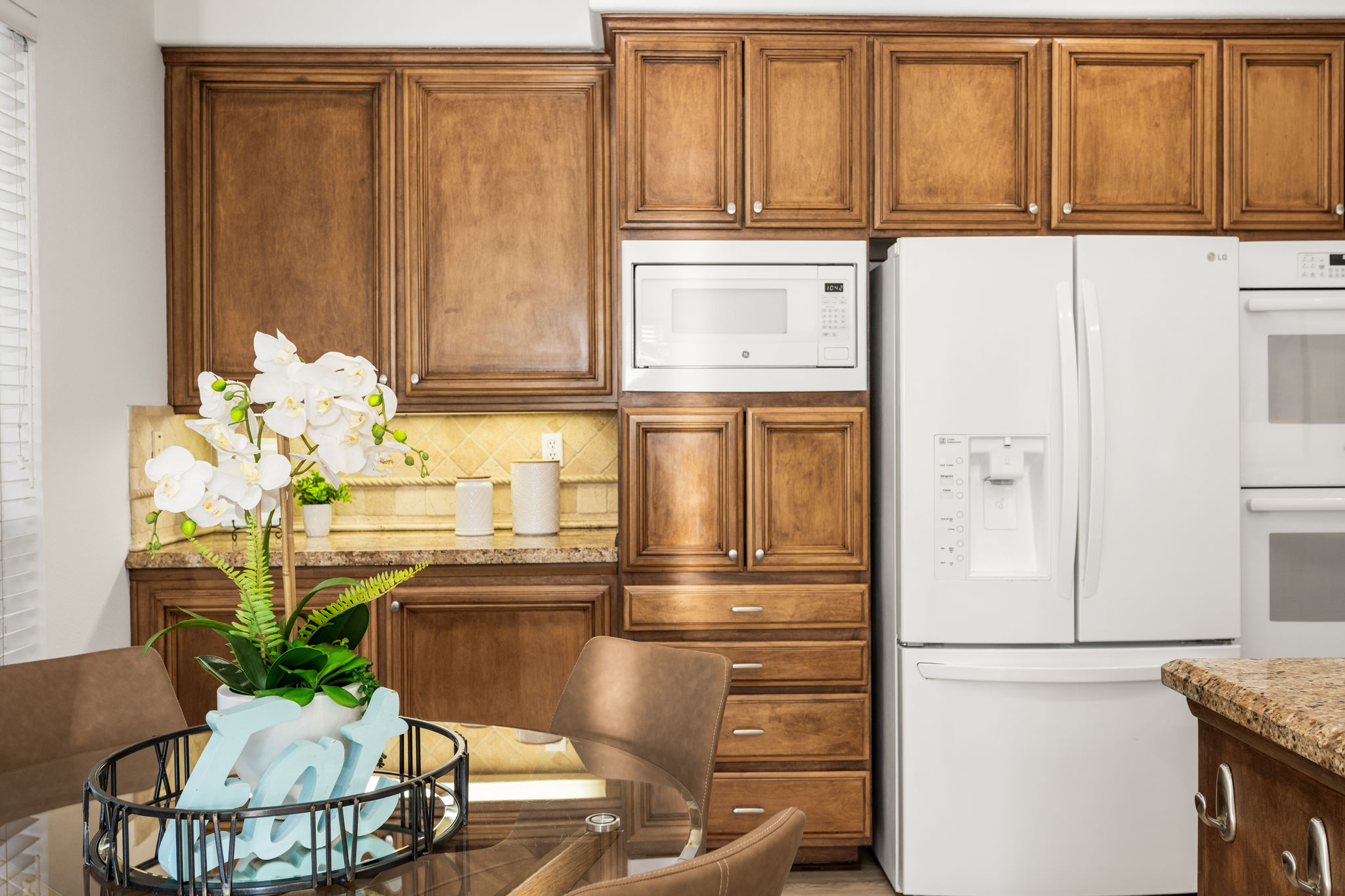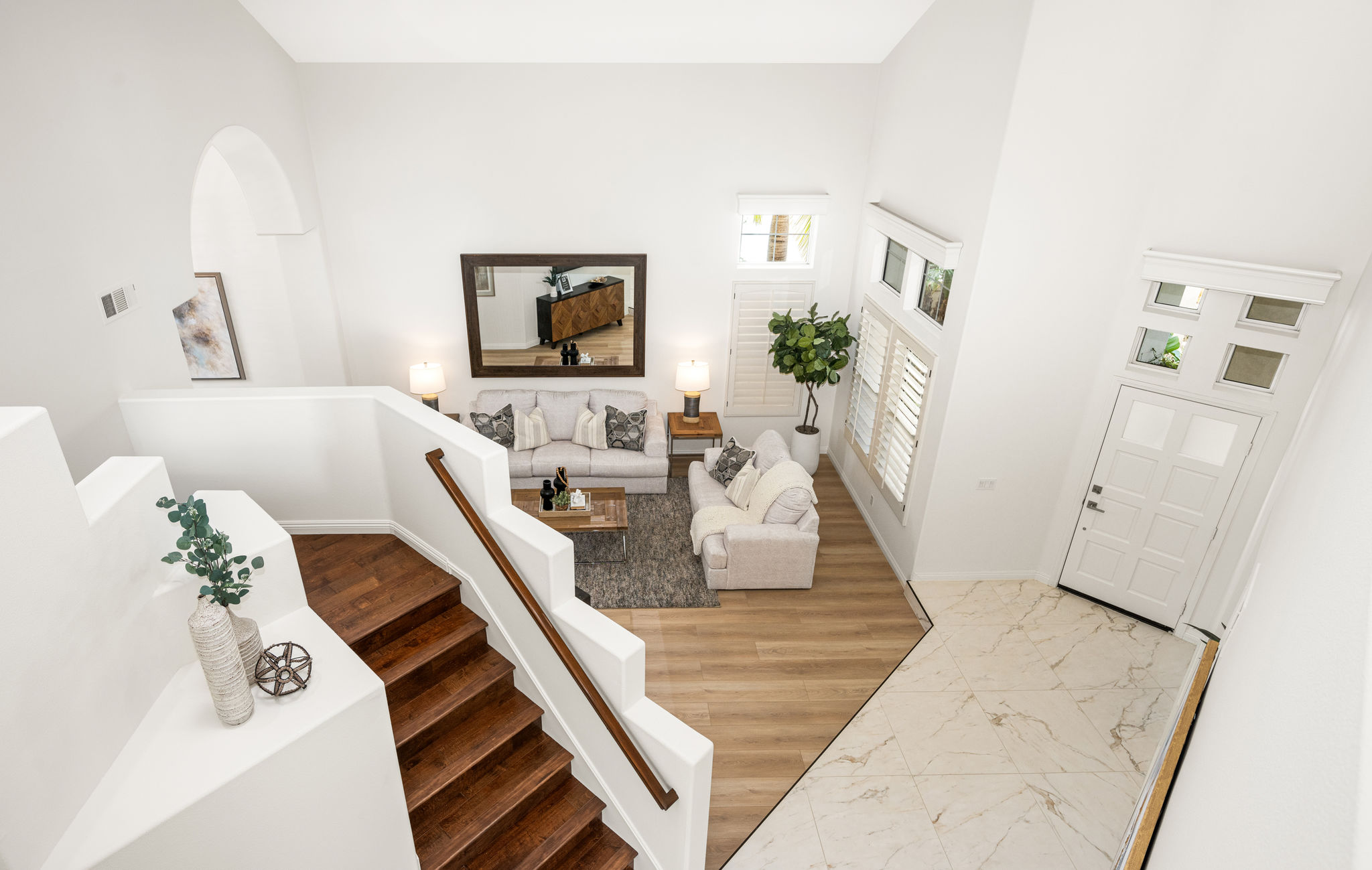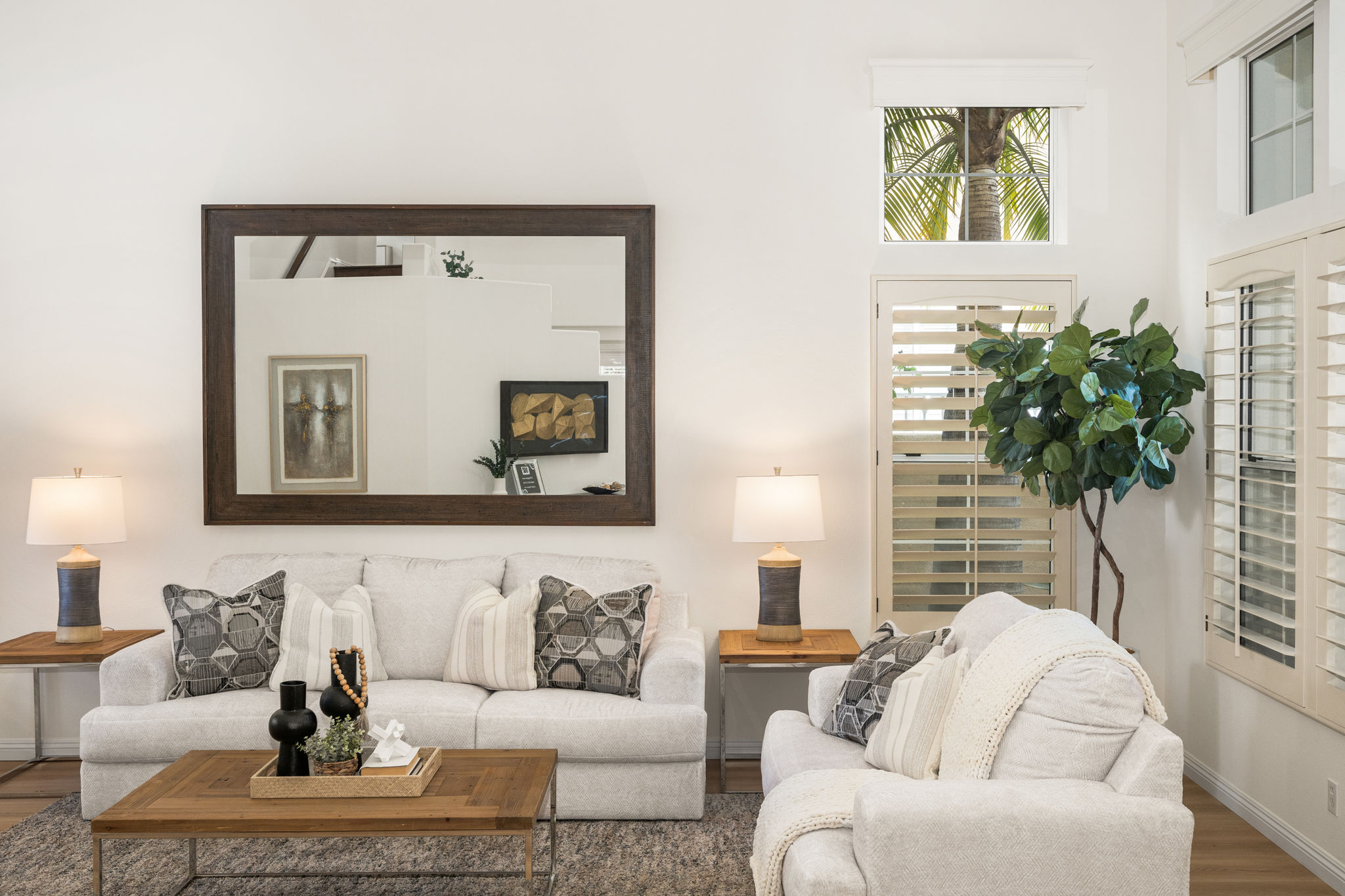 Escape the ordinary and discover exceptional luxury in this model home within the highly sought-after Roxford Crest tract. This stunning Mediterranean showplace is truly amazing.  Exquisite interior architecture and designer upgrades welcome you, while the family-oriented floor plan offers comfort and casual living for everyone.  The prime corner location sits on an oversized 7,975 sqft lot and features four spacious bedrooms, three full bathrooms, and a loft, with a total of 2,902 sqft.  A dramatic grand entrance greets you with soaring 30 ft ceilings, formal living and dining rooms, walls of windows filling the home with natural light, and a sweeping staircase highlighted by a skylight.  Custom upgrades throughout this lovely home include new interior paint, brand-new luxury vinyl flooring, plantation shutters, upgraded baseboards, mirrored wardrobes, ceiling fans and new light fixtures, recessed lighting, wood blinds, and a new saltwater pool system and equipment.  A convenient downstairs bedroom, perfect as an office, is adjacent to a remodeled full bathroom.  The expansive kitchen features granite countertops, a custom stone backsplash, rich wood cabinetry, a pantry, and ample counter space.  The open family room with a warm fireplace and custom granite mantel is perfect for family gatherings.  A downstairs laundry room includes a sink and cabinets for added convenience.  The spacious primary suite boasts high ceilings, a view of the backyard, a large walk-in closet, dual vanities, a soaking tub, and a separate shower enclosure.  The versatile loft can serve as a media room, office, or teen space. Two additional bedrooms are generously sized, with one offering a private balcony.  The backyard is a tranquil sanctuary featuring a sparkling saltwater pool, patio, and mature trees, creating a park-like setting perfect for relaxation and entertaining.  This home has it all—don’t miss out! Hurry!