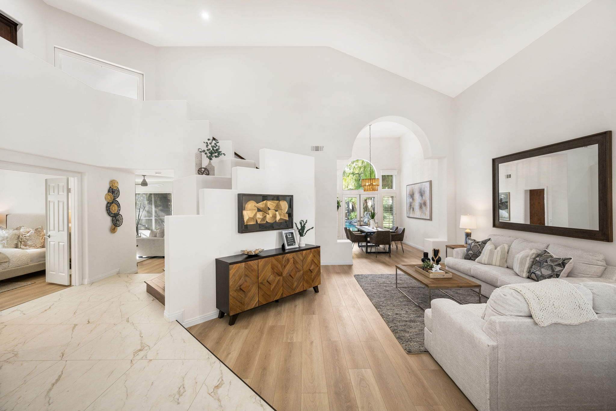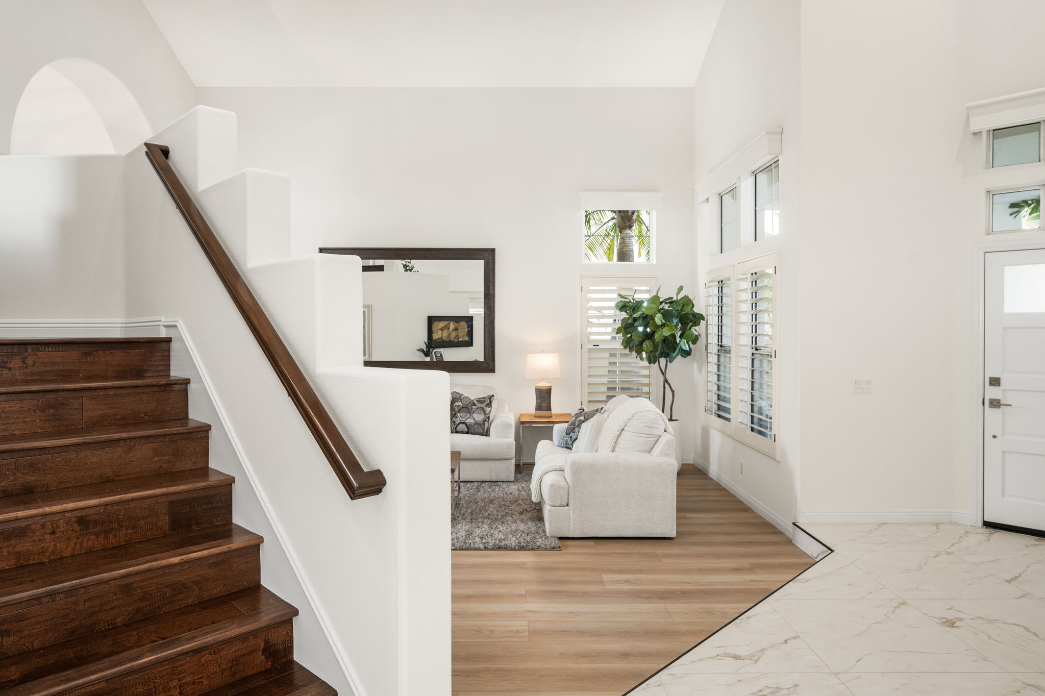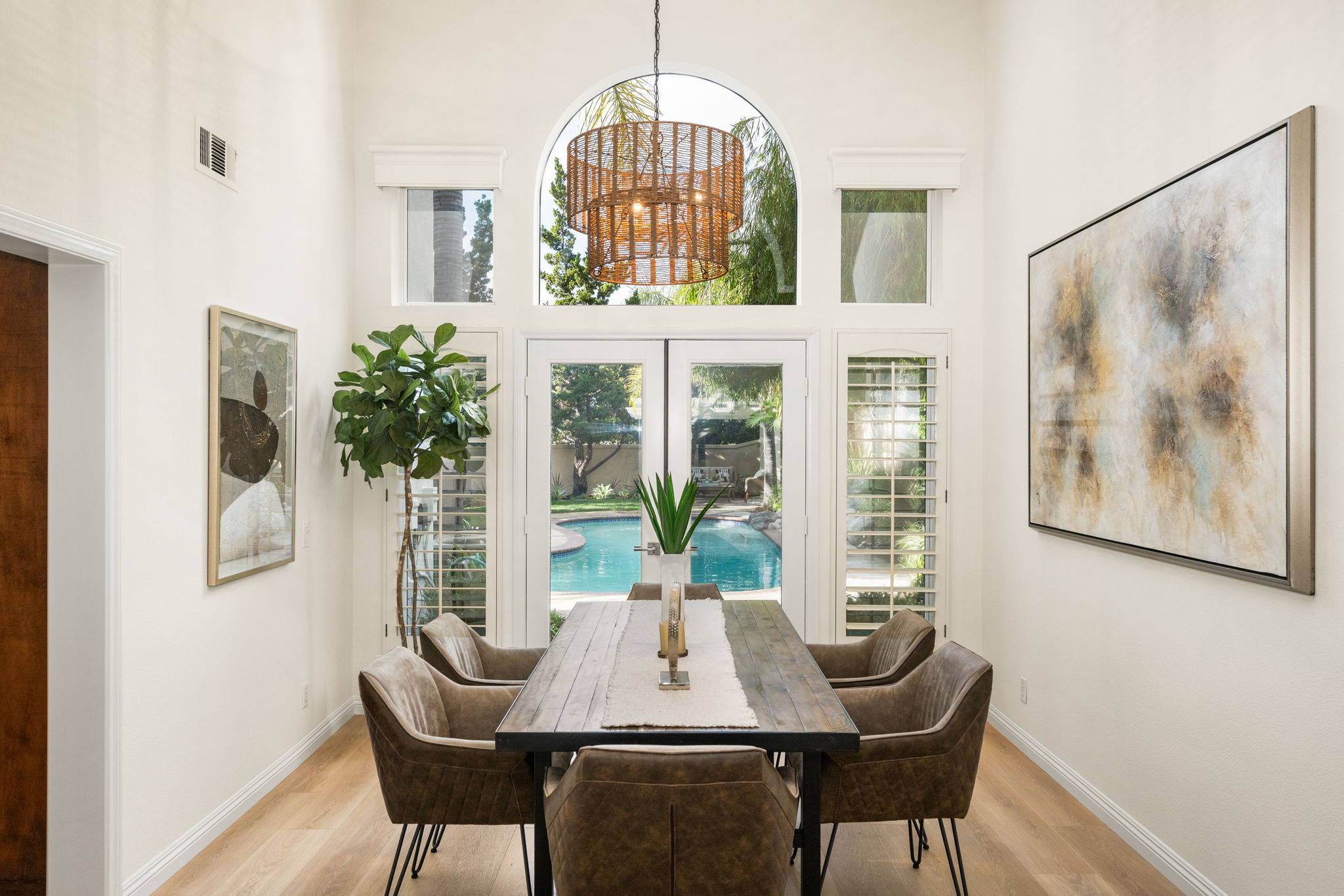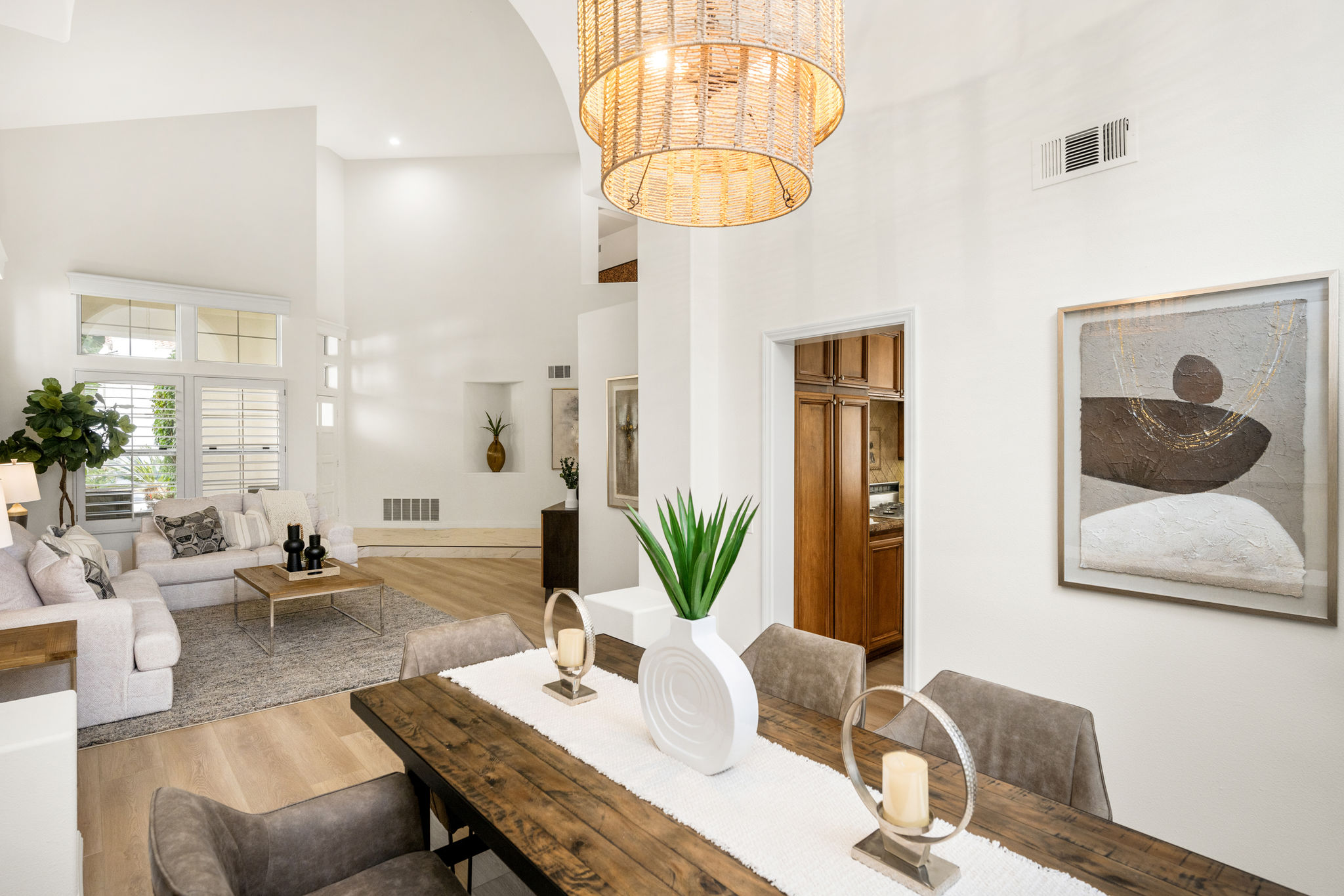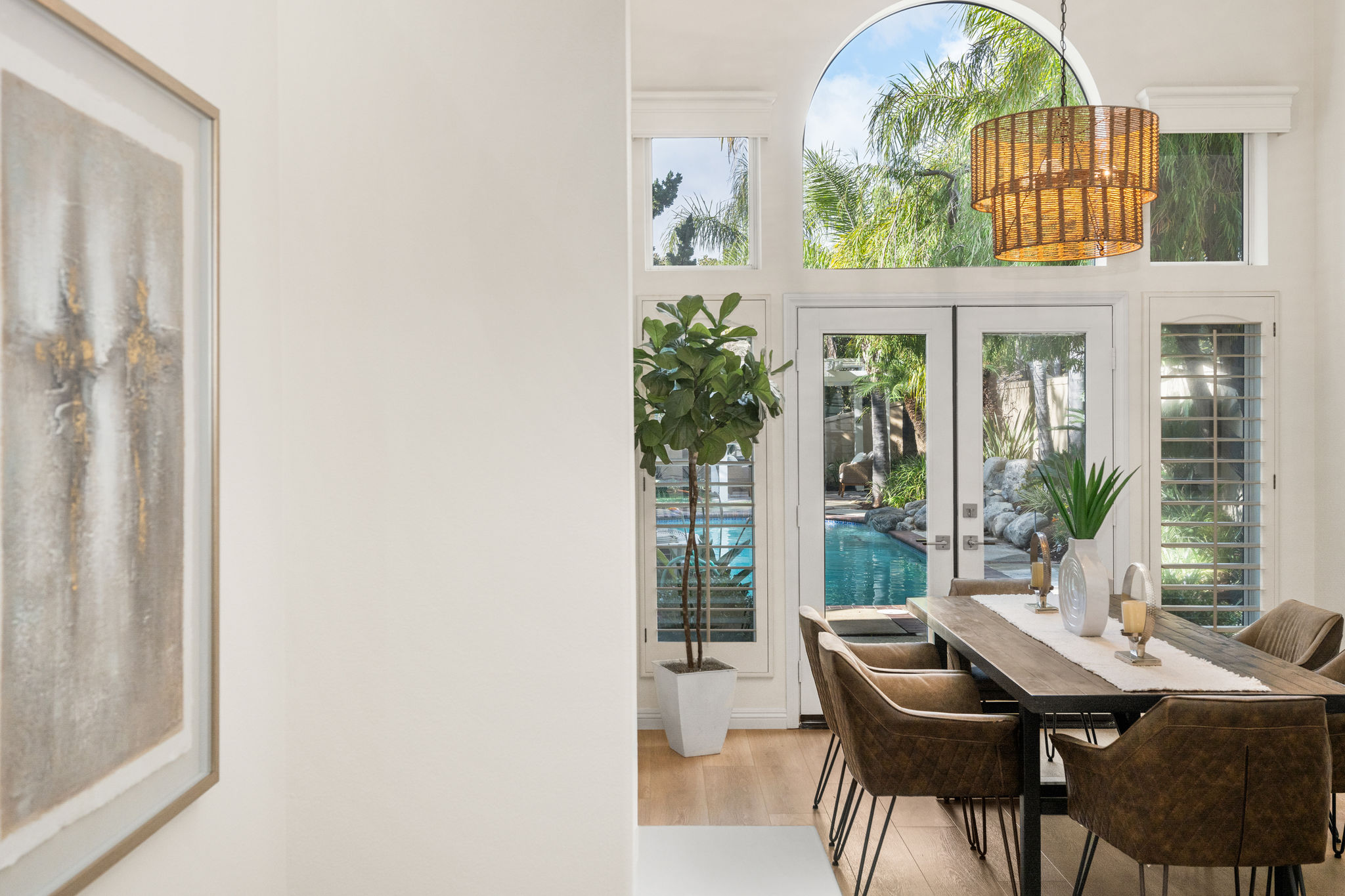 Escape the ordinary and discover exceptional luxury in this model home within the highly sought-after Roxford Crest tract. This stunning Mediterranean showplace is truly amazing.  Exquisite interior architecture and designer upgrades welcome you, while the family-oriented floor plan offers comfort and casual living for everyone.  The prime corner location sits on an oversized 7,975 sqft lot and features four spacious bedrooms, three full bathrooms, and a loft, with a total of 2,902 sqft.  A dramatic grand entrance greets you with soaring 30 ft ceilings, formal living and dining rooms, walls of windows filling the home with natural light, and a sweeping staircase highlighted by a skylight.  Custom upgrades throughout this lovely home include new interior paint, brand-new luxury vinyl flooring, plantation shutters, upgraded baseboards, mirrored wardrobes, ceiling fans and new light fixtures, recessed lighting, wood blinds, and a new saltwater pool system and equipment.  A convenient downstairs bedroom, perfect as an office, is adjacent to a remodeled full bathroom.  The expansive kitchen features granite countertops, a custom stone backsplash, rich wood cabinetry, a pantry, and ample counter space.  The open family room with a warm fireplace and custom granite mantel is perfect for family gatherings.  A downstairs laundry room includes a sink and cabinets for added convenience.  The spacious primary suite boasts high ceilings, a view of the backyard, a large walk-in closet, dual vanities, a soaking tub, and a separate shower enclosure.  The versatile loft can serve as a media room, office, or teen space. Two additional bedrooms are generously sized, with one offering a private balcony.  The backyard is a tranquil sanctuary featuring a sparkling saltwater pool, patio, and mature trees, creating a park-like setting perfect for relaxation and entertaining.  This home has it all—don’t miss out! Hurry!