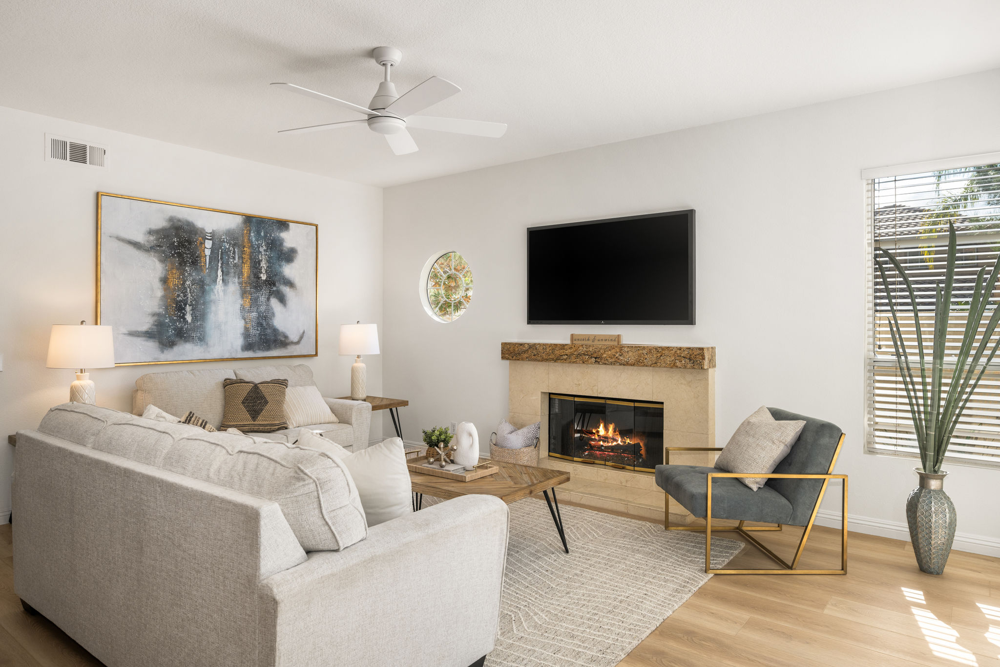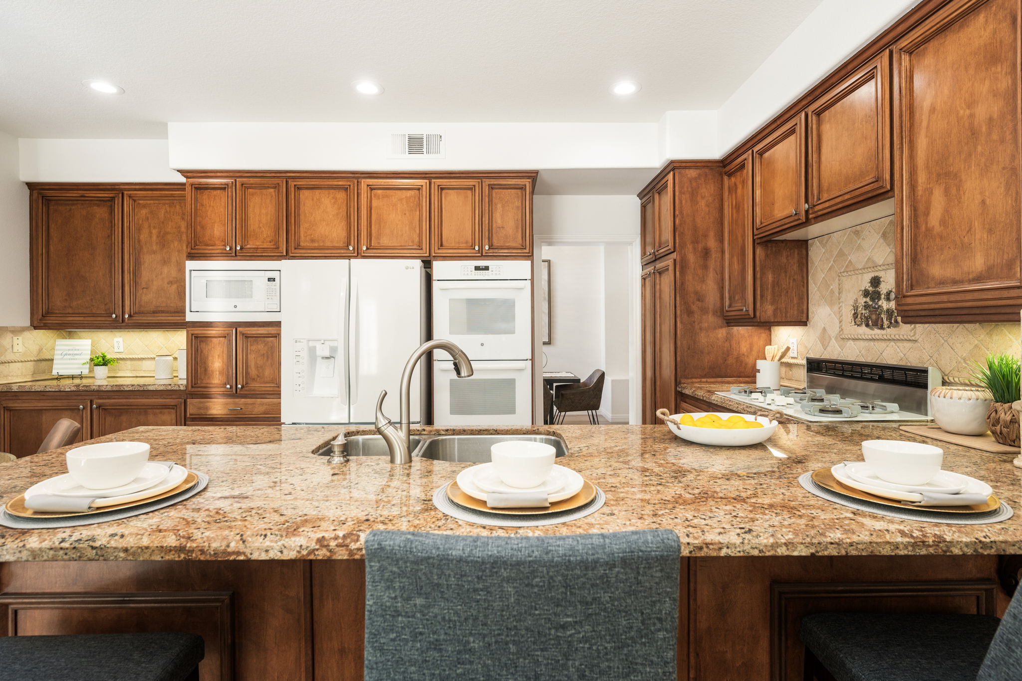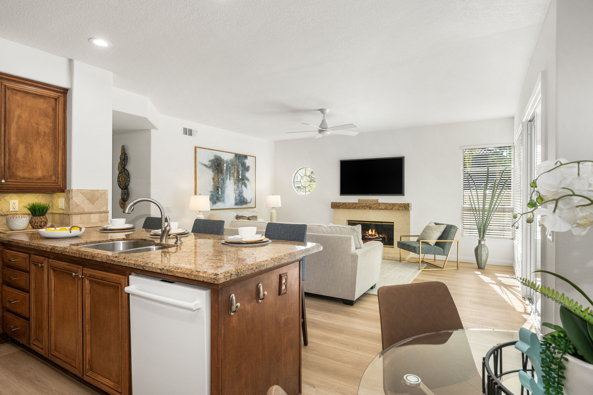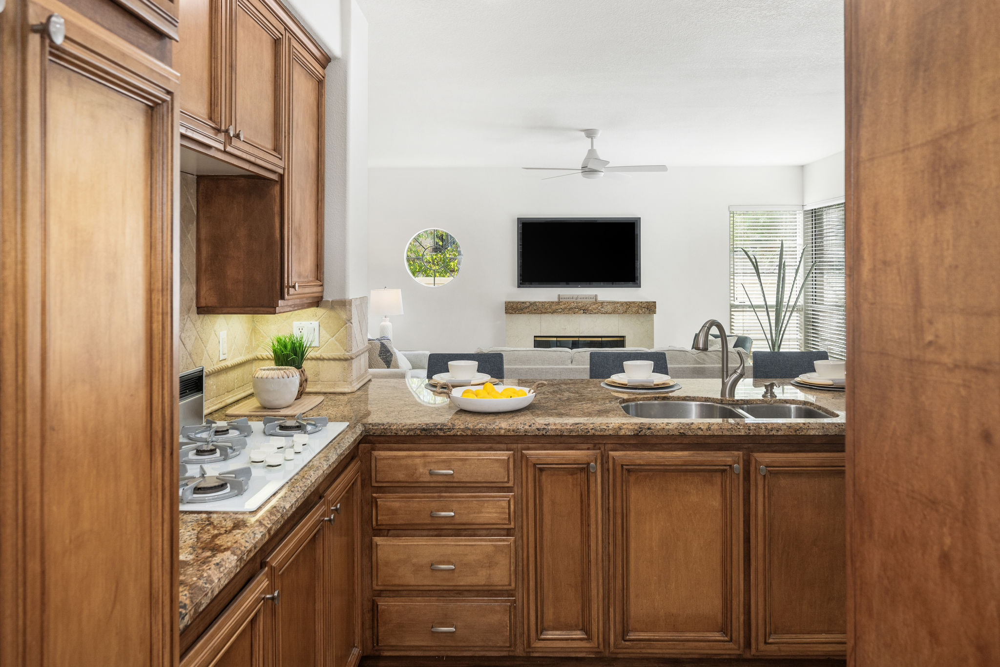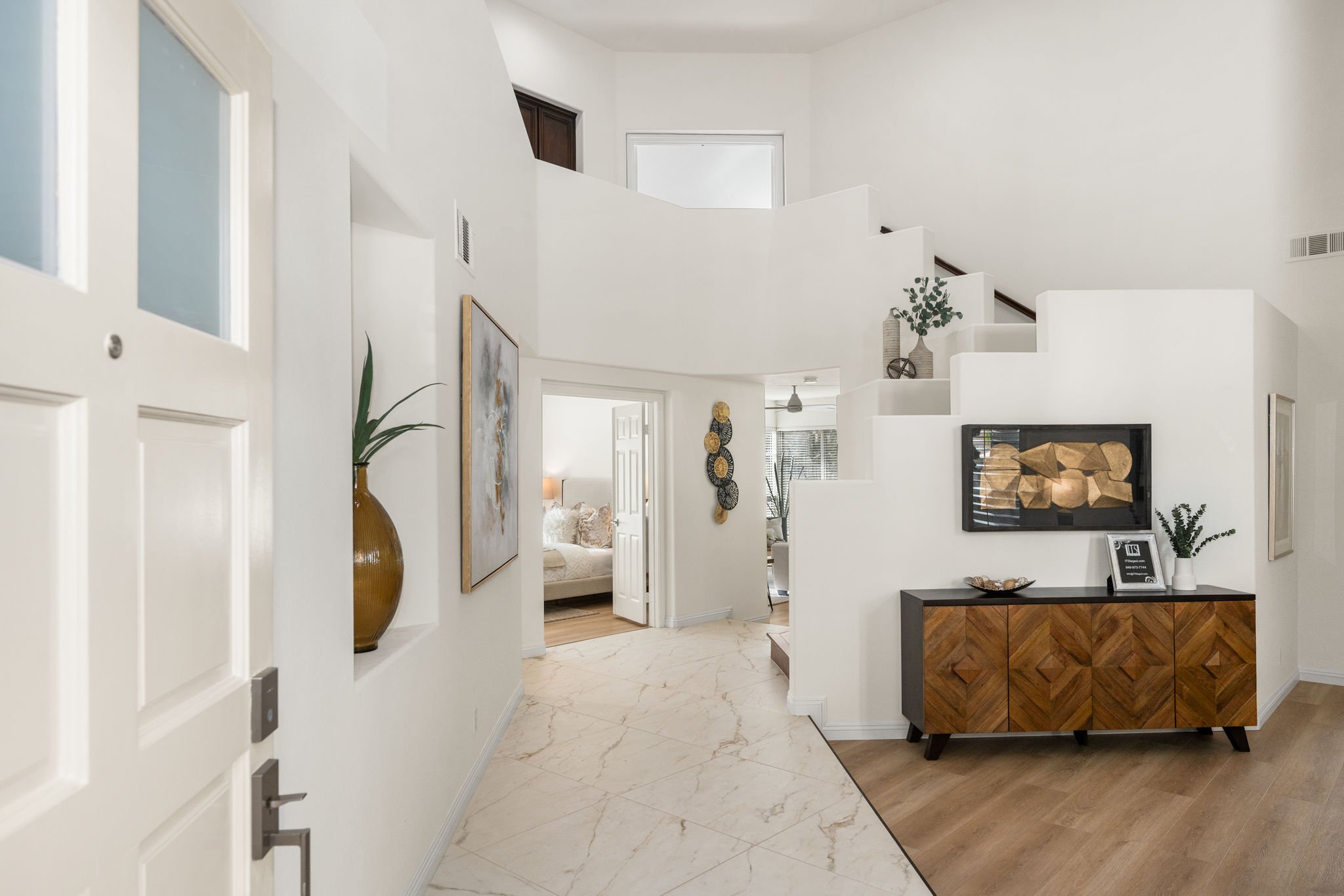Escape the ordinary and discover exceptional luxury in this model home within the highly sought-after Roxford Crest tract. This stunning Mediterranean showplace is truly amazing.  Exquisite interior architecture and designer upgrades welcome you, while the family-oriented floor plan offers comfort and casual living for everyone.  The prime corner location sits on an oversized 7,975 sqft lot and features four spacious bedrooms, three full bathrooms, and a loft, with a total of 2,902 sqft.  A dramatic grand entrance greets you with soaring 30 ft ceilings, formal living and dining rooms, walls of windows filling the home with natural light, and a sweeping staircase highlighted by a skylight.  Custom upgrades throughout this lovely home include new interior paint, brand-new luxury vinyl flooring, plantation shutters, upgraded baseboards, mirrored wardrobes, ceiling fans and new light fixtures, recessed lighting, wood blinds, and a new saltwater pool system and equipment.  A convenient downstairs bedroom, perfect as an office, is adjacent to a remodeled full bathroom.  The expansive kitchen features granite countertops, a custom stone backsplash, rich wood cabinetry, a pantry, and ample counter space.  The open family room with a warm fireplace and custom granite mantel is perfect for family gatherings.  A downstairs laundry room includes a sink and cabinets for added convenience.  The spacious primary suite boasts high ceilings, a view of the backyard, a large walk-in closet, dual vanities, a soaking tub, and a separate shower enclosure.  The versatile loft can serve as a media room, office, or teen space. Two additional bedrooms are generously sized, with one offering a private balcony.  The backyard is a tranquil sanctuary featuring a sparkling saltwater pool, patio, and mature trees, creating a park-like setting perfect for relaxation and entertaining.  This home has it all—don’t miss out! Hurry!