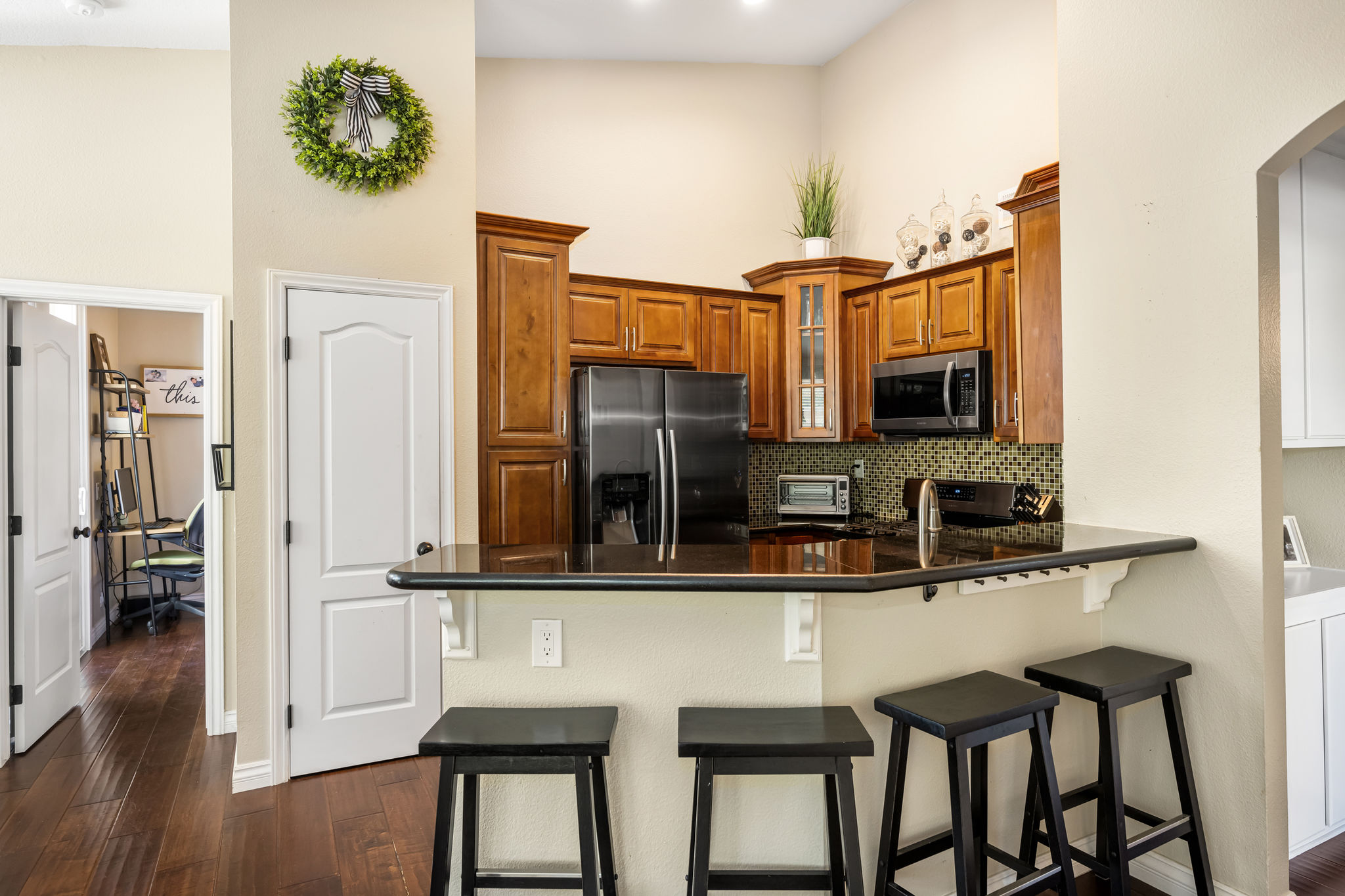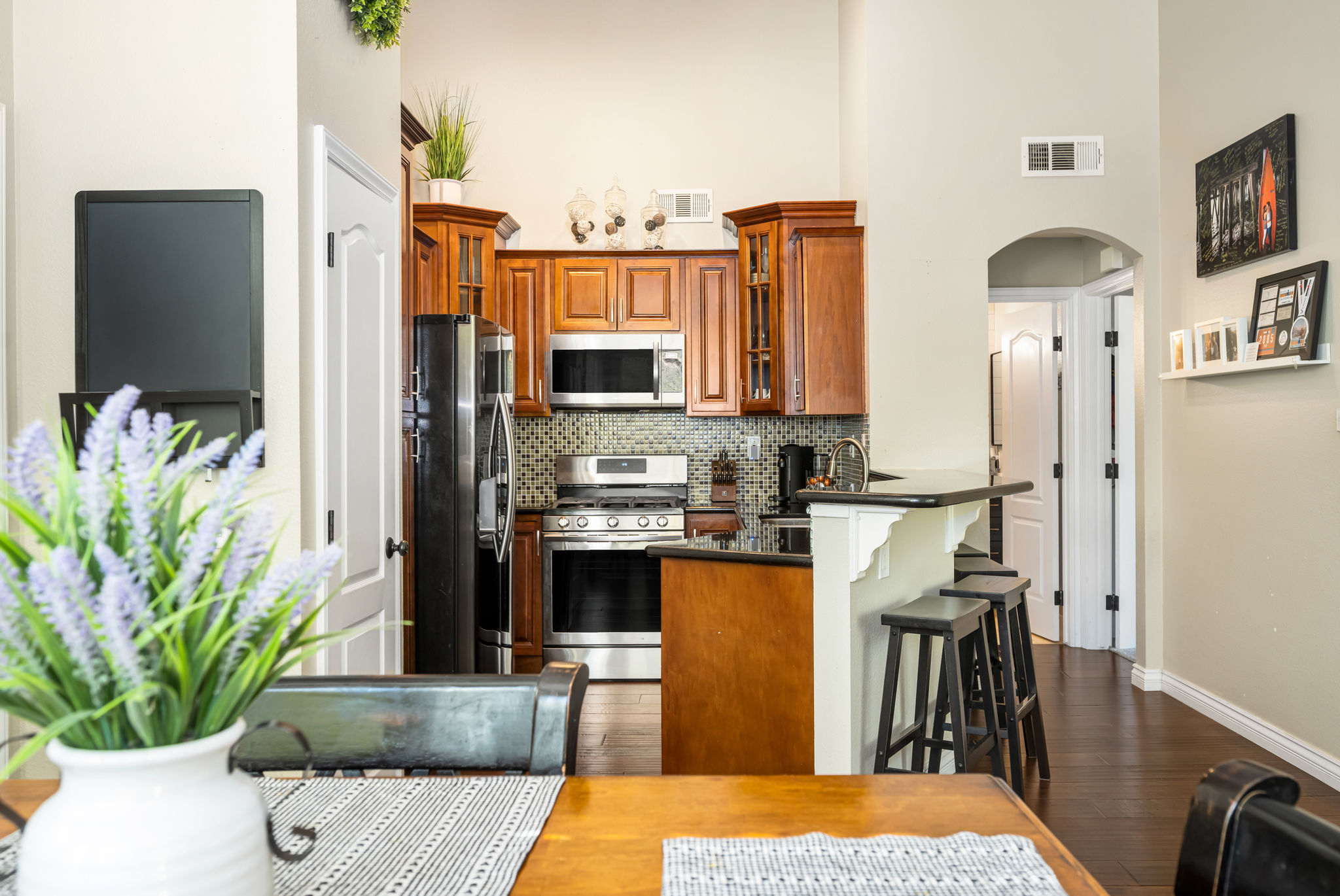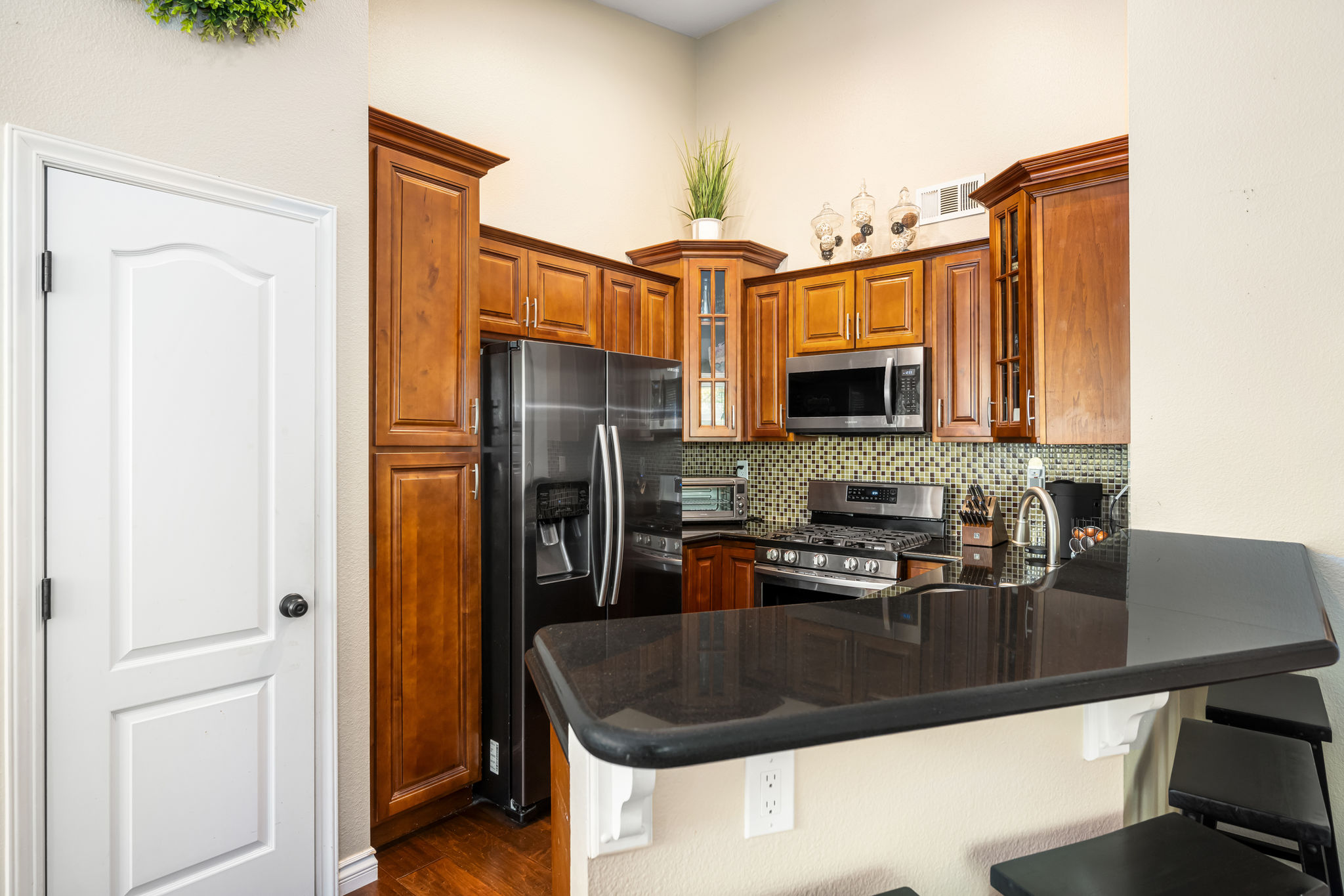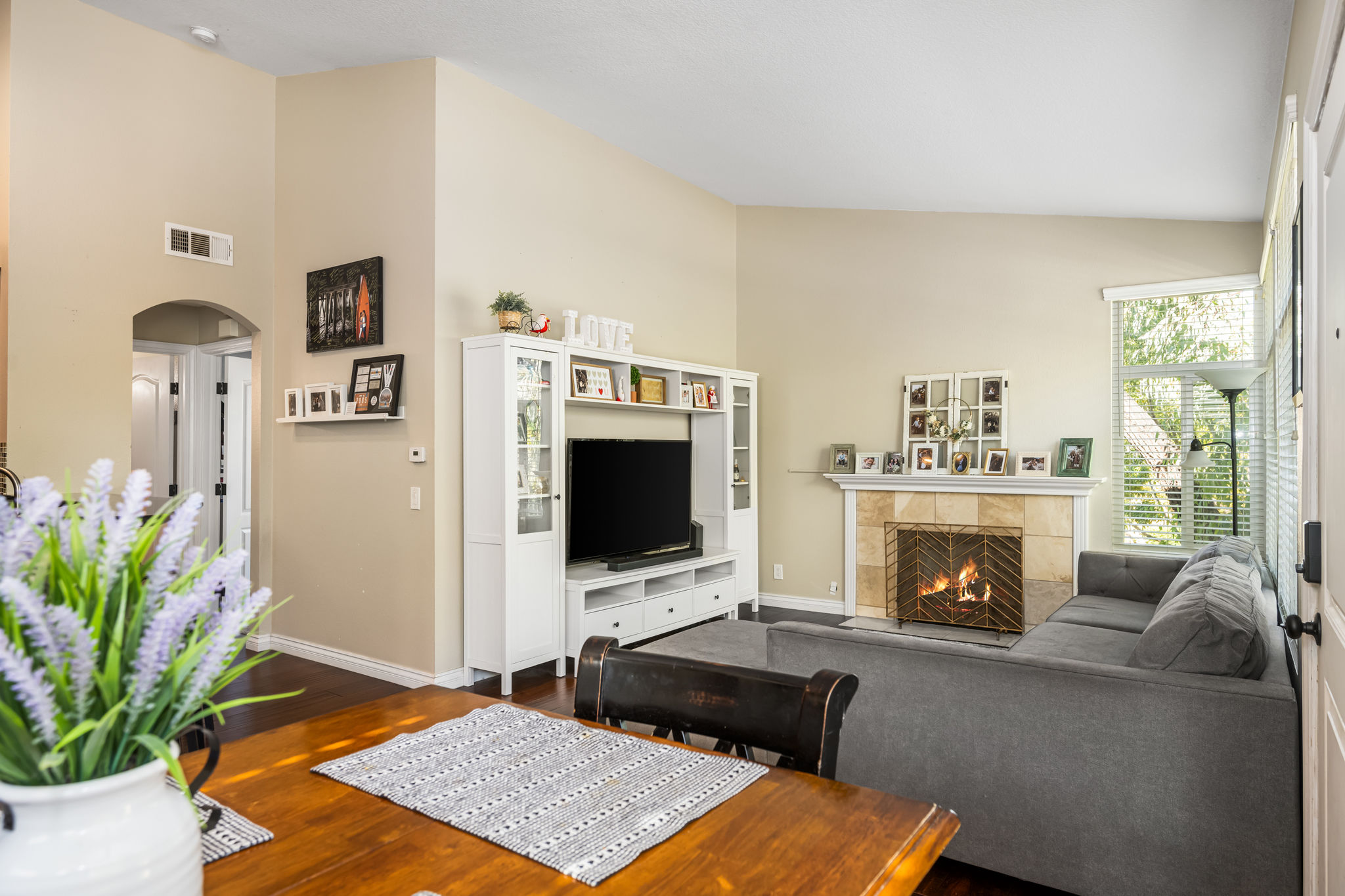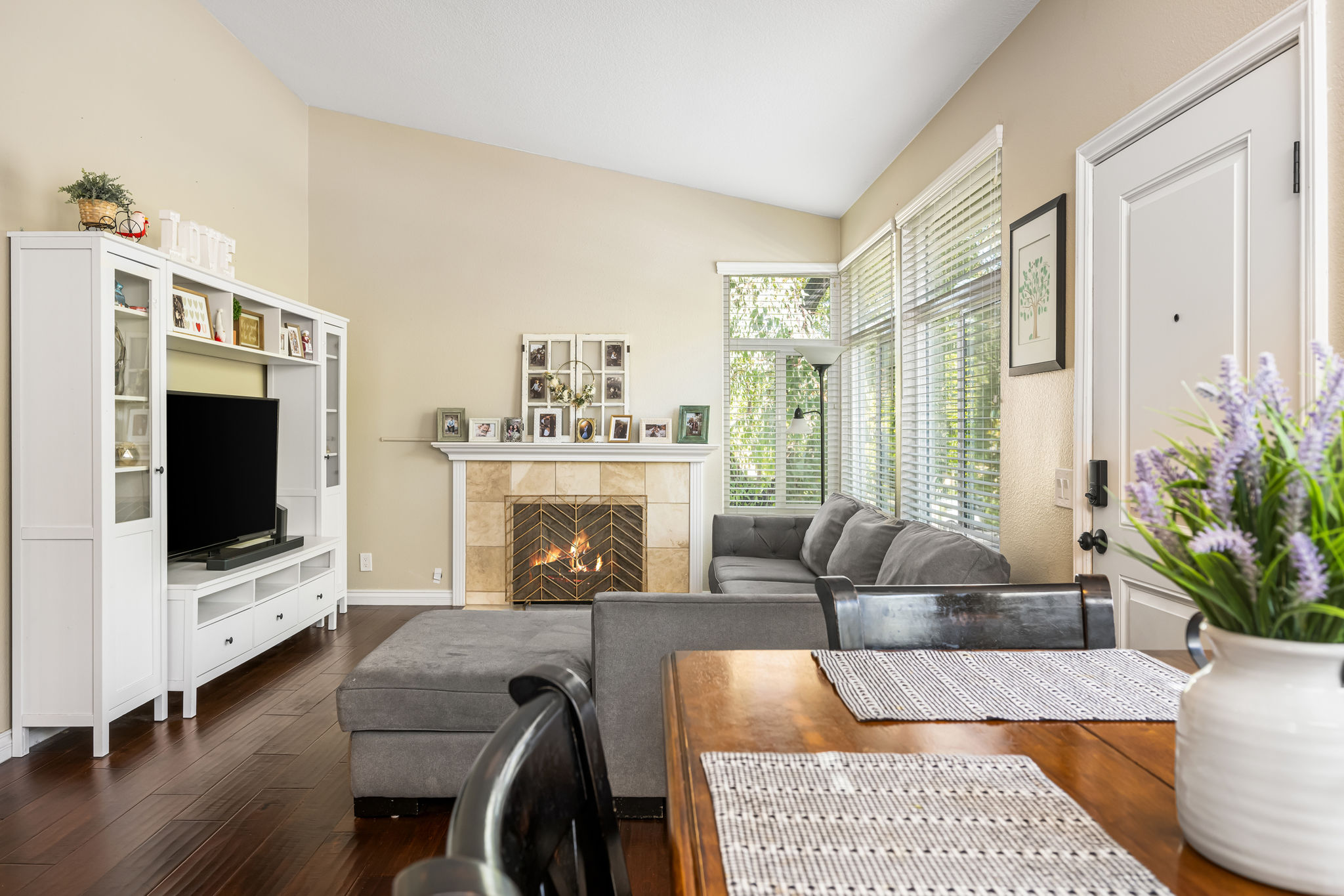 You'd be hard-pressed to find a better location within the gated RESORT-STYLE "Tuscany Condo Complex" in the beautiful hillside community of Foothill Ranch!! If you're looking for a property that is fully upgraded, light & airy, private, and has a view among the trees, look no further!  What an incredible opportunity for the first-time buyer, investor, or those looking to downsize. This highly sought-after UPSTAIRS / SINGLE level condo offers 2 bedrooms, 2 full bathrooms, and a patio deck with 1060 square feet of comfortable living space for everyone. The property also comes with a one car garage, and permit parking. The light and bright open floor plan, with high ceilings includes designer décor and upgrades throughout. This home features high-quality engineered wood flooring, baseboards, new vinyl windows, recessed lighting, new window blinds, tiled fireplace, and custom wood mantel. You'll love the open and remodeled kitchen with high-end wood cabinetry, granite countertops, and new stainless steel appliances including an oven, microwave, dishwasher, and refrigerator. The primary suite has mirrored wardrobes and is oversized with ample room for a king-size bed. The primary bathroom boasts an upgraded dual vanity, light fixtures, and a custom walk-in tiled shower enclosure. The secondary bathroom also contains a newly upgraded vanity and upgraded shower enclosure as well. The open patio area with a laundry closet is perfect for a BBQ, reading a book, listening to the songbirds, and watching the rabbits:)  Living in Tuscany allows you to reap the benefits of both the Tuscany and Foothill Ranch community HOA amenities. Tuscany amenities include a clubhouse, recreation room, tennis court, putting green, 2 pools, 2 spas, and a gym. Foothill Ranch HOA amenities include a recently upgraded Olympic-sized pool, spa, BBQ, and clubhouse. Being a Foothill Ranch resident you can also enjoy four different parks featuring basketball, tennis, hockey, sand volleyball courts, jungle gyms, baseball, soccer fields, world-class mountain biking, and hiking trails. This home is also close to shopping, a library, restaurants, a movie theater, and the 241 toll road. Hurry on this one it won't last long at this price!!