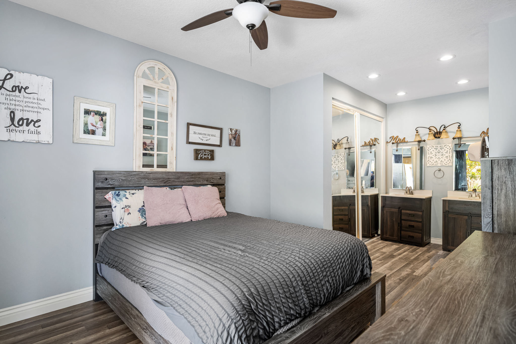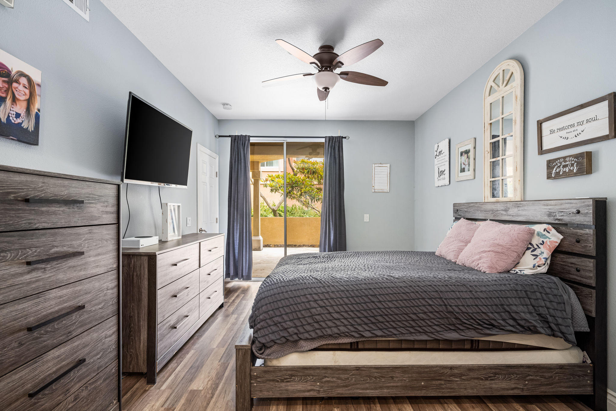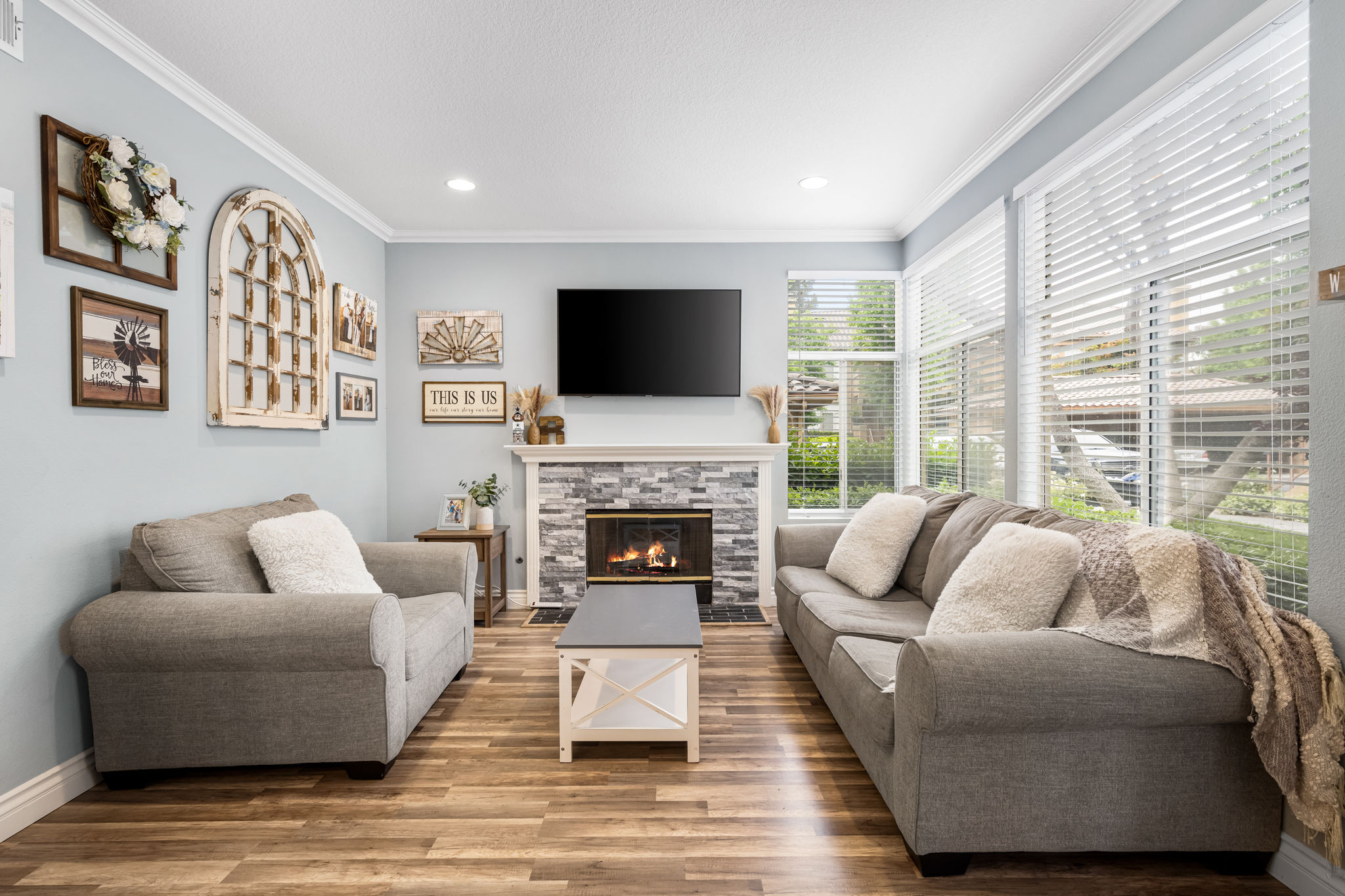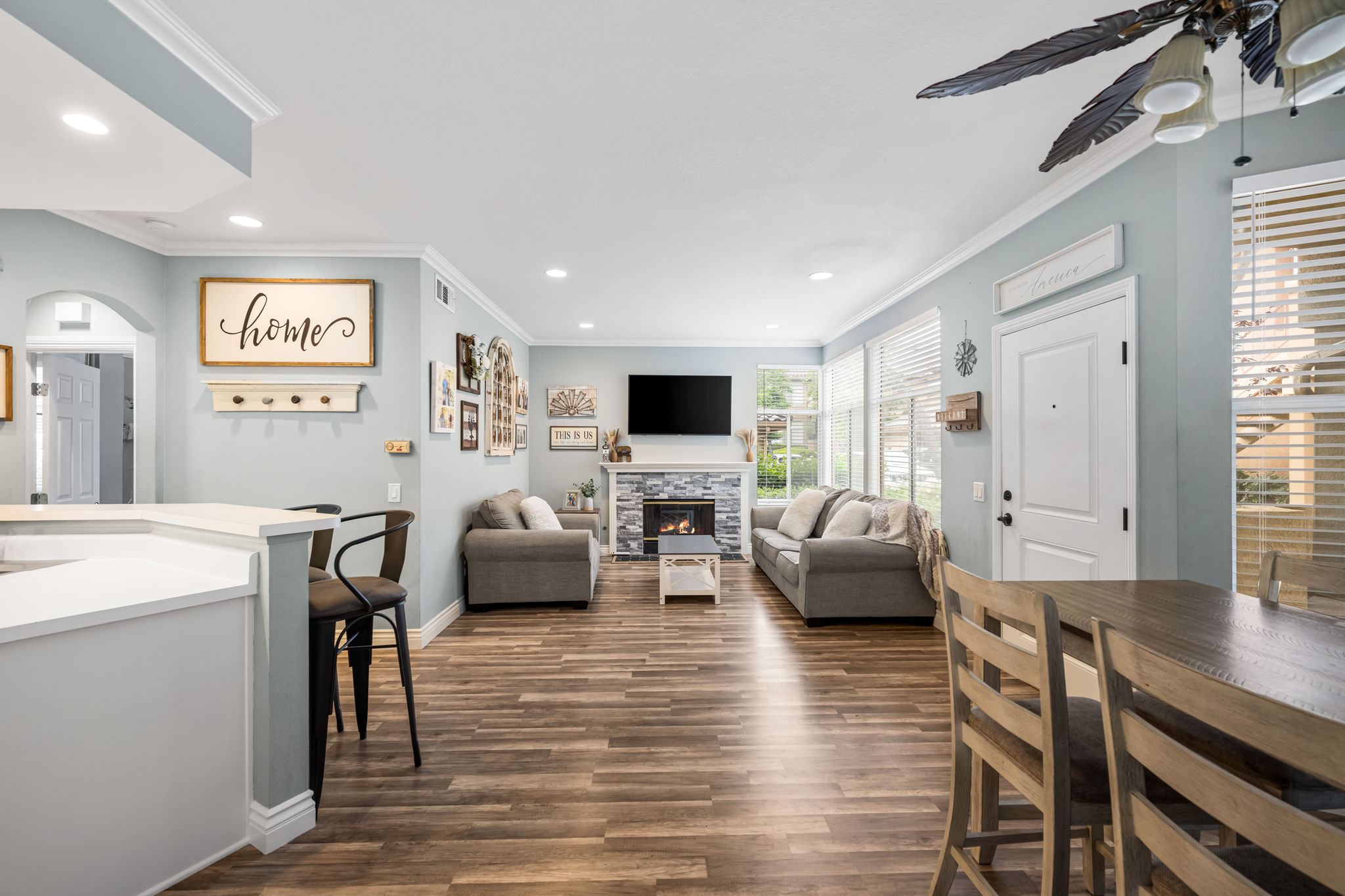 You'd be hard-pressed to find a better location within the gated RESORT-STYLE "Tuscany Condo Complex" in the beautiful hillside of Foothill Ranch!! Incredible opportunity for the first-time buyer, investor, or those looking to downsize to a SINGLE-level property. This highly sought-after DOWNSTAIRS / SINGLE level condo offers 2 bedrooms, 2 full bathrooms, and a large patio with approx 1060 square feet of comfortable living space for everyone. The light and bright open floor plan includes designer decor throughout, high-quality laminate plank floors, baseboards, crown molding, a farmhouse kitchen sink, an upgraded stacked stone fireplace, mirrored wardrobes, recessed lighting, and new window blinds. The primary suite is oversized with ample room for a king-size bed. The primary bathroom boasts an upgraded dual vanity, light fixtures, and a custom tiled shower enclosure. The secondary bathroom also includes an upgraded vanity and upgraded tile shower enclosure as well. The open patio area with a laundry closet is perfect for a BBQ, reading a book, listening to the songbirds, and watching the rabbits:) Living in Tuscany allows you to reap the benefits of both the Tuscany and Foothill Ranch community HOA amenities. Tuscany amenities include a clubhouse, recreation room, tennis courts, putting green, 2 pools, 2 spas, and a gym. Foothill Ranch HOA amenities include a recently upgraded Olympic size pool, spa, BBQ, and recreation room. Being a Foothill Ranch resident you can also enjoy four different parks featuring basketball, tennis, hockey, sand volleyball courts, jungle gyms, baseball, soccer fields, world-class mountain biking, and hiking trails. Also close to shopping, a library, restaurants, a movie theater, and the 241 toll road. Hurry on this one it won't last long at this price!!