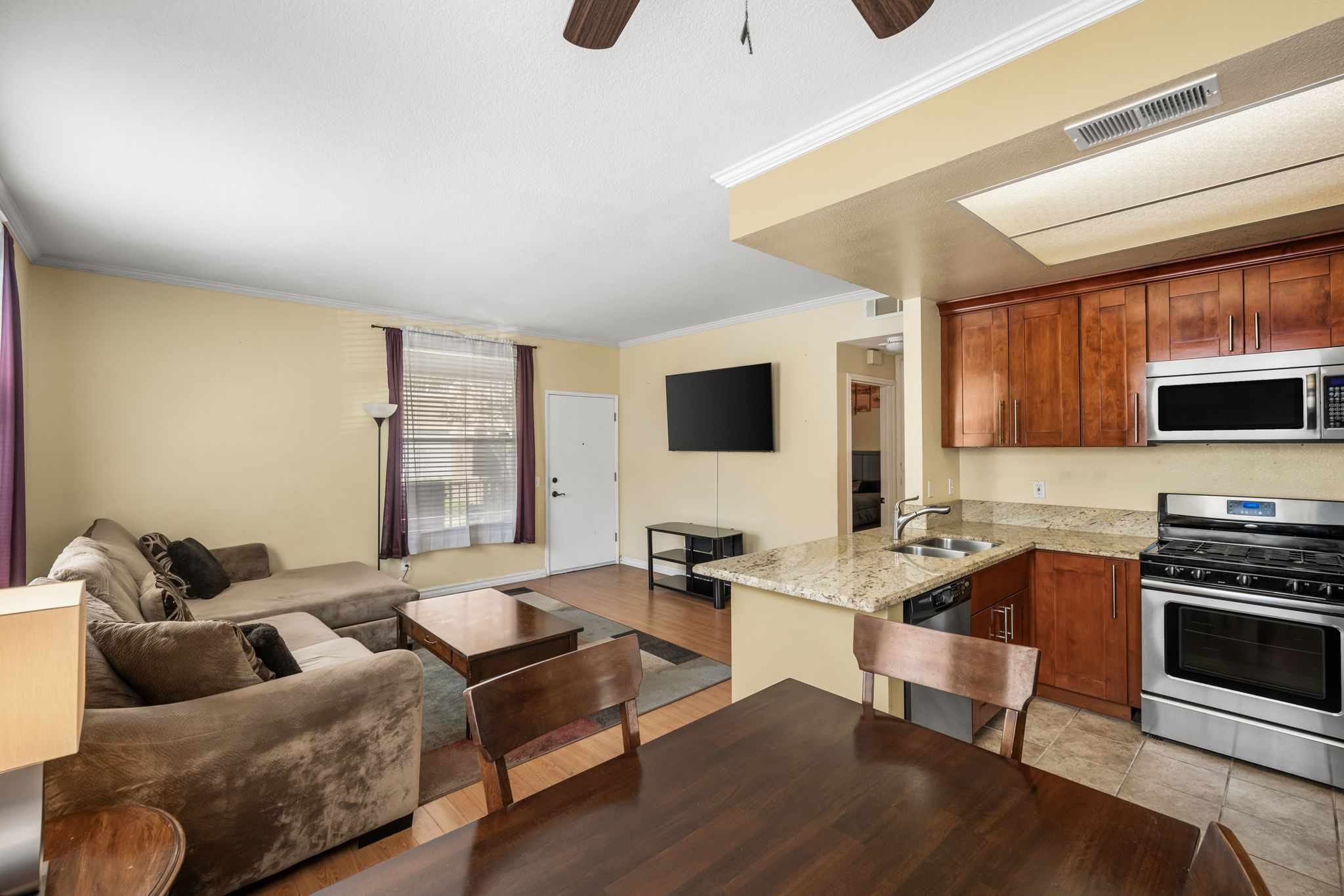 Location, Lifestyle, and Livability! Welcome to the sought-after gated community of Tuscany in Foothill Ranch, where resort-style amenities meet the convenience of a ground-level unit. This charming one-bedroom, one-bath condo offers approximately 692 square feet of thoughtfully designed living space, ideal for first-time homebuyers, downsizers, or anyone seeking easy access. Step inside to find a light-filled interior featuring a spacious living room and an open dining area perfect for everyday meals or casual entertaining. The well-appointed kitchen includes granite countertops, ample cabinet space, and a convenient layout that flows effortlessly into the main living area. The primary bedroom includes a large walk-in closet. The full bathroom is located just outside the bedroom for easy access and features a clean, functional design. A private patio with a laundry closet provides the perfect spot to enjoy morning coffee, read a book, or unwind outdoors. Residents of Tuscany enjoy access to an impressive list of amenities including two pools, two spas, a fitness center, clubhouse, tennis court, putting green, and more. As part of the greater Foothill Ranch community, you will also enjoy access to an additional resort-style pool, parks, sports courts, and miles of scenic hiking and biking trails. Located near shopping, dining, the Foothill Ranch Library, and the 241 toll road, this home truly offers the best of comfort, convenience, and community. Come see why this is one of the most desirable locations in Foothill Ranch.