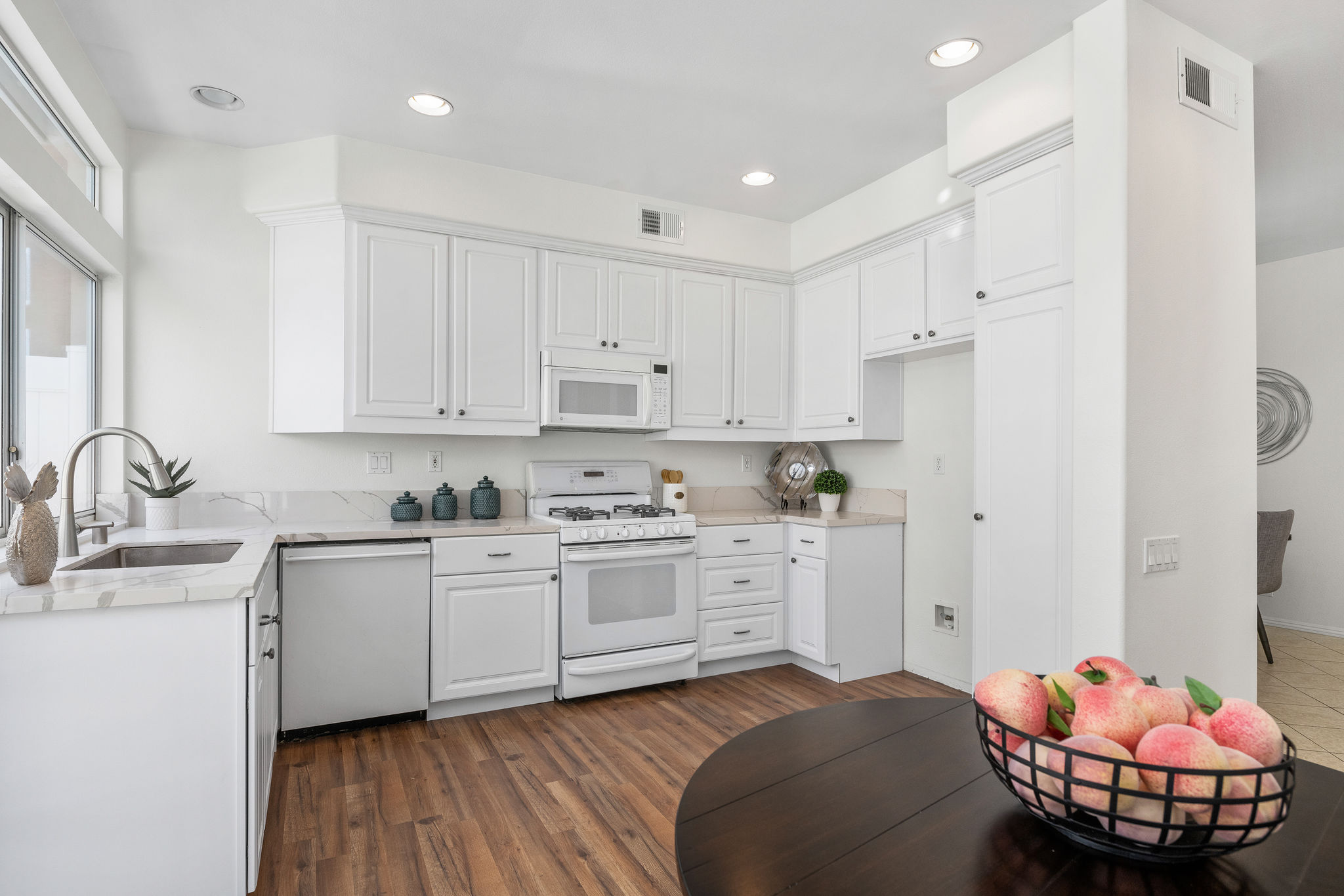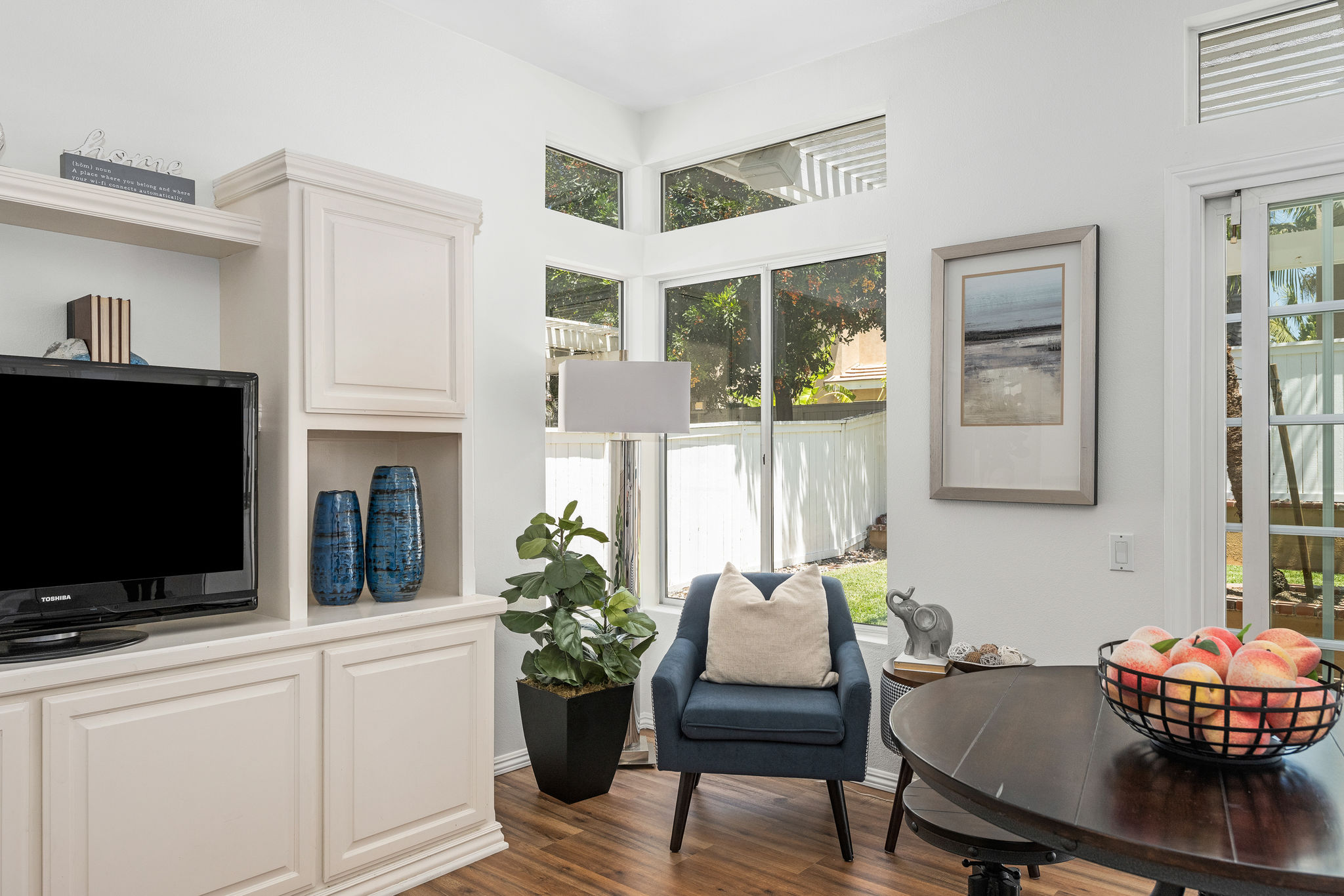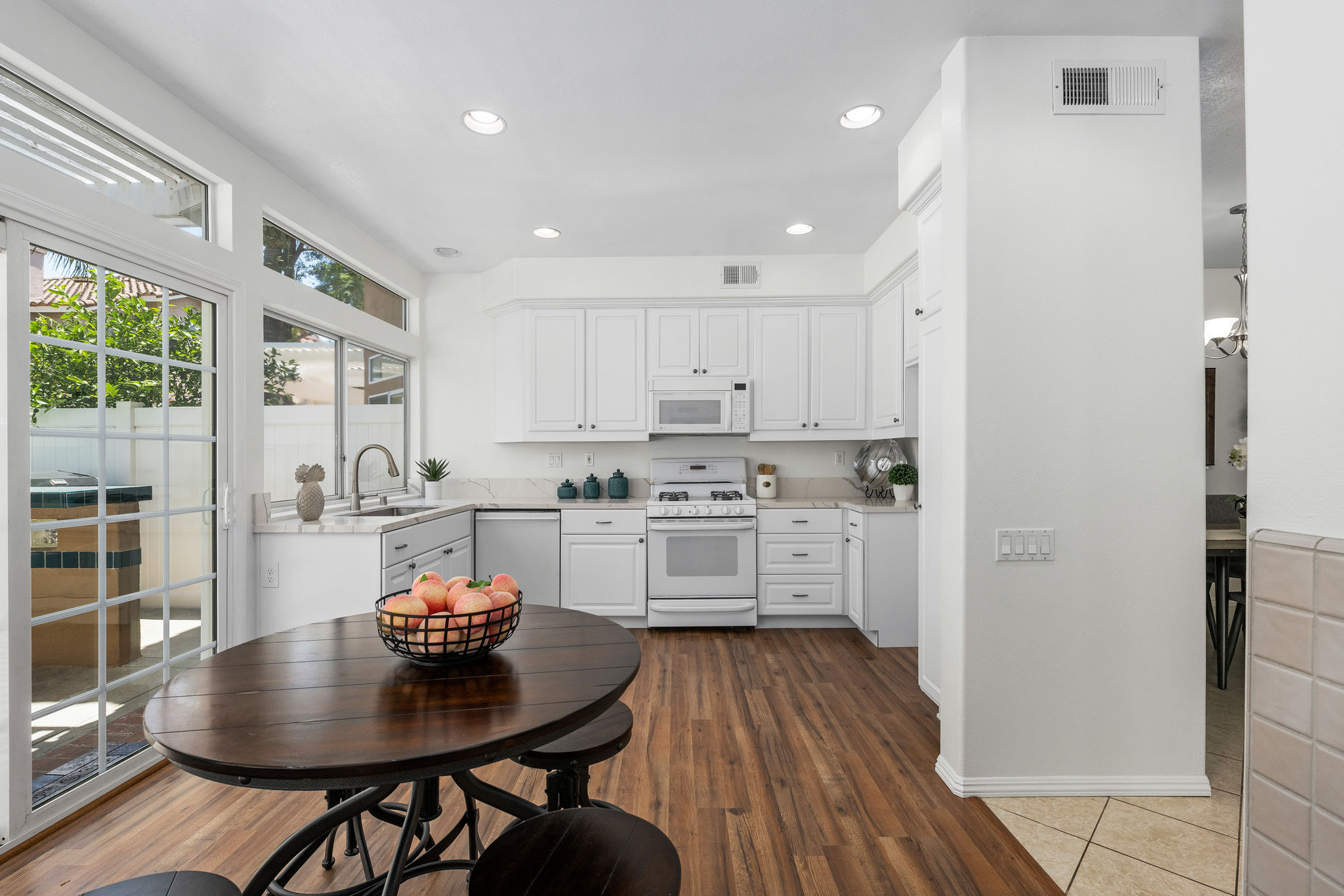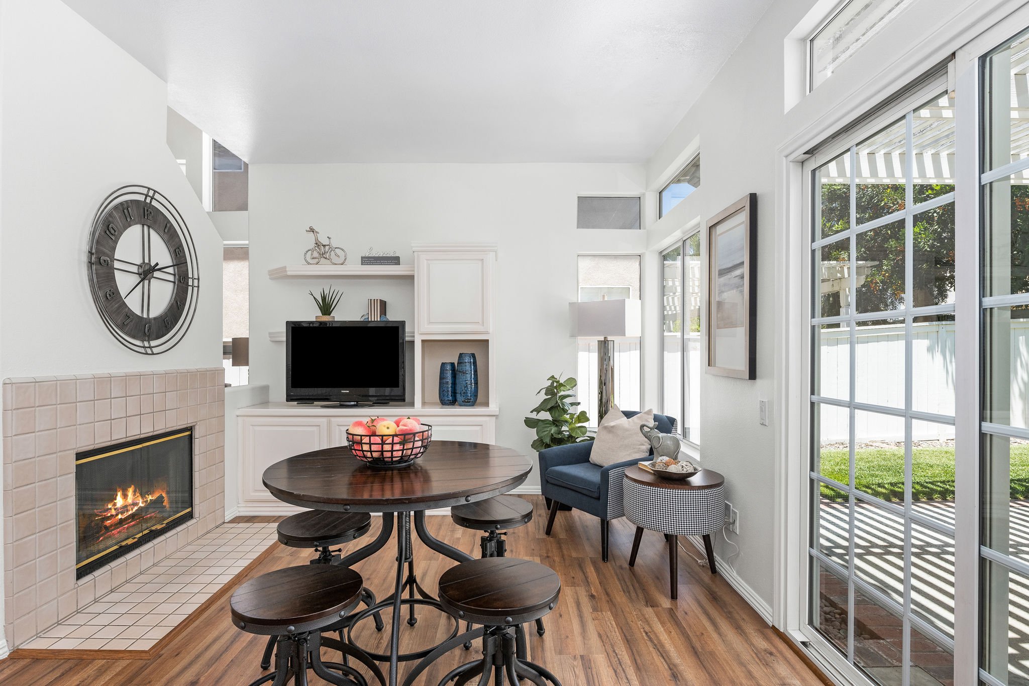 Nestled on a tree-lined street in the wonderful hillside community of Portola Hills. Wow!! This lovely home has it all. Prime location, amazing 3 bedrooms, 2.5 baths for well under $900,000 in South Orange County!! From the moment you enter the home, you'll notice the soaring two-story ceilings and walls of windows that bring in tons of natural infused light into the living room with a cozy double-sided fireplace and the formal dining area. You'll be greeted with a light modern decor with a freshly painted interior, accented with neutral tile, carpet flooring, and upgraded light fixtures. The east-facing kitchen has a sunny orientation with white cabinetry, gorgeous quartz countertops, recessed lighting, luxury wood vinyl floors, a nook area, custom wood built-ins, a fireplace, and a french slider that leads to the outside yard. Large downstairs laundry room, remodeled powder room and direct access to the two-car garage. The primary suite has a ceiling fan along with recessed lighting, remodeled bath with dual vanities, a tub, a shower, and cultured marble countertop. The two additional bedrooms share a secondary remodeled bathroom with a cultured marble countertop, walk-in shower, and new shower enclosure. The backyard is perfect for fun and entertaining with a brick trimmed patio, wood cover, Built-in BBQ with bar, a nice sized grass area and a sunny planter just waiting to become a Victory garden.