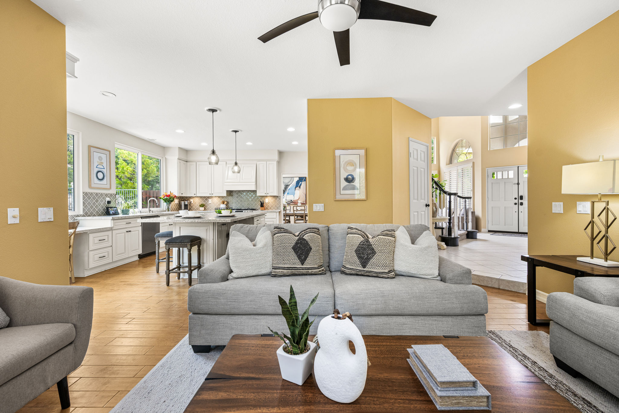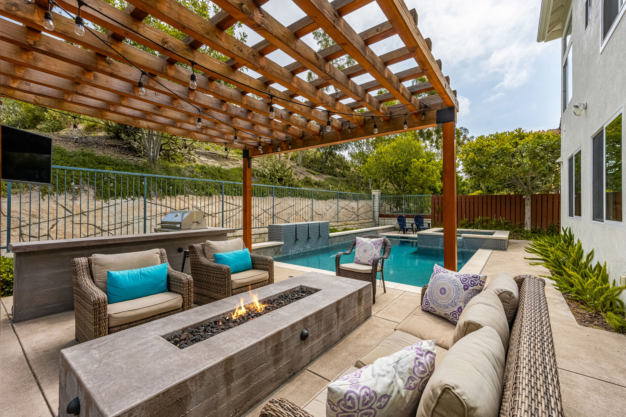 Stop looking — this is the one you've been waiting for! You won't find anything comparable in Irvine at this price. Live the Southern California lifestyle you've always dreamed of in the enchanting community of Foothill Ranch, surrounded by picturesque rolling hills.  This premier location features a resort-style backyard designed for unforgettable entertaining, complete with a sparkling pool, spa, built-in bar and BBQ, cozy fire pit, and covered patio for outdoor dining — as well as a large side yard, perfect for a raised-bed vegetable garden.  Located in the highly sought-after Canyon Oaks tract, this stunning pool home boasts charming curb appeal and a versatile, light-filled floor plan that seamlessly combines comfort and style. Just minutes from the Irvine Spectrum, this entertainer’s dream sits on a spacious view lot and offers five bedrooms, three bathrooms, and 2,647 sq. ft. of well-designed living space.  Guests are welcomed into formal living and dining rooms with soaring ceilings and walls of windows that flood the space with natural light. At the heart of the home is the remodeled chef’s kitchen, featuring an oversized center island, quartz countertops, a custom glass backsplash, custom cabinetry, stainless steel appliances, a double oven, a custom vented hood over the cooktop, a wine cooler, wine bar, office station, and walk-in pantry. The adjoining family room, featuring a cozy fireplace with an upgraded mantel, is perfect for relaxing or gathering with friends.  The main level includes a convenient downstairs bedroom and full bathroom, ideal for guests or a home office, as well as a large laundry room and a three-car garage.  Upstairs, the expansive primary suite includes a peaceful sitting area, high-volume ceilings, and a luxurious remodeled bathroom with a seamless glass shower, soaking tub, dual vanities, and a spacious walk-in closet. Three additional bedrooms share a well-appointed, remodeled secondary bathroom. One of the bedrooms is oversized and can serve as a bonus room, playroom, or home gym — the possibilities are endless.  Additional upgraded features include plantation shutters, wide-plank wood flooring, upgraded light fixtures, wood blinds, and newer air conditioning for year-round comfort.  This one-of-a-kind home truly offers it all — space, style, location, and the perfect setting for Southern California living at its finest. Don’t miss your chance to own this remarkable retreat!
