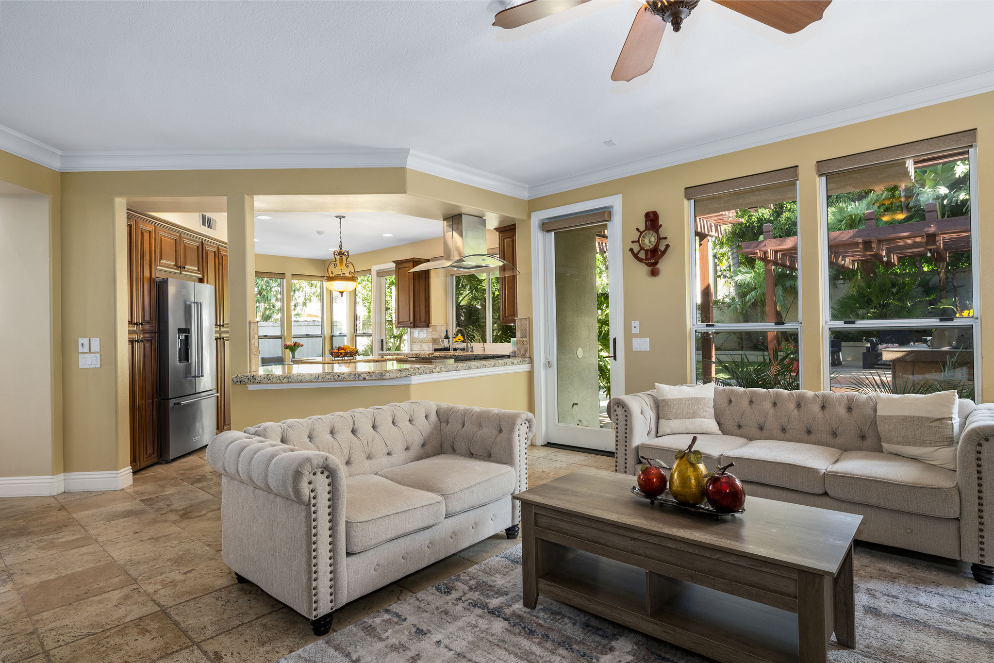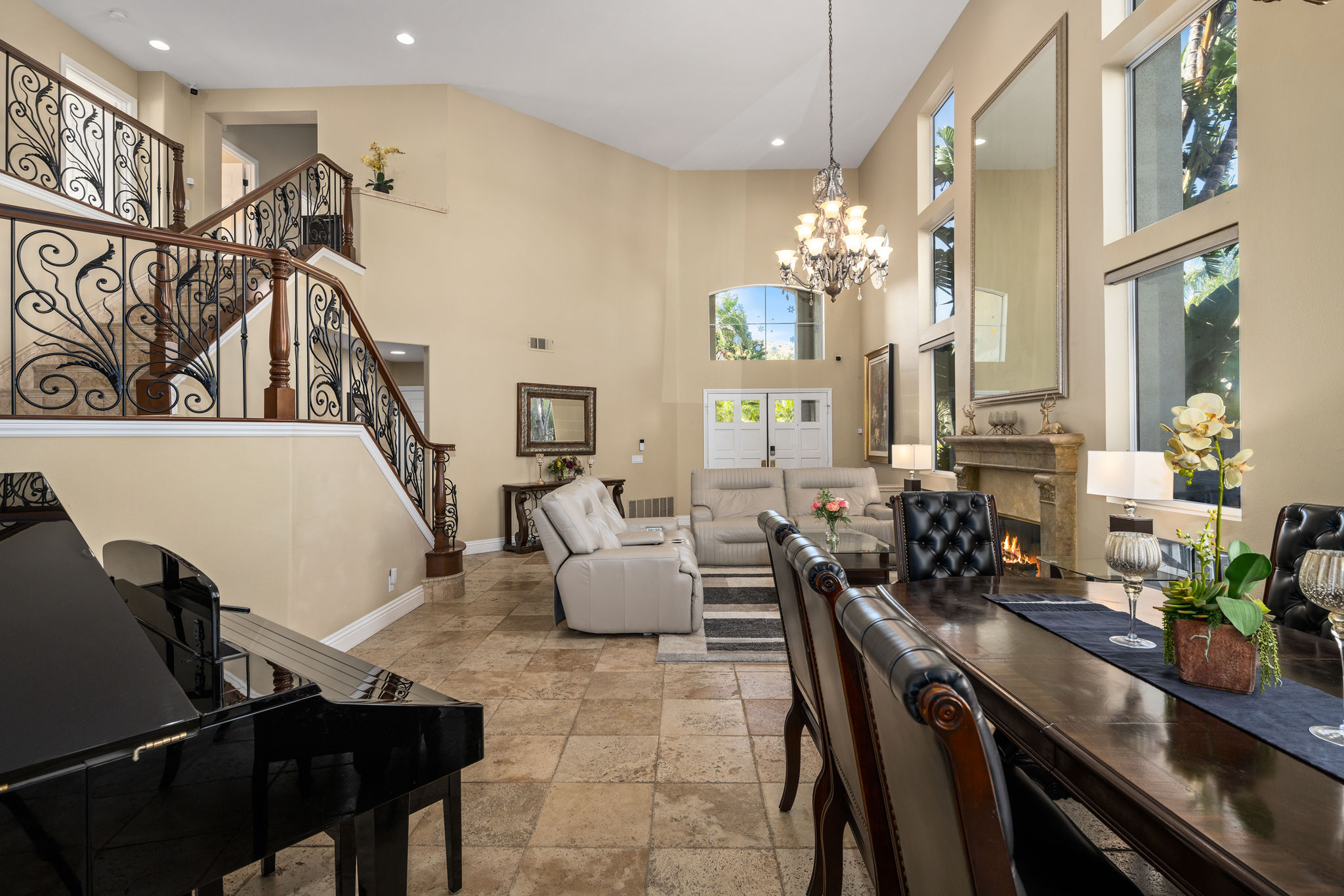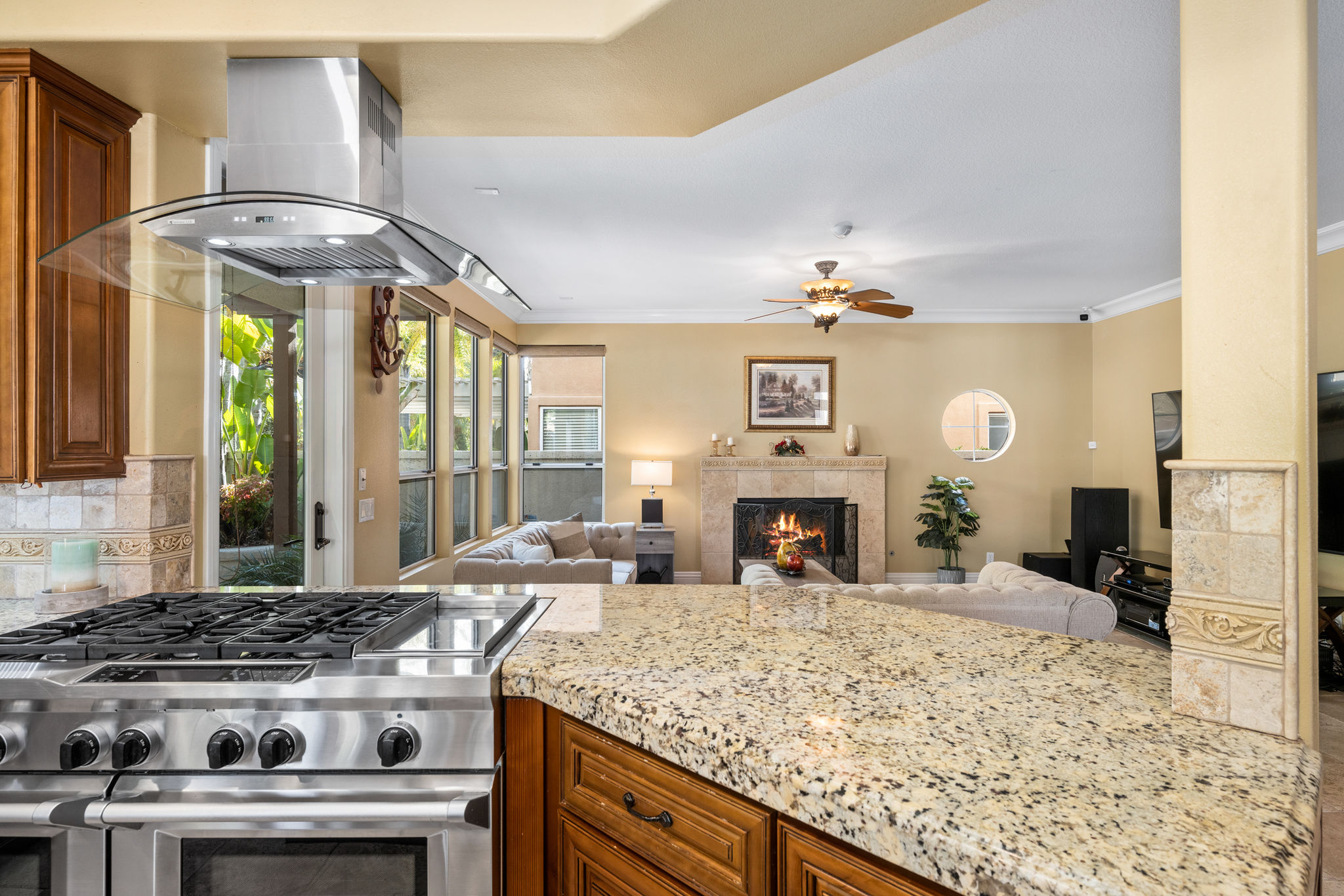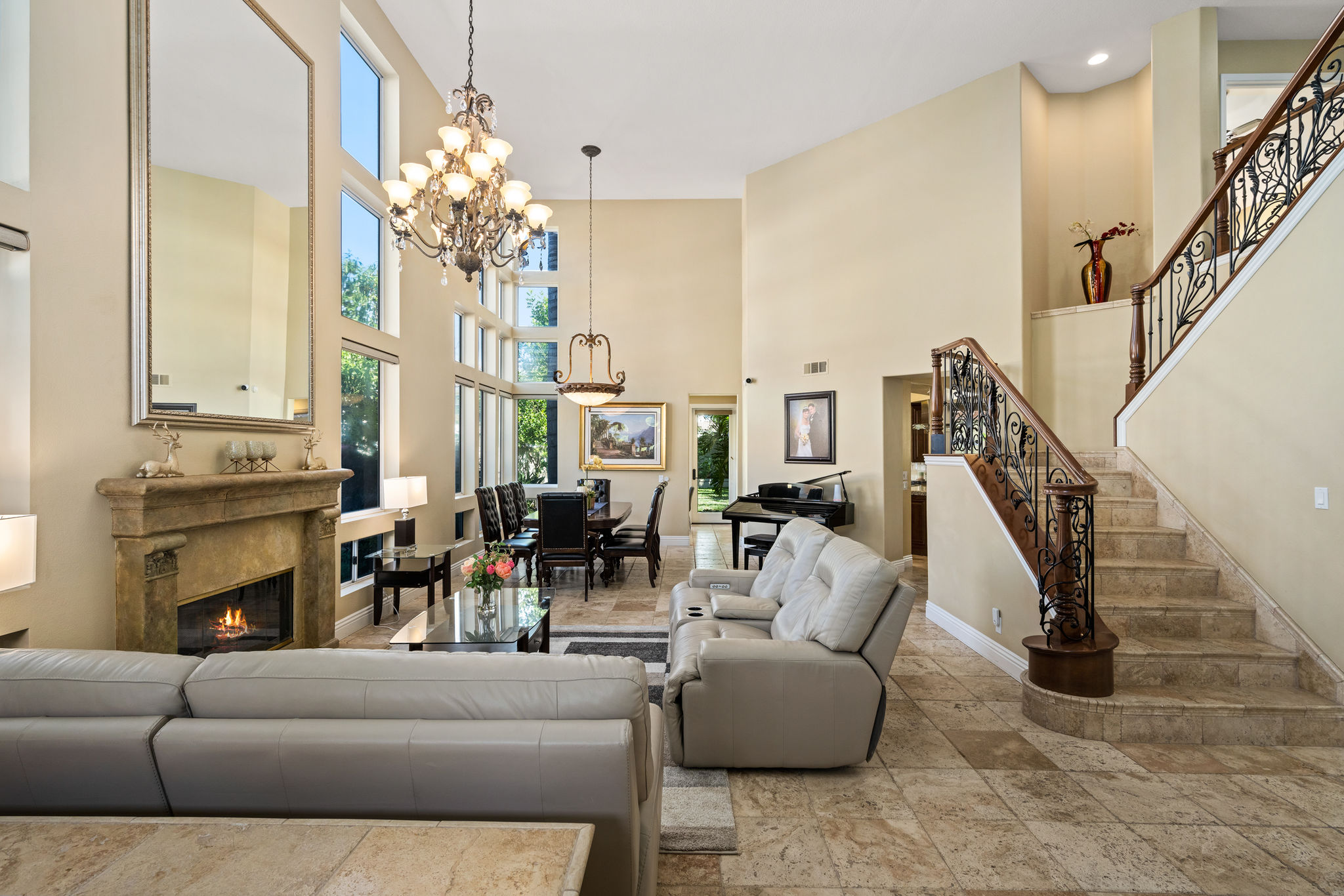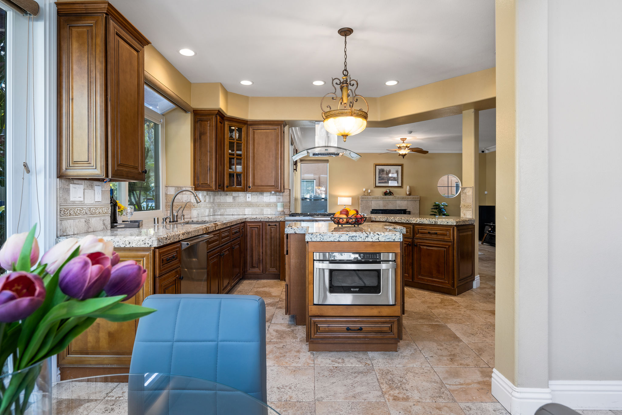 Enjoy the essence of idyllic Foothill Ranch living in this exceptional home, located on a prime inside tract corner lot in the highly sought-after neighborhood of "ROXFORD CREST". Exquisite interior architecture, masterful craftsmanship, elegant finishes, beautiful marble flooring, soaring two-story ceilings, & light-filled rooms welcome you, while the family-oriented floor plan provides comfortable casual living for everyone. This home features 4 bedrooms, 3.5 remodeled bathrooms, a bonus room, and a rare downstairs en-suite bedroom perfect for out-of-town guests. Custom appointments include travertine floors throughout, custom wrought iron and wood staircase, upgraded baseboards, crown molding, upgraded light fixtures, Hunter remote blinds, and two new air conditioners. The remodeled chef's kitchen offers stainless steel appliances, 6 burner stove, a double oven, a custom hood, gorgeous granite countertops, stone backsplash, custom wood cabinetry, a center island, a pantry, and a breakfast nook. The adjoining family room, with a marble accented fireplace, is a perfect place for family gatherings. Enjoy the convenience of a downstairs laundry room with built-in sink and cabinets. The primary suite has high volume ceilings, a sitting area, remodeled bathroom with dual vanities, a walk-in shower, a jetted soaking tub, and a large walk-in closet with custom wood closet organizers. The two additional upstairs bedrooms with custom built-in closets and cabinets share a secondary bathroom. The bonus room/office, teen room with a balcony, and hillside views is a great retreat. You'll just love the tranquil pool-sized backyard, with tropical landscaping, professional hardscape, custom BBQ, bar, and covered patio, for al fresco dining and entertaining.