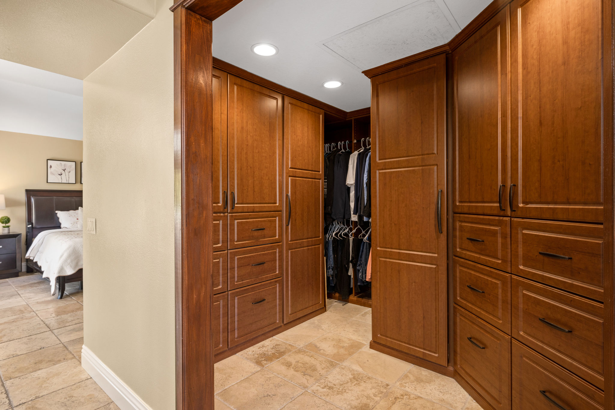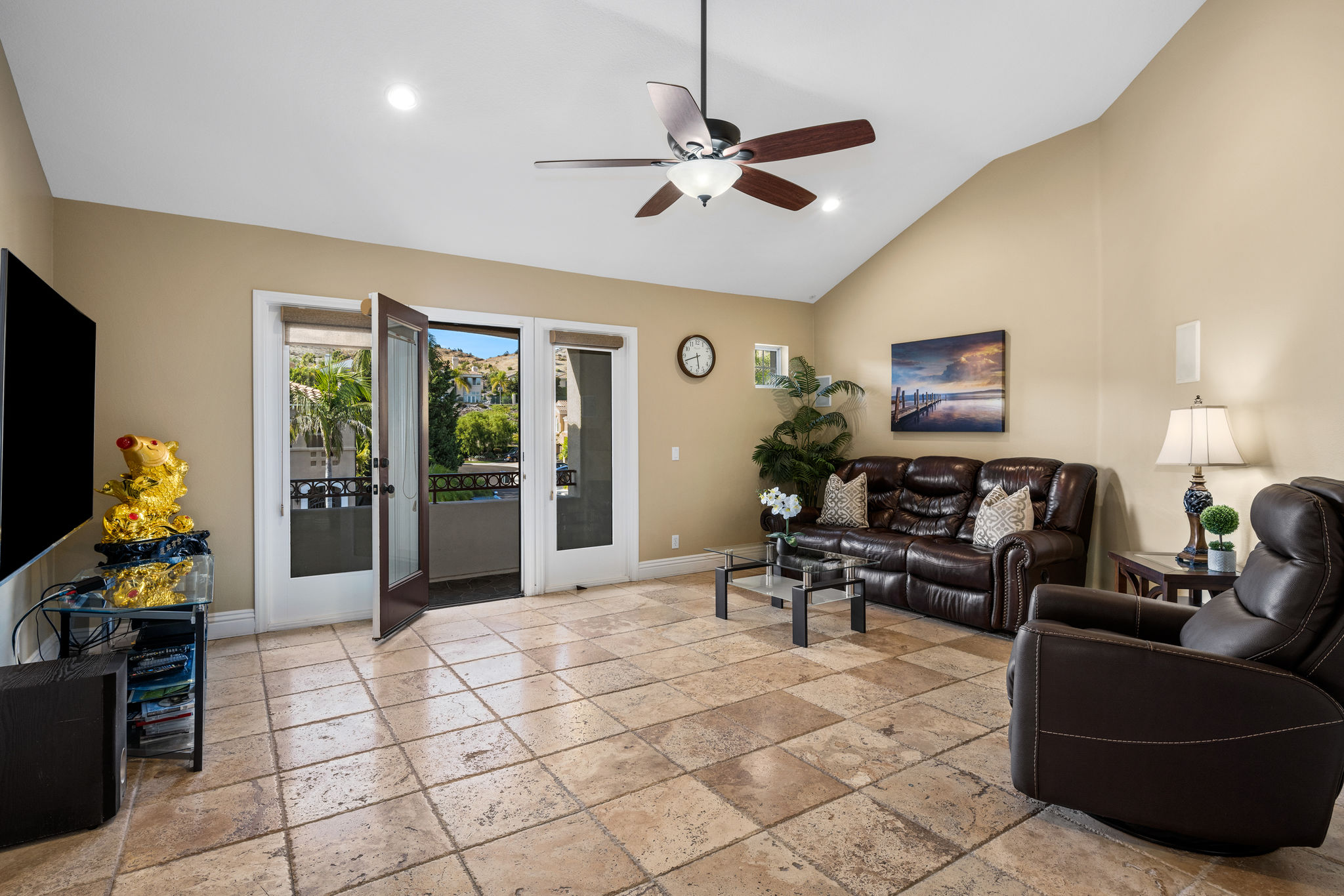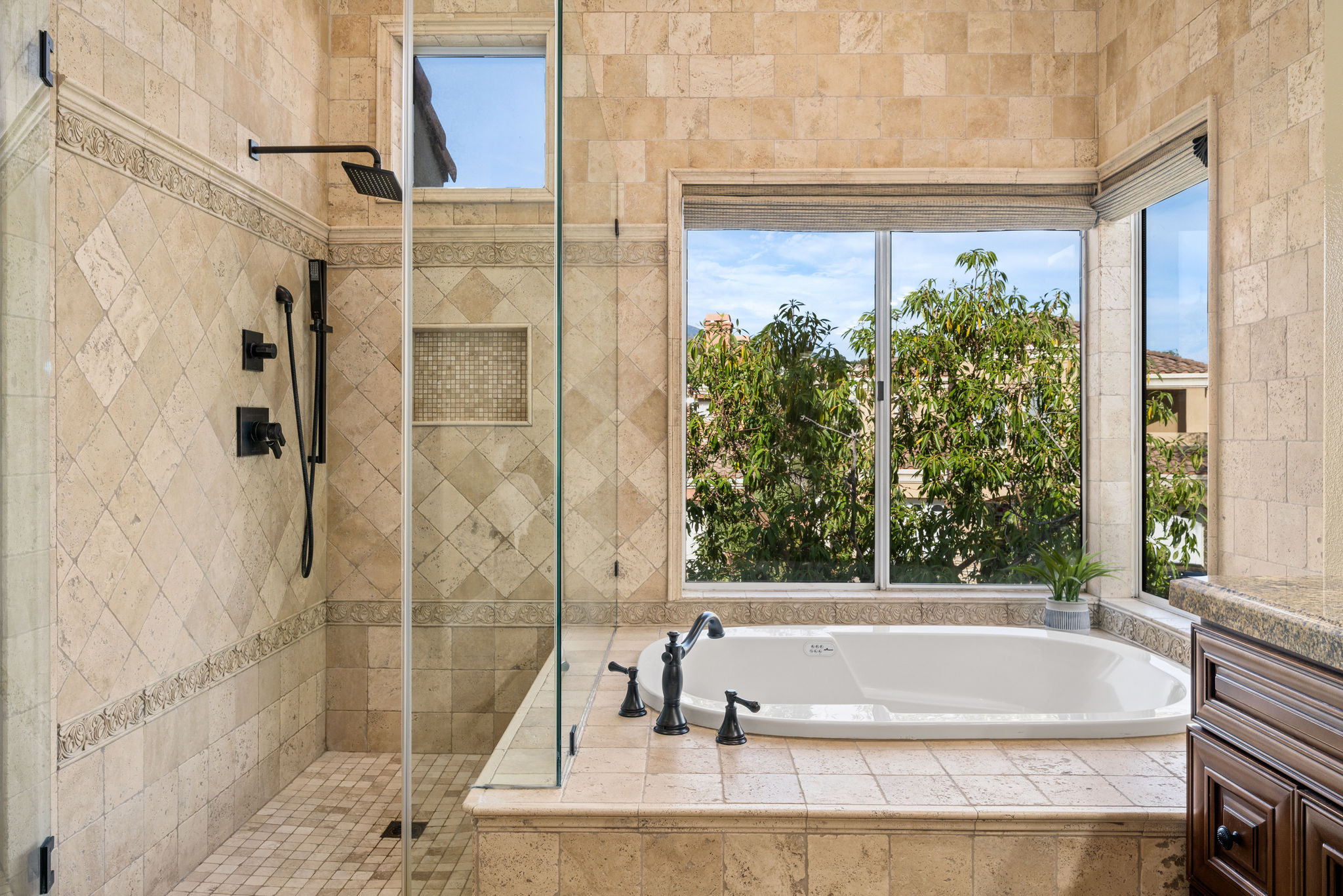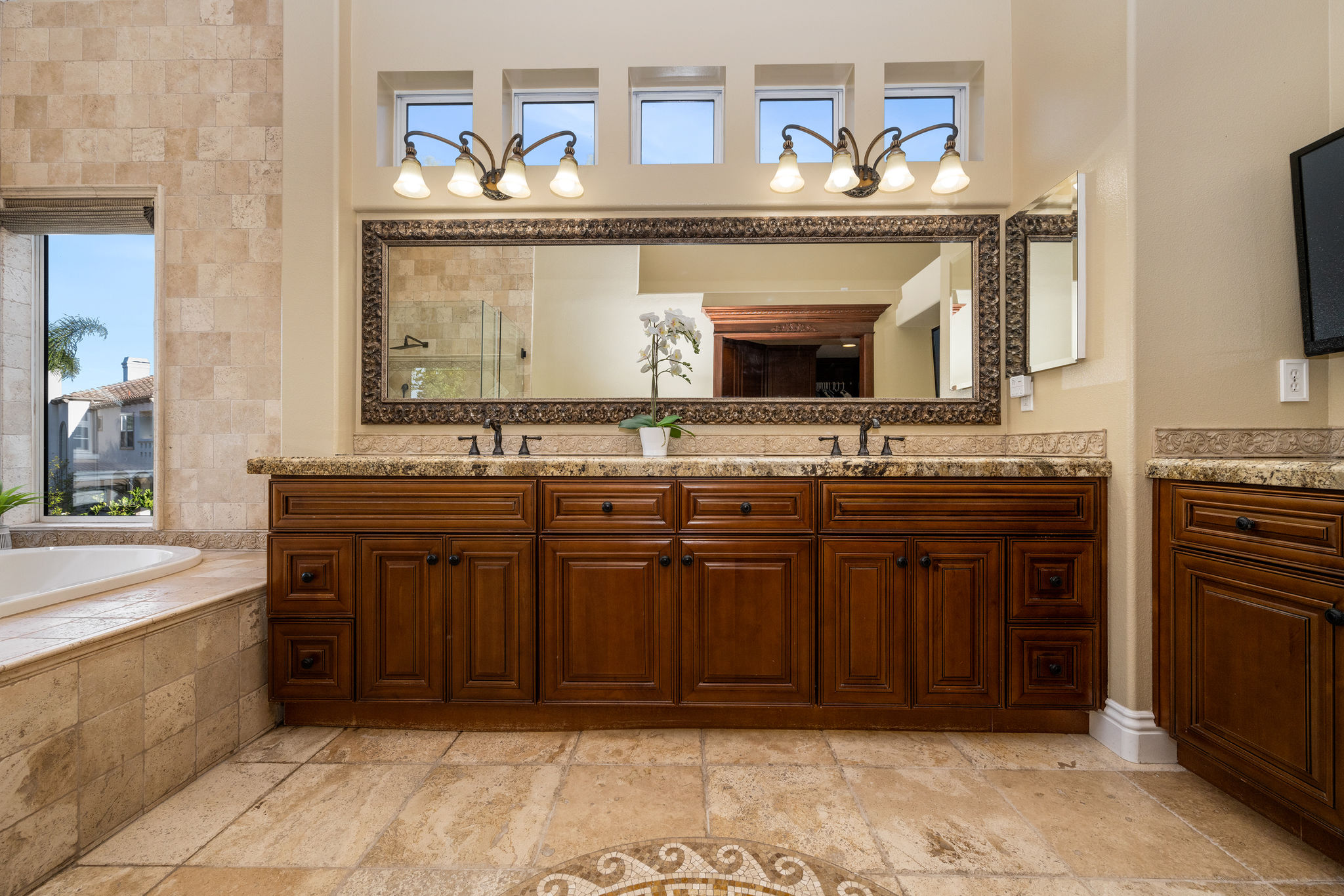 Enjoy the essence of idyllic Foothill Ranch living in this exceptional home, located on a prime inside tract corner lot in the highly sought-after neighborhood of "ROXFORD CREST". Exquisite interior architecture, masterful craftsmanship, elegant finishes, beautiful marble flooring, soaring two-story ceilings, & light-filled rooms welcome you, while the family-oriented floor plan provides comfortable casual living for everyone. This home features 4 bedrooms, 3.5 remodeled bathrooms, a bonus room, and a rare downstairs en-suite bedroom perfect for out-of-town guests. Custom appointments include travertine floors throughout, custom wrought iron and wood staircase, upgraded baseboards, crown molding, upgraded light fixtures, Hunter remote blinds, and two new air conditioners. The remodeled chef's kitchen offers stainless steel appliances, 6 burner stove, a double oven, a custom hood, gorgeous granite countertops, stone backsplash, custom wood cabinetry, a center island, a pantry, and a breakfast nook. The adjoining family room, with a marble accented fireplace, is a perfect place for family gatherings. Enjoy the convenience of a downstairs laundry room with built-in sink and cabinets. The primary suite has high volume ceilings, a sitting area, remodeled bathroom with dual vanities, a walk-in shower, a jetted soaking tub, and a large walk-in closet with custom wood closet organizers. The two additional upstairs bedrooms with custom built-in closets and cabinets share a secondary bathroom. The bonus room/office, teen room with a balcony, and hillside views is a great retreat. You'll just love the tranquil pool-sized backyard, with tropical landscaping, professional hardscape, custom BBQ, bar, and covered patio, for al fresco dining and entertaining.