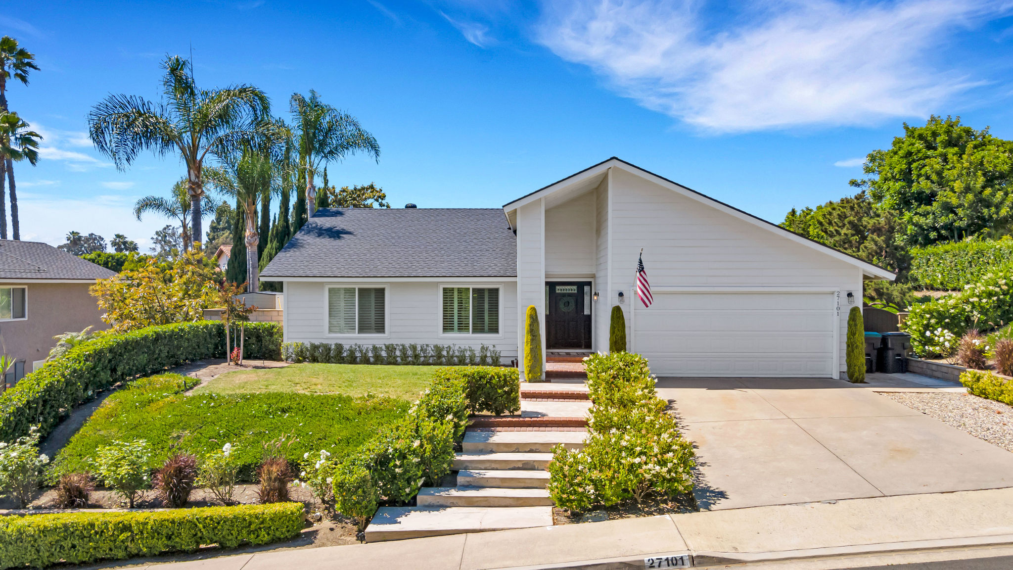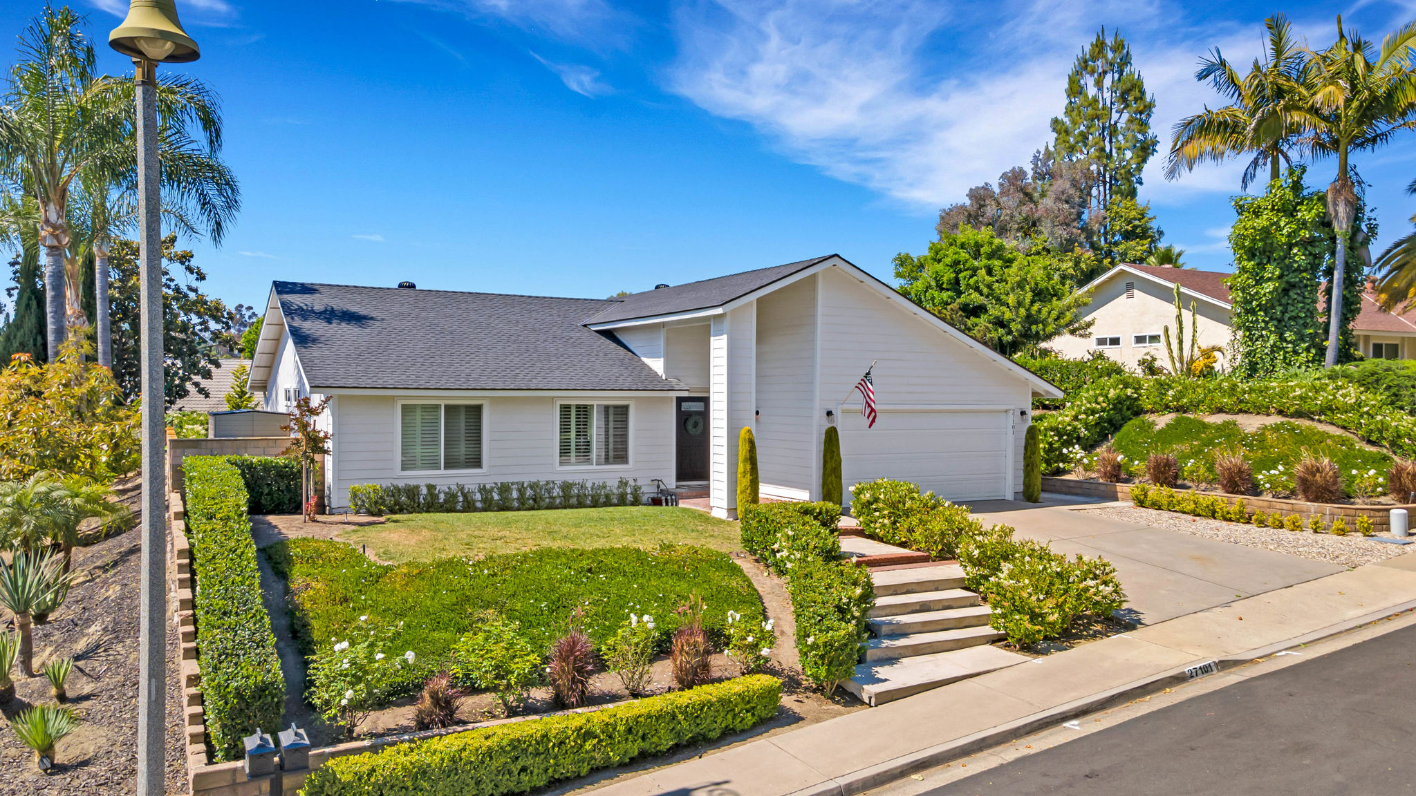 This is the one you've been waiting for! Nestled on a picturesque tree-lined street across from beautiful Castilee Park with sweeping views, this charming Mission Viejo home offers serene, peaceful living. Located in an idyllic neighborhood, this classic ranch-style home boasts desirable living on a premium oversized lot, a sprawling front yard, and fantastic curb appeal that your pickiest buyers will appreciate. Light and bright with added skylight and numerous windows, this inviting single-story home has been thoughtfully updated over the years. Major improvements include a new roof, vinyl windows, exterior paint, custom flooring, front and backyard landscaping, refinished textured ceiling, an air conditioning condenser, a new thermostat, new doors, new lighting, concrete siding, new electrical outlets and switches, re-piping, custom window treatments, new bathroom toilets, vanity and fixtures, and much more. As you step inside through the double door entry, you'll immediately notice the open floor plan that promotes a seamless flow between living spaces. The family room, with its cozy fireplace, evokes warmth and comfort, while the modern chef-inspired kitchen features expansive leathered-finished granite countertops, stainless steel appliances, skylight, Euro white cabinets, and a breakfast bar. The added great room and dining room with vaulted ceilings are perfect for family gatherings. The spacious primary suite, overlooking the backyard, boasts a remodeled bathroom. The two additional bedrooms share a secondary bathroom with an upgraded vanity, mirror, and fixtures. You'll spend hours of relaxation in your private backyard which is perfect for entertaining. Enjoy the expansive park across the street, Lake Mission Viejo amenities, and the convenience of being in walking distance to the elementary school. Also close to shopping and freeway access. Hurry on this one!!