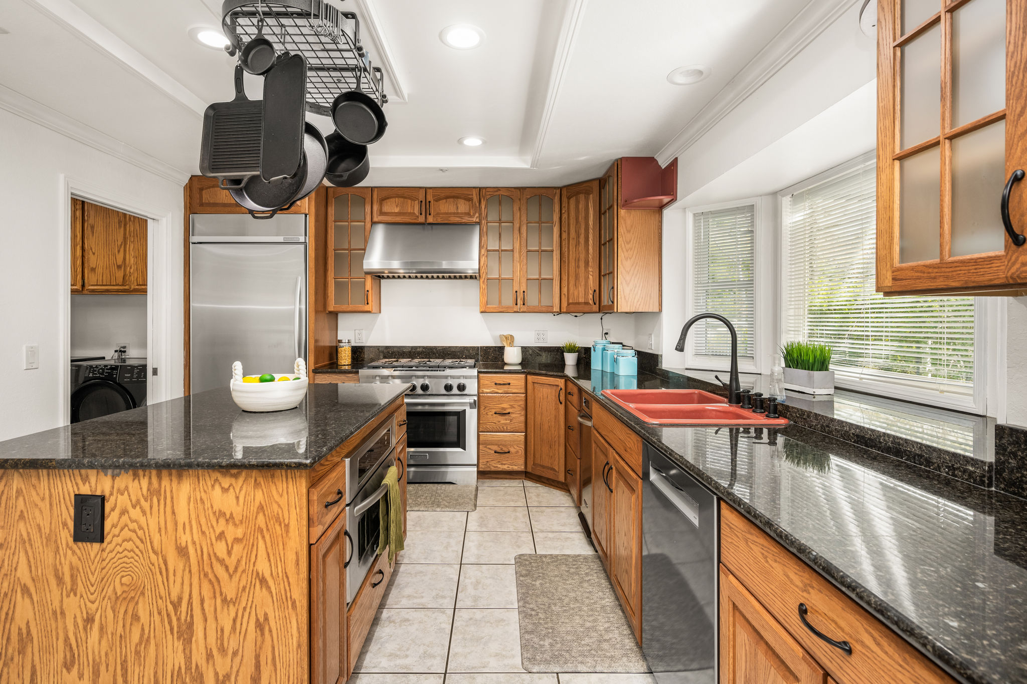WELCOME TO YOUR DREAM HOME IN MODJESKA CANYON!  This move-in-ready home is nestled on a sprawling 1-acre flat lot, offering the perfect blend of luxury, tranquility, and functionality.  Inside, the 4-bedroom, 4-bathroom home features spacious and thoughtfully designed living areas.The front door opens to a spacious foyer leading into a beautiful family room with a fireplace and wet bar—perfect for entertaining.  Adjacent to the family room is a large, inviting living room.  Make your way into the kitchen, which boasts an open layout with premium amenities, including a 6-burner stove, a large pantry, ample cabinet space, a breakfast nook, granite countertops, and a center island.  Next to the kitchen is the dining room, providing plenty of space for both everyday living and entertaining.  The large downstairs primary bedroom serves as a private sanctuary, complete with an en-suite bath.  Adjacent to the primary suite is a second spacious bedroom with its own full bathroom.  Upstairs, two additional large bedrooms share a full bathroom.  A detached two-car garage provides ample storage, while a separate studio space offers endless possibilities, featuring 1 bedroom and 1 bathroom—ideal for a guest house, home office, or gym. The meticulously designed botanical garden creates a breathtaking backdrop, with vibrant flowers, lush greenery, and winding pathways.  A serene pond with a running water stream enhances the peaceful ambiance, making this home a true retreat.  The resort-style backyard is an entertainer’s paradise, complete with beautifully landscaped areas for relaxation and outdoor gatherings.  Sustainability meets modern convenience with solar panels, ensuring energy efficiency.  A gated front entrance adds an extra layer of privacy, completing this incredible home.  With its picturesque setting and luxurious amenities, this property is truly a rare find!  Located adjacent to Tucker Wildlife Sanctuary and the popular Harding Truck Trail, it's perfect for hiking and mountain biking enthusiasts.  The tightly knit Modjeska Canyon community hosts events throughout the year, fostering a unique and special place to call home.  Come listen to the birds chirping and soak in the breathtaking 360-degree canyon views that this quiet, serene home offers.