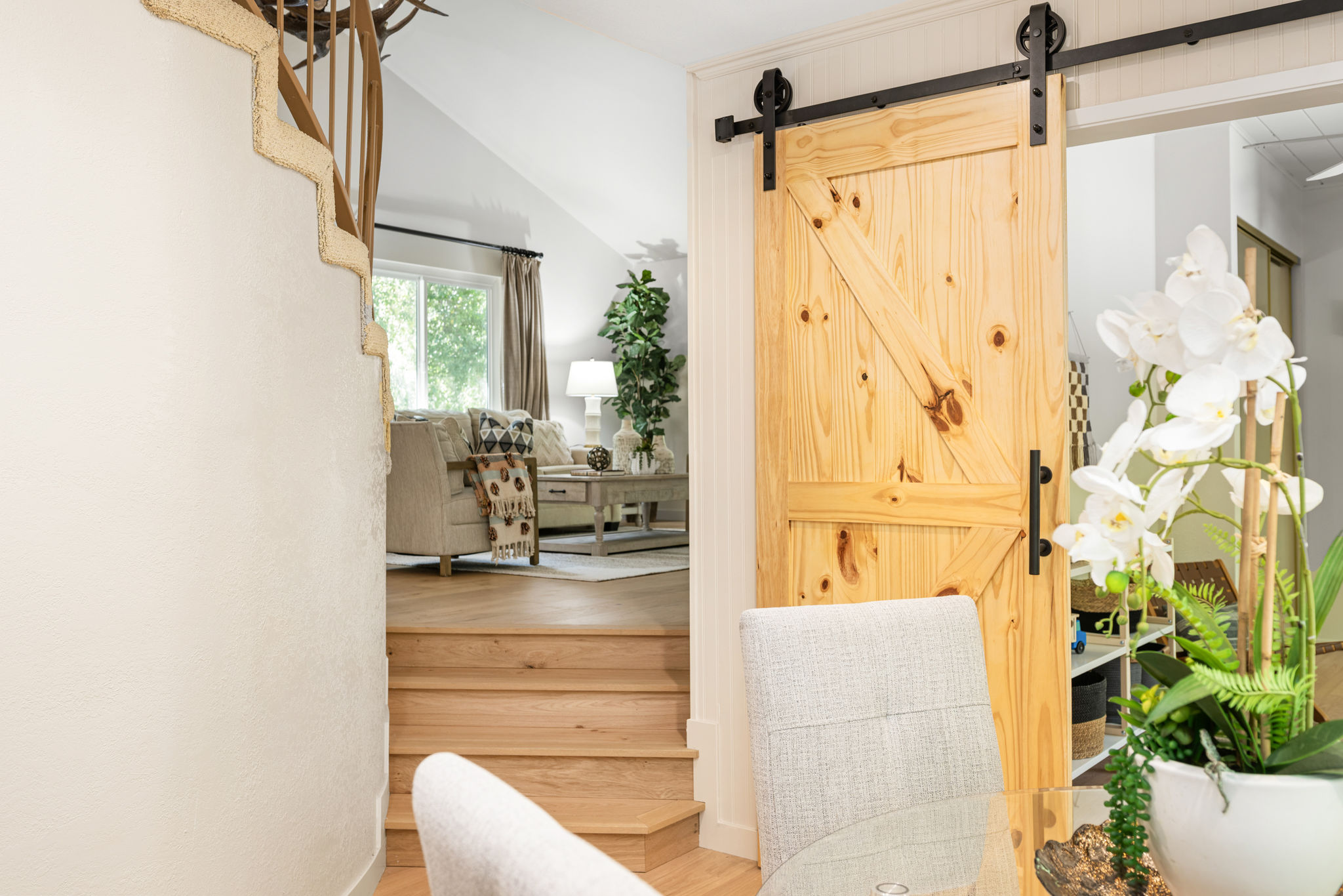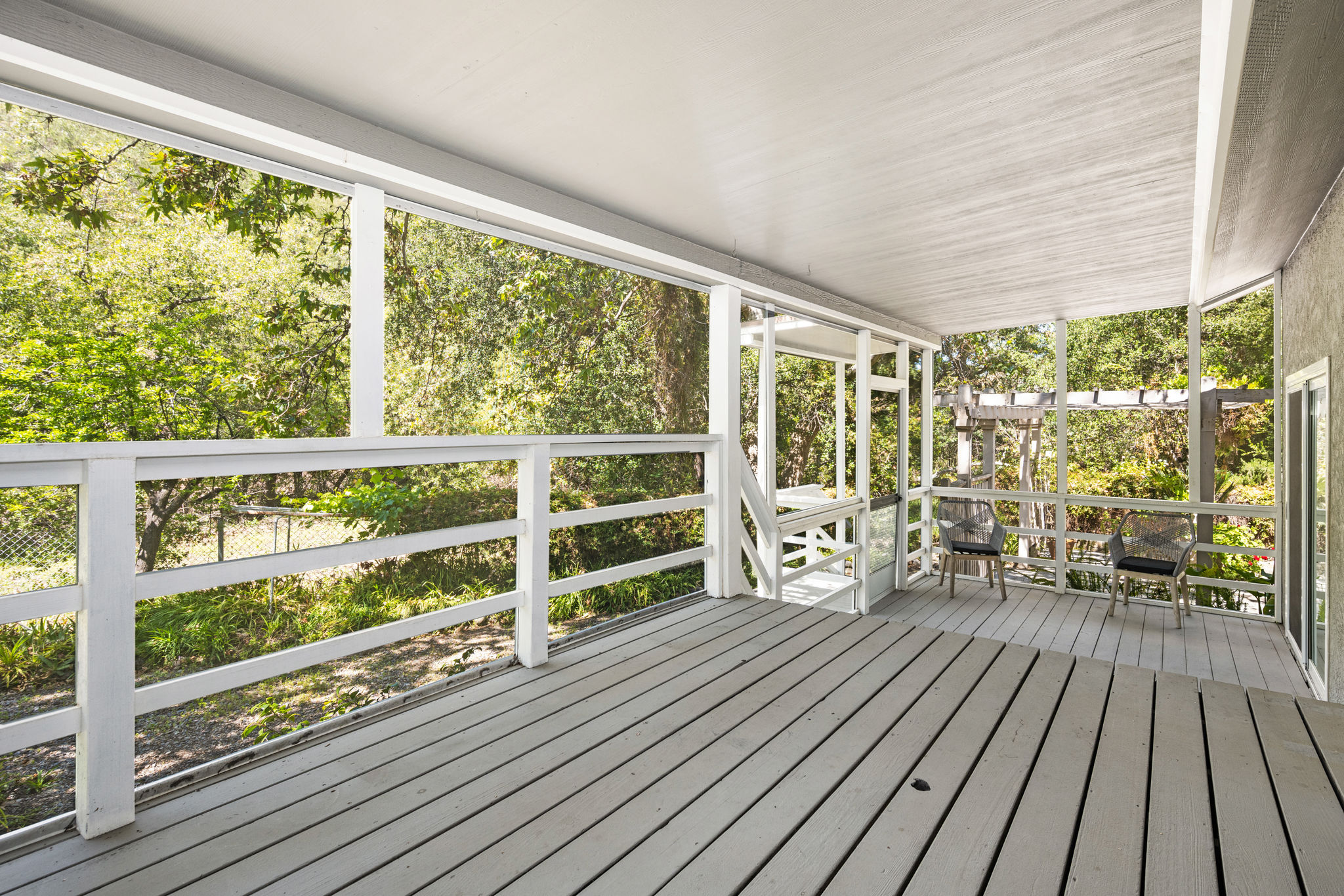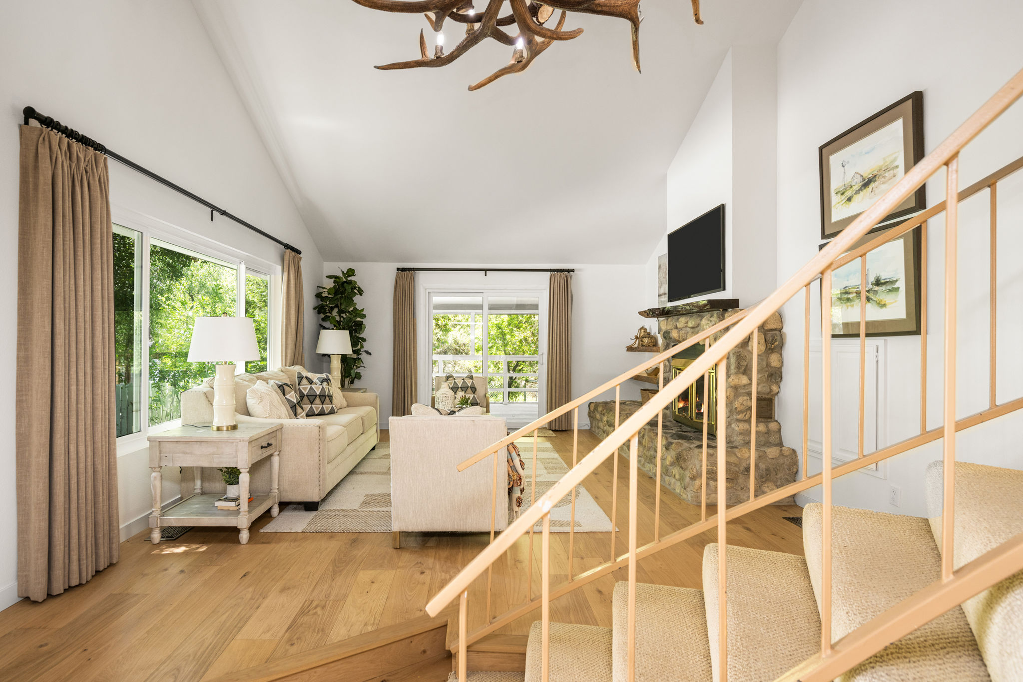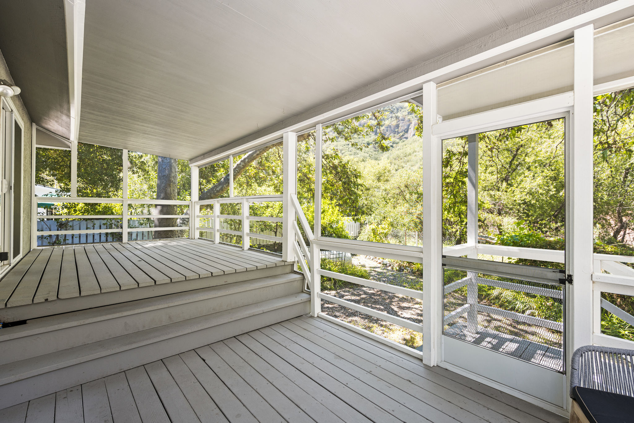 Tucked away in a stunning canyon setting with thoughtful recent upgrades, this 3-bedroom, 3-bathroom home is a rare and remarkable retreat offering the perfect fusion of comfort, charm, and natural beauty. Step inside to a warm and inviting interior featuring a spacious, light-filled layout. The main floor boasts a coveted downstairs bedroom and full bathroom—ideal for guests, a private office, or multi-generational living. Enjoy the beautifully renovated designer kitchen with modern finishes and custom cabinetry, as well as an adjacent upgraded bathroom with matching contemporary style. This home offers multiple living areas, including a cozy living room with a wood-burning fireplace and an enclosed back porch—providing the perfect backdrop for entertaining or relaxing with loved ones. Upstairs, the generous primary bedroom with an ensuite full bathroom is a true sanctuary, complete with an enclosed balcony offering peaceful views of the lush canyon landscape. Adjacent to the primary suite is an additional bedroom with its own ensuite full bathroom and a large storage room hidden behind the closet space. Set on an expansive, flat 'double lot', this gated property offers ultimate privacy, a tranquil creek-side ambiance, and the serenity of peaceful, nature-filled living—an absolute dream for outdoor lovers and nature enthusiasts. Additional highlights include an attached 2-car garage, roof-mounted fire sprinklers, and enclosed eaves for added safety. With ample space for gardens, gatherings, or future expansion, this property is more than a home—it’s a private canyon oasis offering a lifestyle of beauty, serenity, and inspiration. Don’t miss this rare opportunity to own a one-of-a-kind canyon escape where every detail has been thoughtfully crafted for peaceful, elevated living.