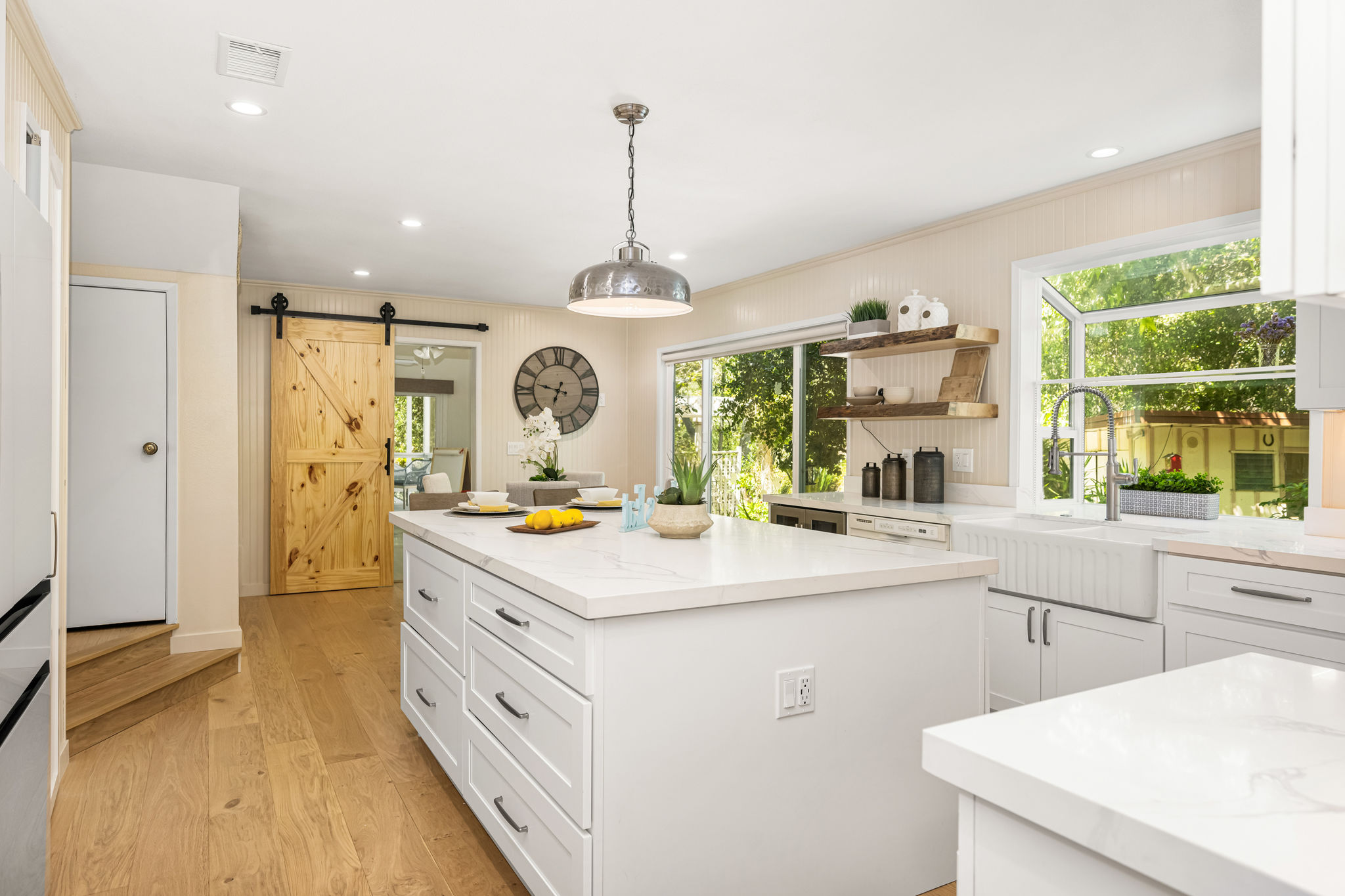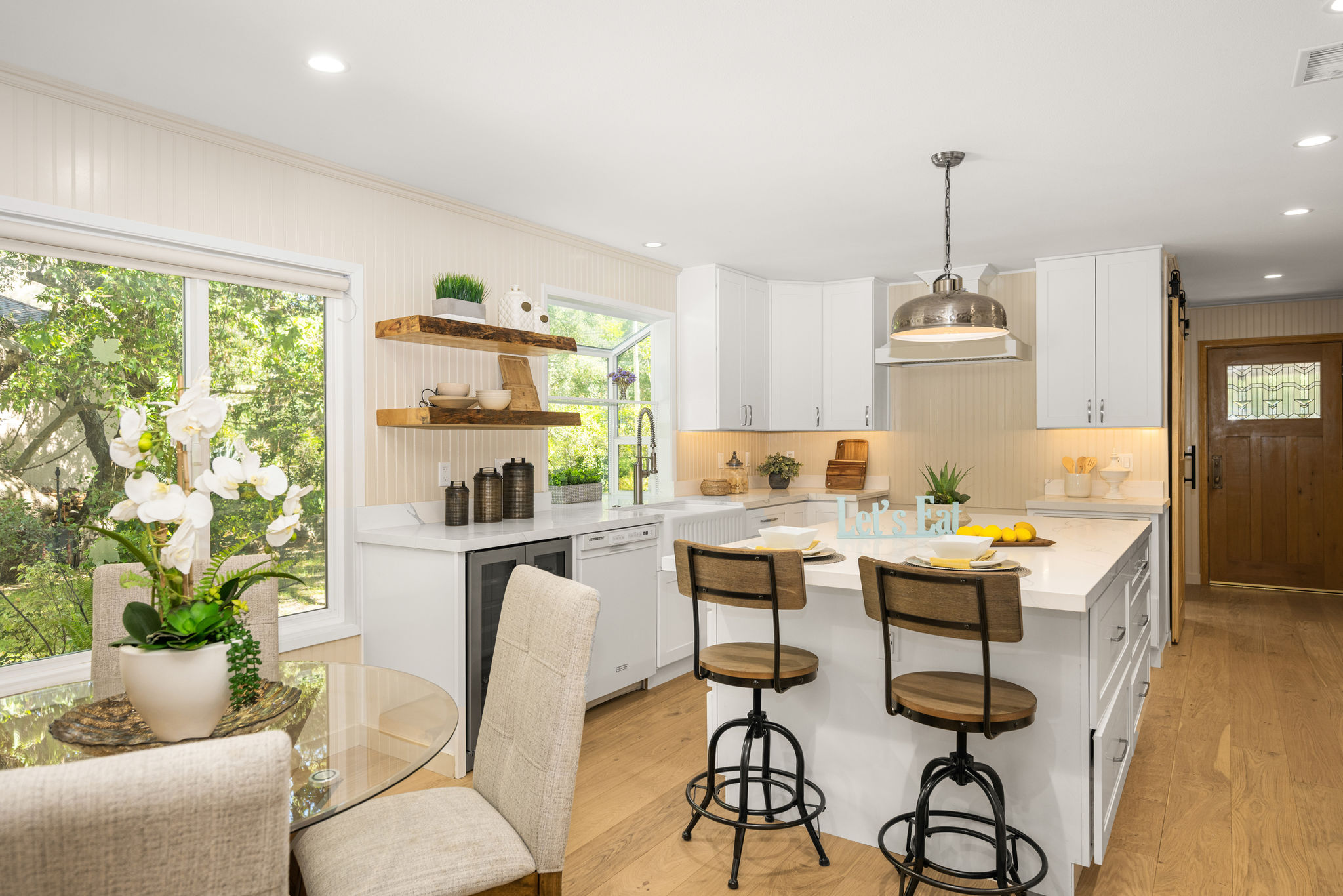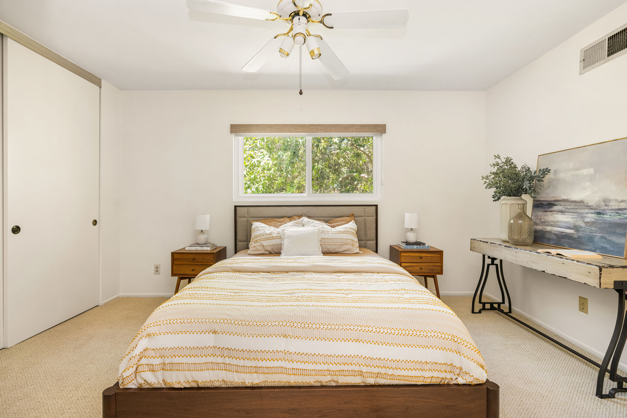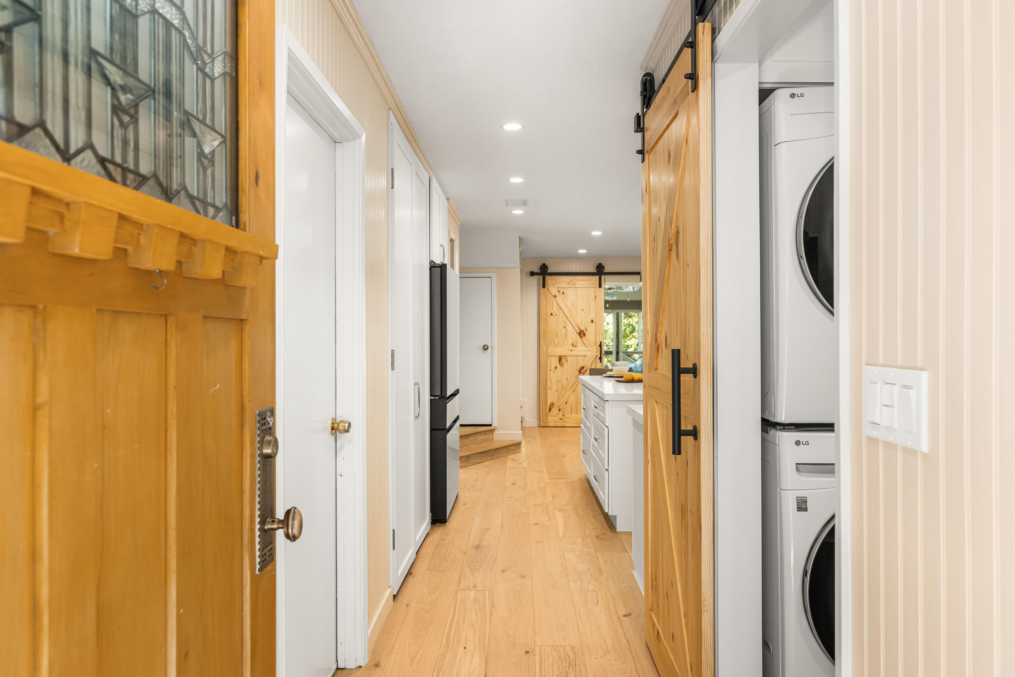 Tucked away in a stunning canyon setting with thoughtful recent upgrades, this 3-bedroom, 3-bathroom home is a rare and remarkable retreat offering the perfect fusion of comfort, charm, and natural beauty. Step inside to a warm and inviting interior featuring a spacious, light-filled layout. The main floor boasts a coveted downstairs bedroom and full bathroom—ideal for guests, a private office, or multi-generational living. Enjoy the beautifully renovated designer kitchen with modern finishes and custom cabinetry, as well as an adjacent upgraded bathroom with matching contemporary style. This home offers multiple living areas, including a cozy living room with a wood-burning fireplace and an enclosed back porch—providing the perfect backdrop for entertaining or relaxing with loved ones. Upstairs, the generous primary bedroom with an ensuite full bathroom is a true sanctuary, complete with an enclosed balcony offering peaceful views of the lush canyon landscape. Adjacent to the primary suite is an additional bedroom with its own ensuite full bathroom and a large storage room hidden behind the closet space. Set on an expansive, flat 'double lot', this gated property offers ultimate privacy, a tranquil creek-side ambiance, and the serenity of peaceful, nature-filled living—an absolute dream for outdoor lovers and nature enthusiasts. Additional highlights include an attached 2-car garage, roof-mounted fire sprinklers, and enclosed eaves for added safety. With ample space for gardens, gatherings, or future expansion, this property is more than a home—it’s a private canyon oasis offering a lifestyle of beauty, serenity, and inspiration. Don’t miss this rare opportunity to own a one-of-a-kind canyon escape where every detail has been thoughtfully crafted for peaceful, elevated living.