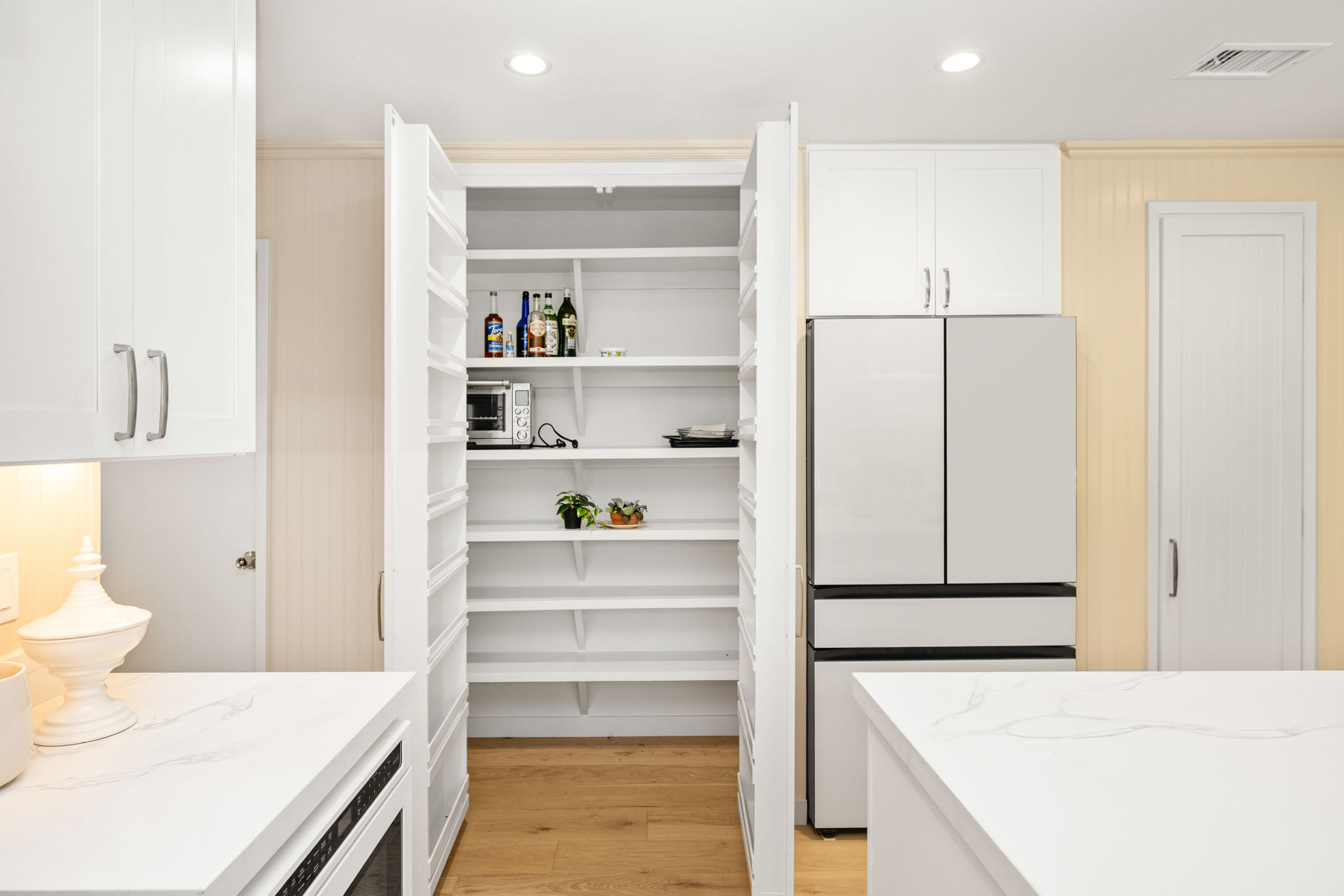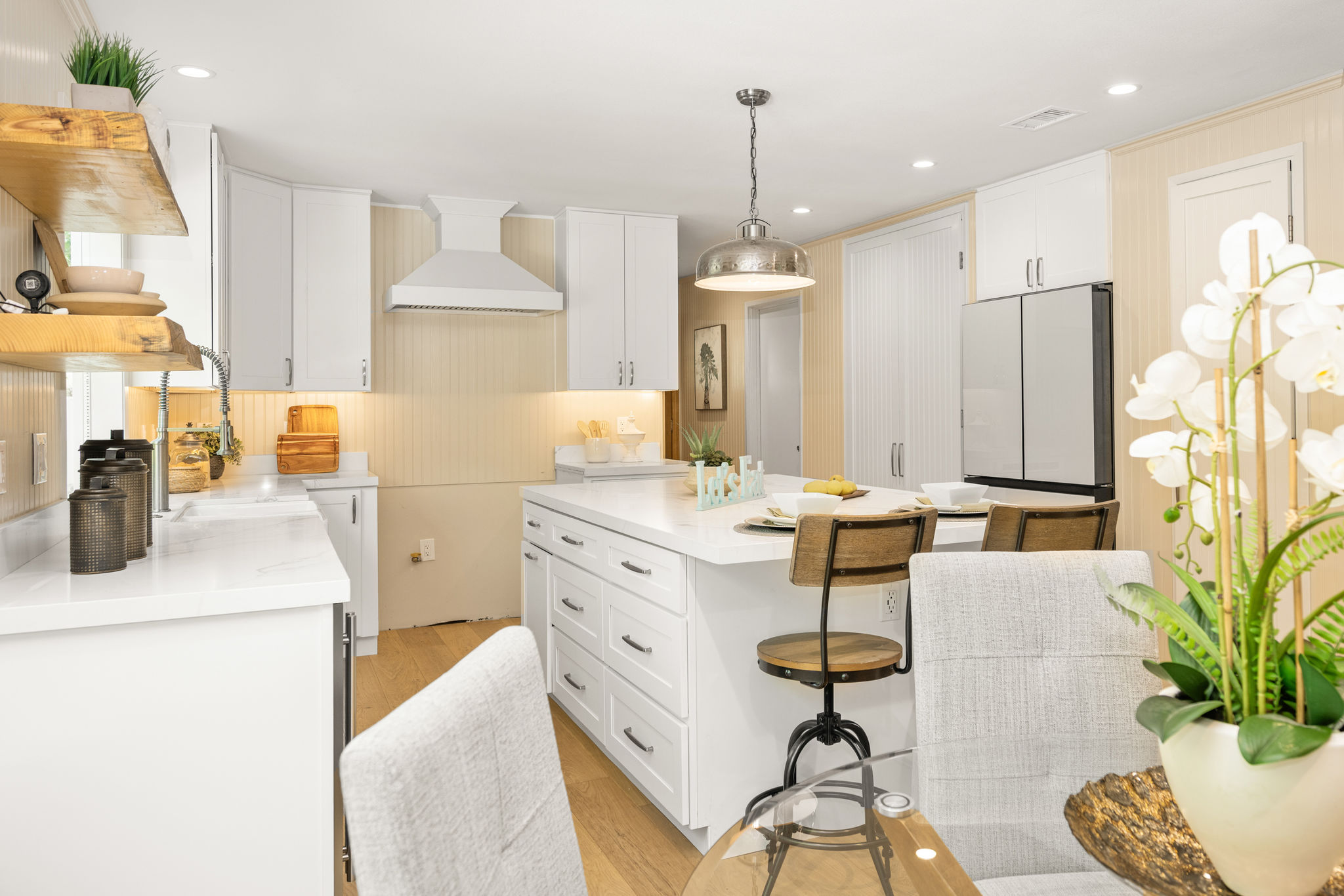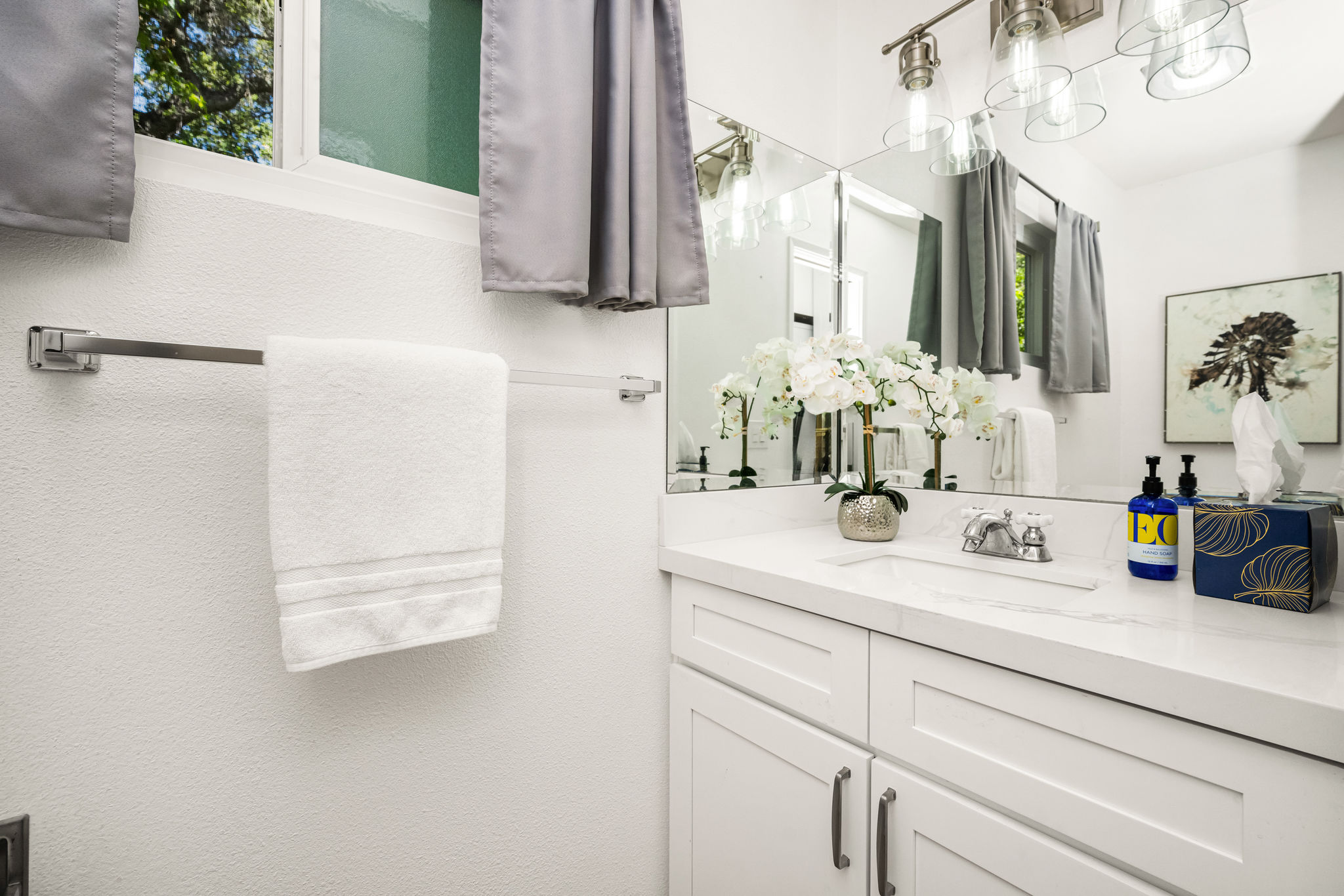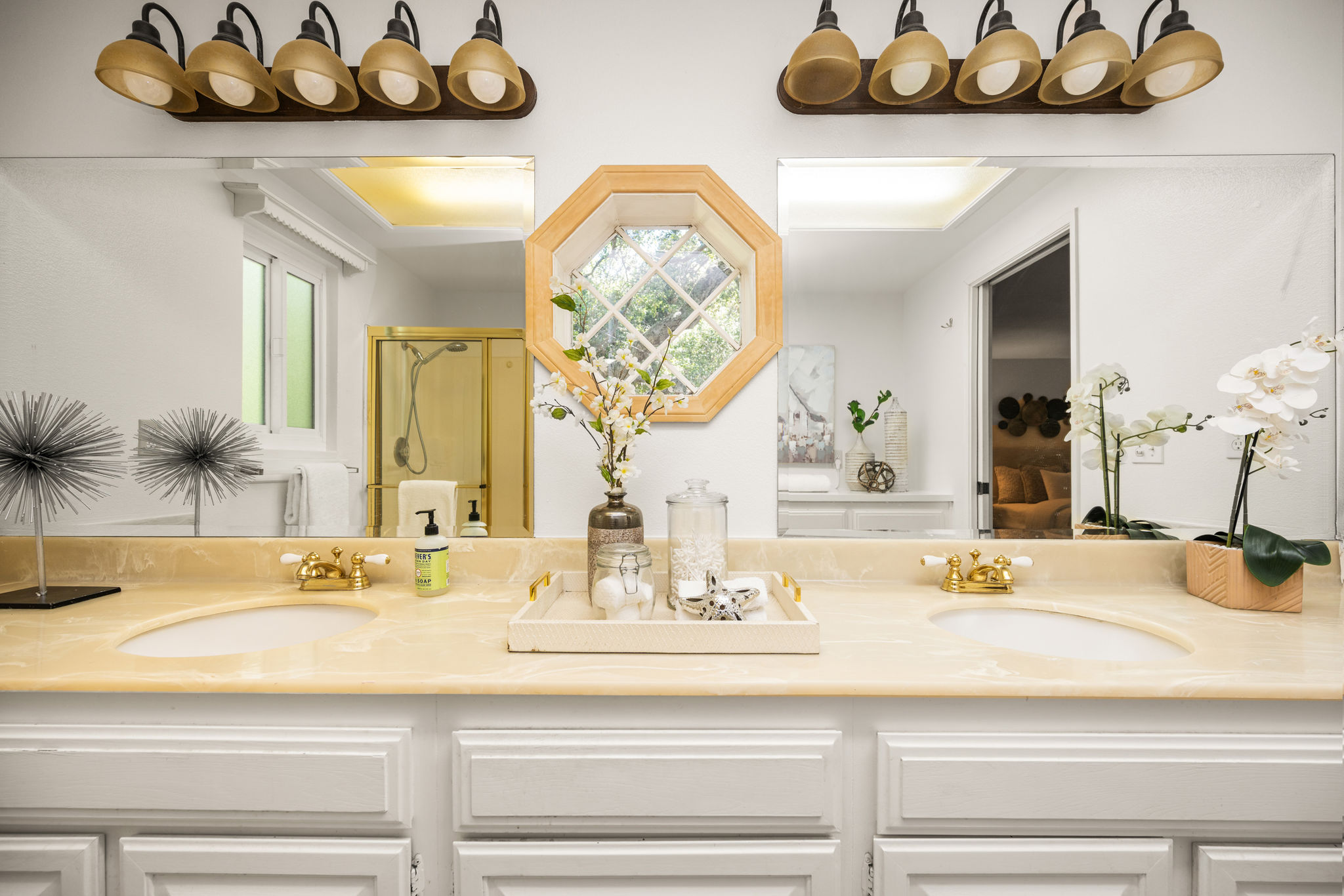 Tucked away in a stunning canyon setting with thoughtful recent upgrades, this 3-bedroom, 3-bathroom home is a rare and remarkable retreat offering the perfect fusion of comfort, charm, and natural beauty. Step inside to a warm and inviting interior featuring a spacious, light-filled layout. The main floor boasts a coveted downstairs bedroom and full bathroom—ideal for guests, a private office, or multi-generational living. Enjoy the beautifully renovated designer kitchen with modern finishes and custom cabinetry, as well as an adjacent upgraded bathroom with matching contemporary style. This home offers multiple living areas, including a cozy living room with a wood-burning fireplace and an enclosed back porch—providing the perfect backdrop for entertaining or relaxing with loved ones. Upstairs, the generous primary bedroom with an ensuite full bathroom is a true sanctuary, complete with an enclosed balcony offering peaceful views of the lush canyon landscape. Adjacent to the primary suite is an additional bedroom with its own ensuite full bathroom and a large storage room hidden behind the closet space. Set on an expansive, flat 'double lot', this gated property offers ultimate privacy, a tranquil creek-side ambiance, and the serenity of peaceful, nature-filled living—an absolute dream for outdoor lovers and nature enthusiasts. Additional highlights include an attached 2-car garage, roof-mounted fire sprinklers, and enclosed eaves for added safety. With ample space for gardens, gatherings, or future expansion, this property is more than a home—it’s a private canyon oasis offering a lifestyle of beauty, serenity, and inspiration. Don’t miss this rare opportunity to own a one-of-a-kind canyon escape where every detail has been thoughtfully crafted for peaceful, elevated living.