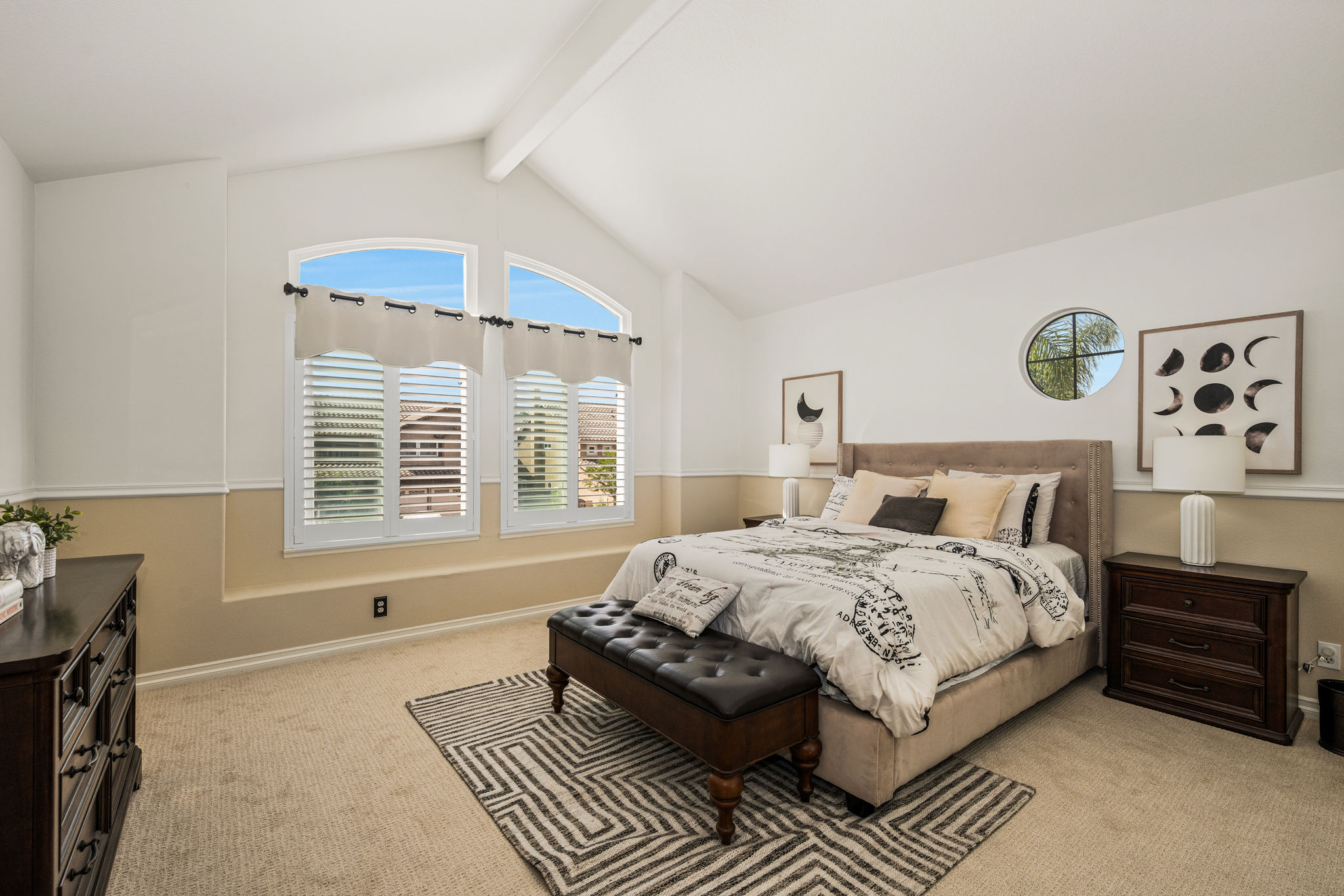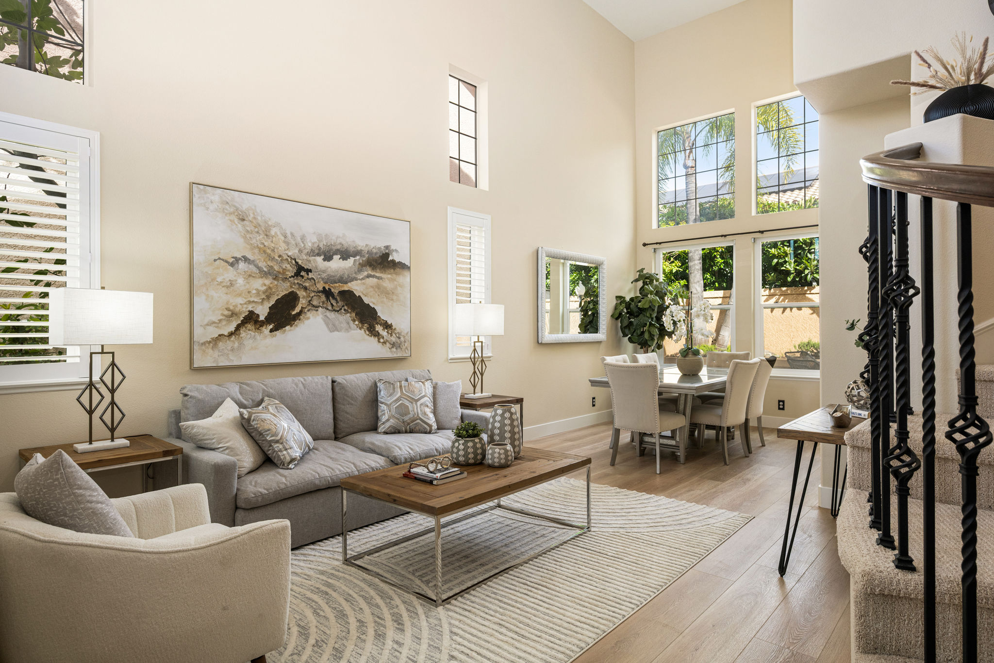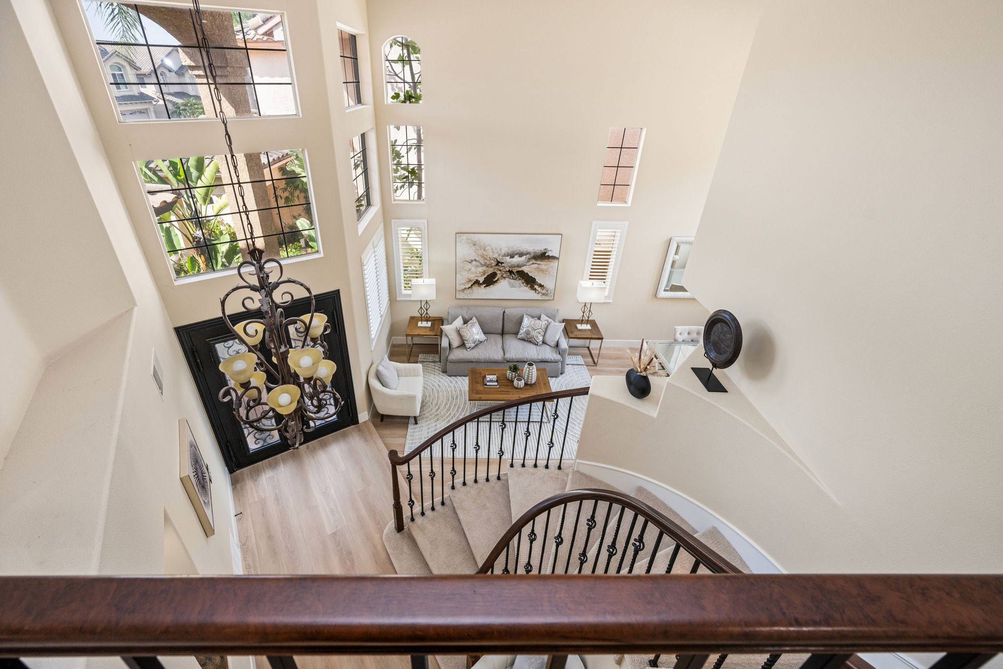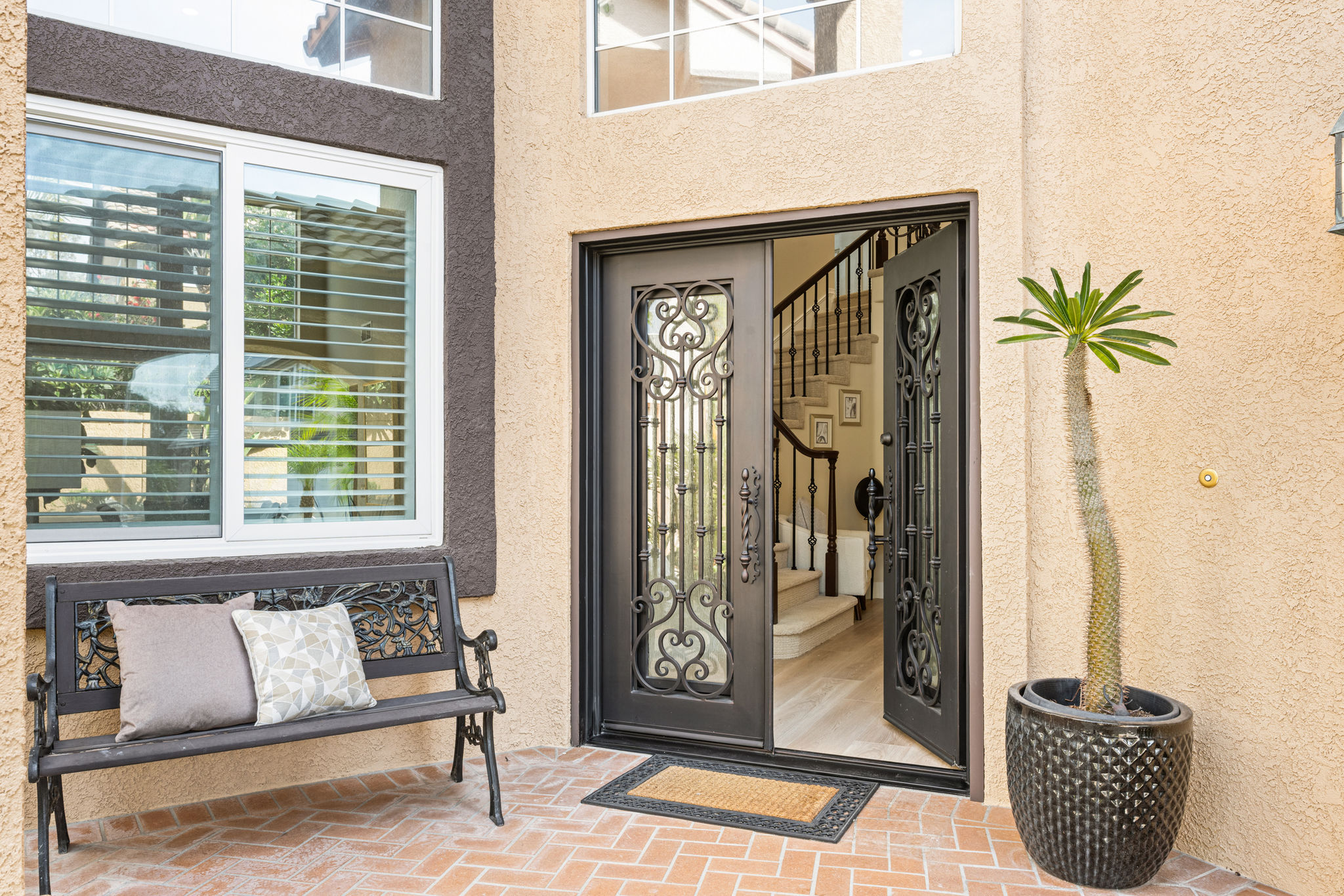 Nestled on a quiet, tree-lined street in the wonderful hillside community of Foothill Ranch, this stunning residence has all the bells and whistles and will surely capture your heart! Built by William Lyon, this inviting home boasts 4 bedrooms, 2.5 bathrooms, and 2,233 square feet of stylish, open-concept living with upgraded finishes and inviting outdoor spaces that inspire comfortable living and entertaining. Guests are welcomed through custom iron double doors into a bright foyer that opens to a spacious formal living room and dining room with soaring ceilings and walls of windows that bring in natural light. The heart of the home is the remodeled kitchen with granite countertops, custom backsplash, upgraded appliances, and a breakfast nook that opens to the family room—the perfect place for gatherings. Custom upgrades include new luxury vinyl flooring, new carpet, plantation shutters, vinyl windows, recessed lighting, upgraded baseboards, fresh paint, a remodeled guest bathroom, a newer water heater, and an upgraded electrical panel. There is also a convenient downstairs laundry room. The spacious primary suite boasts a vaulted ceiling, a large walk-in closet, and a fully remodeled bathroom with a tiled shower, a seamless glass enclosure, a custom standalone tub, a quartz vanity with dual sinks, new mirrors, and light fixtures. Three additional bedrooms share a remodeled secondary bathroom. The backyard offers a private setting for relaxation and entertaining, with a built-in BBQ and a fire pit. With custom upgrades throughout, a three-car garage, and a peaceful cul-de-sac location, this Foothill Ranch home offers a rare opportunity and is in true move-in condition.