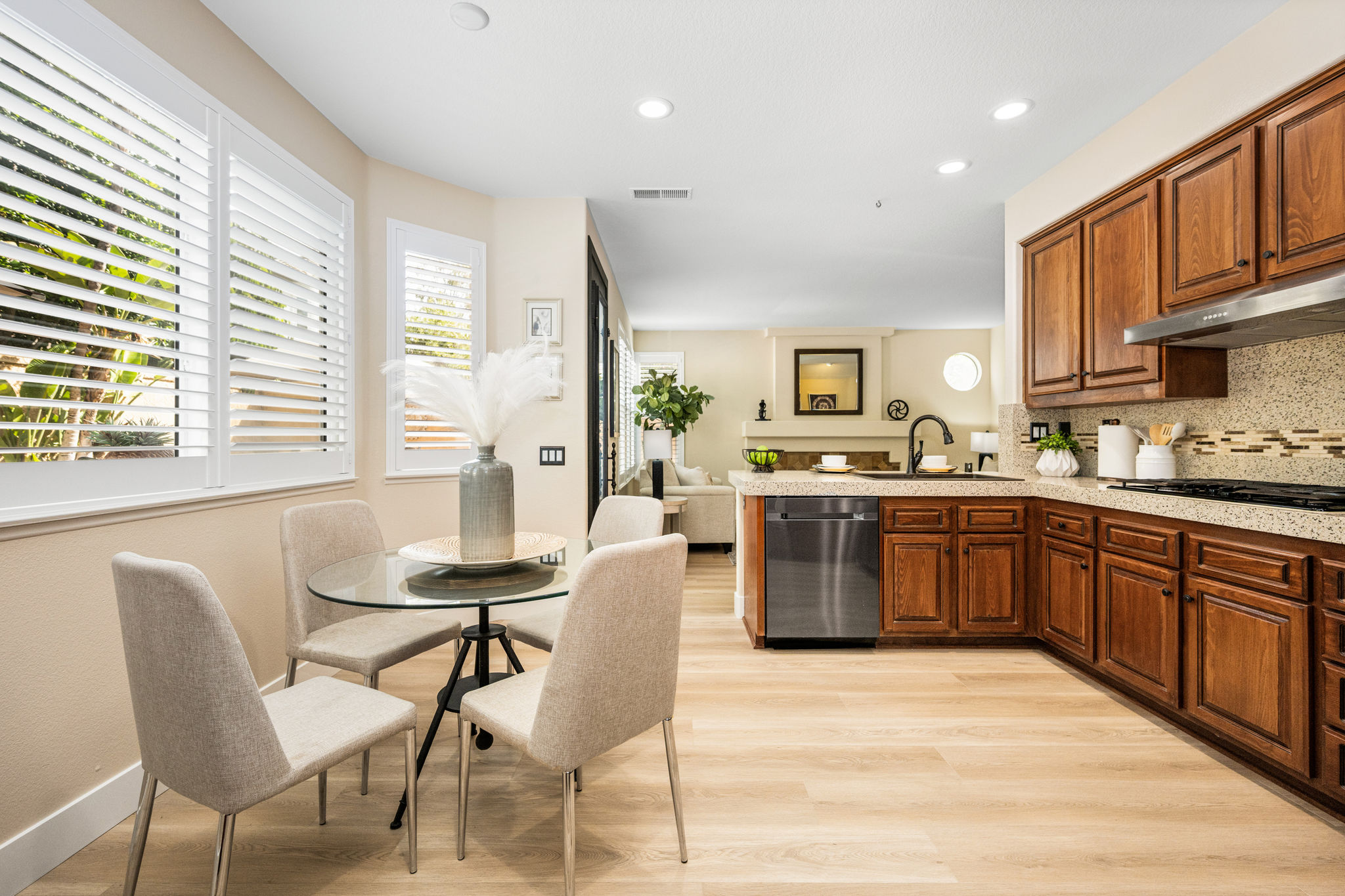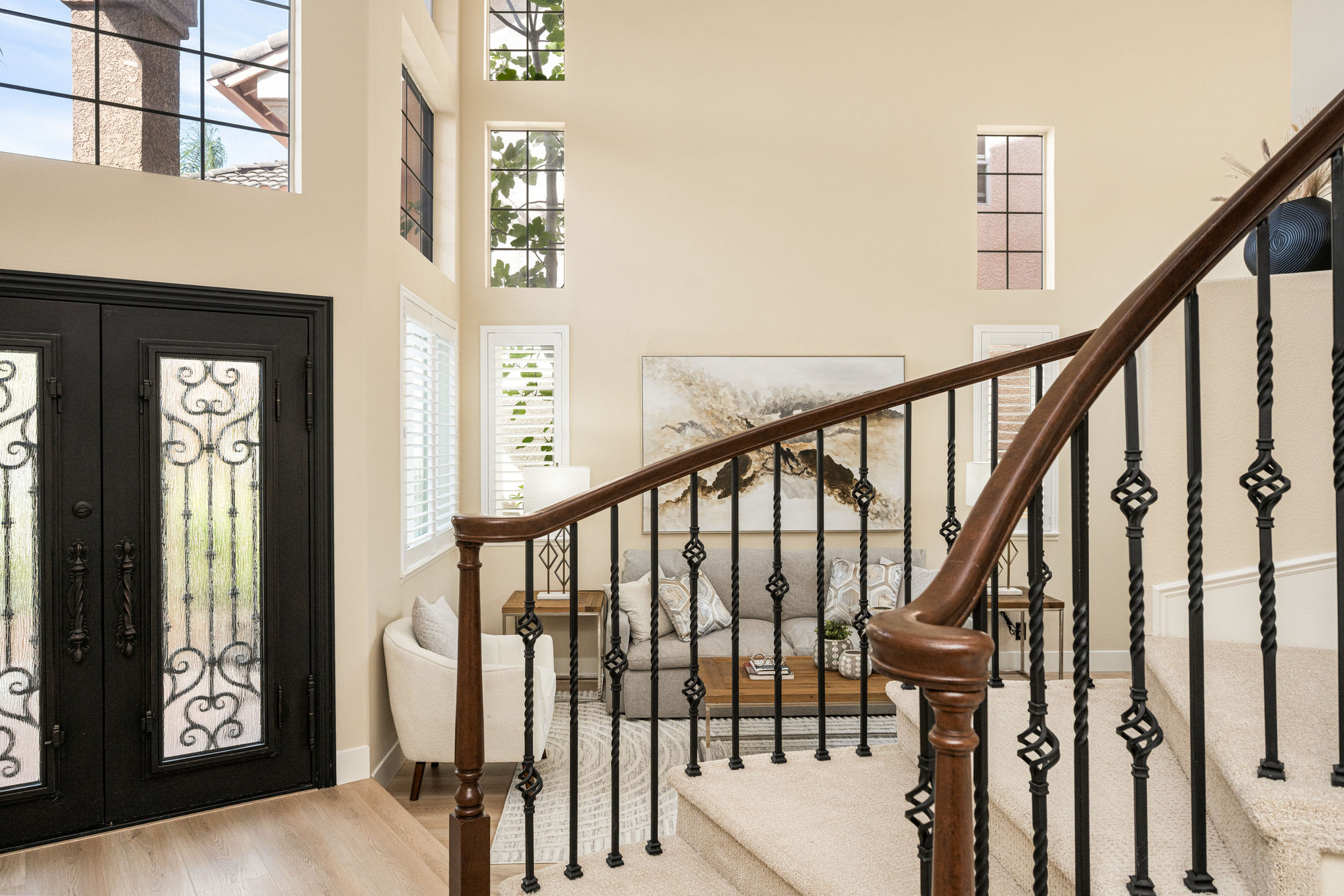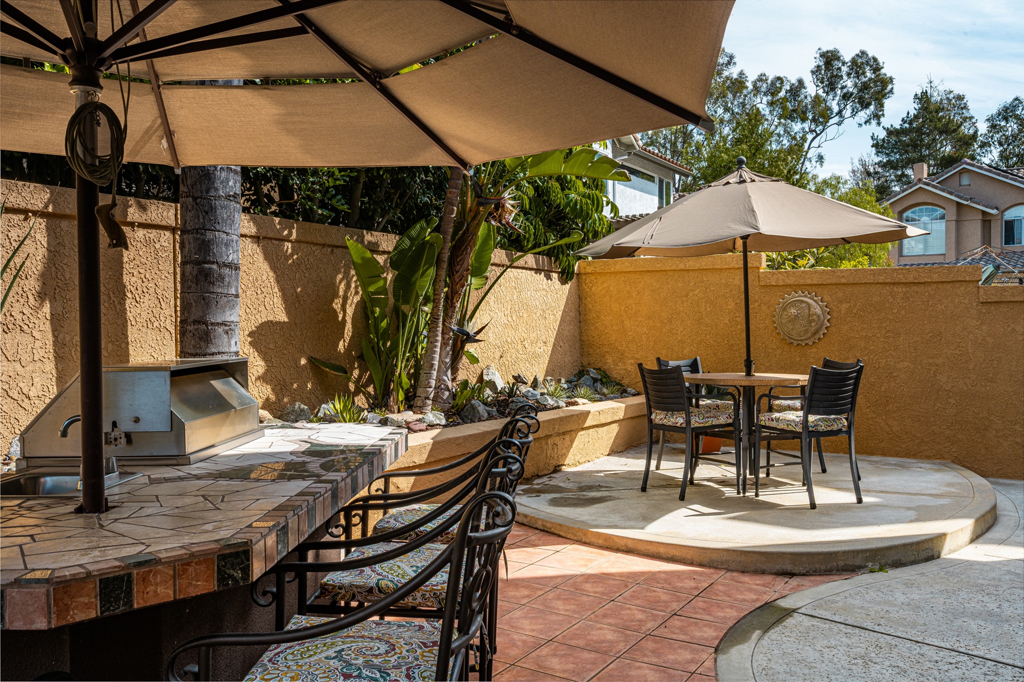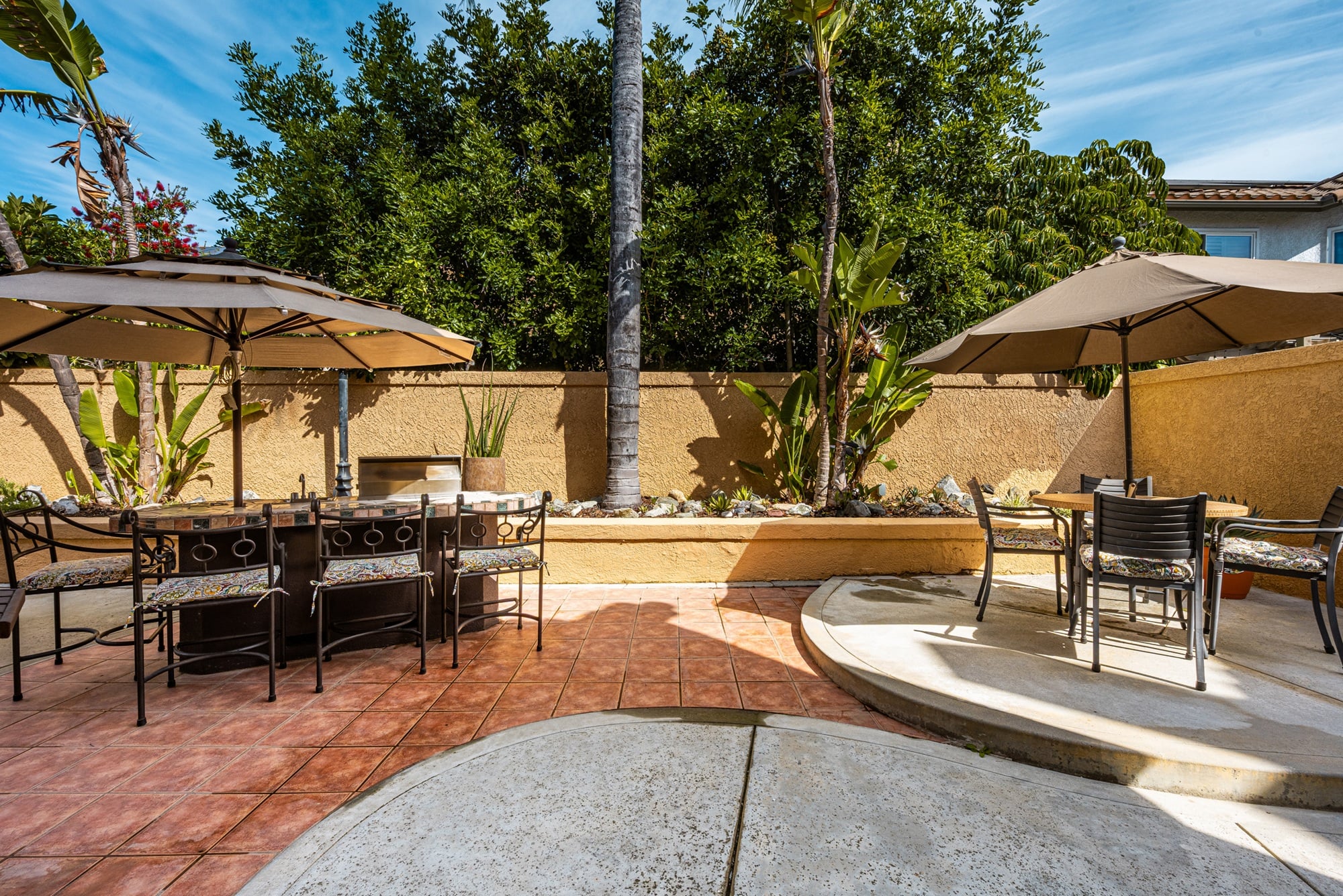 Nestled on a quiet, tree-lined street in the wonderful hillside community of Foothill Ranch, this stunning residence has all the bells and whistles and will surely capture your heart! Built by William Lyon, this inviting home boasts 4 bedrooms, 2.5 bathrooms, and 2,233 square feet of stylish, open-concept living with upgraded finishes and inviting outdoor spaces that inspire comfortable living and entertaining. Guests are welcomed through custom iron double doors into a bright foyer that opens to a spacious formal living room and dining room with soaring ceilings and walls of windows that bring in natural light. The heart of the home is the remodeled kitchen with granite countertops, custom backsplash, upgraded appliances, and a breakfast nook that opens to the family room—the perfect place for gatherings. Custom upgrades include new luxury vinyl flooring, new carpet, plantation shutters, vinyl windows, recessed lighting, upgraded baseboards, fresh paint, a remodeled guest bathroom, a newer water heater, and an upgraded electrical panel. There is also a convenient downstairs laundry room. The spacious primary suite boasts a vaulted ceiling, a large walk-in closet, and a fully remodeled bathroom with a tiled shower, a seamless glass enclosure, a custom standalone tub, a quartz vanity with dual sinks, new mirrors, and light fixtures. Three additional bedrooms share a remodeled secondary bathroom. The backyard offers a private setting for relaxation and entertaining, with a built-in BBQ and a fire pit. With custom upgrades throughout, a three-car garage, and a peaceful cul-de-sac location, this Foothill Ranch home offers a rare opportunity and is in true move-in condition.