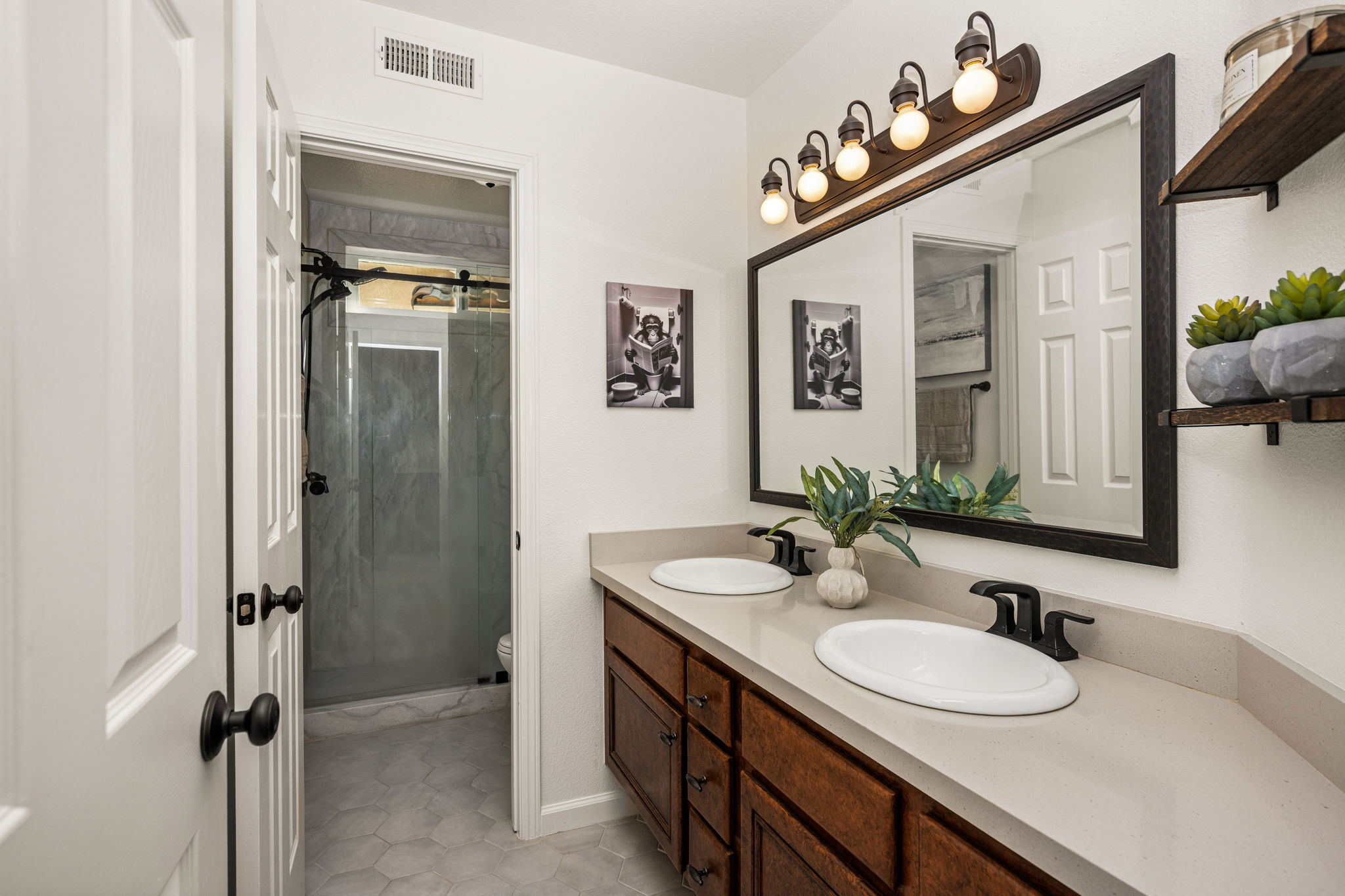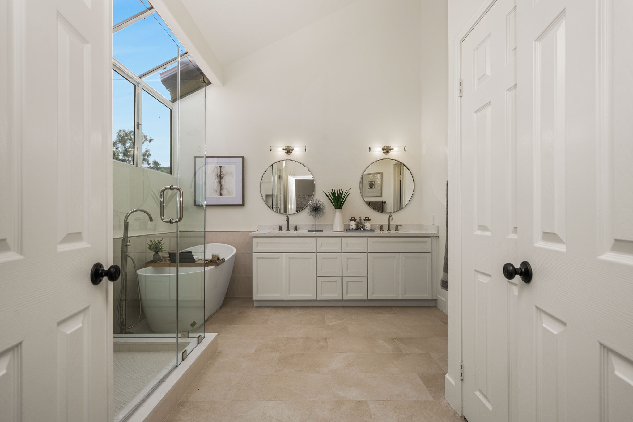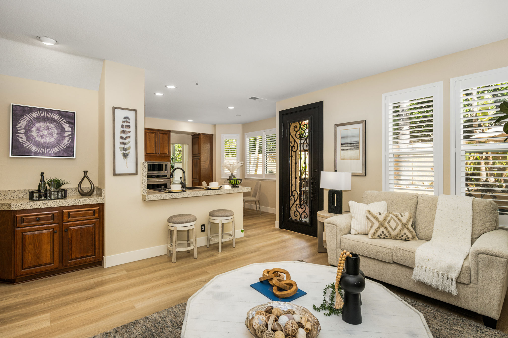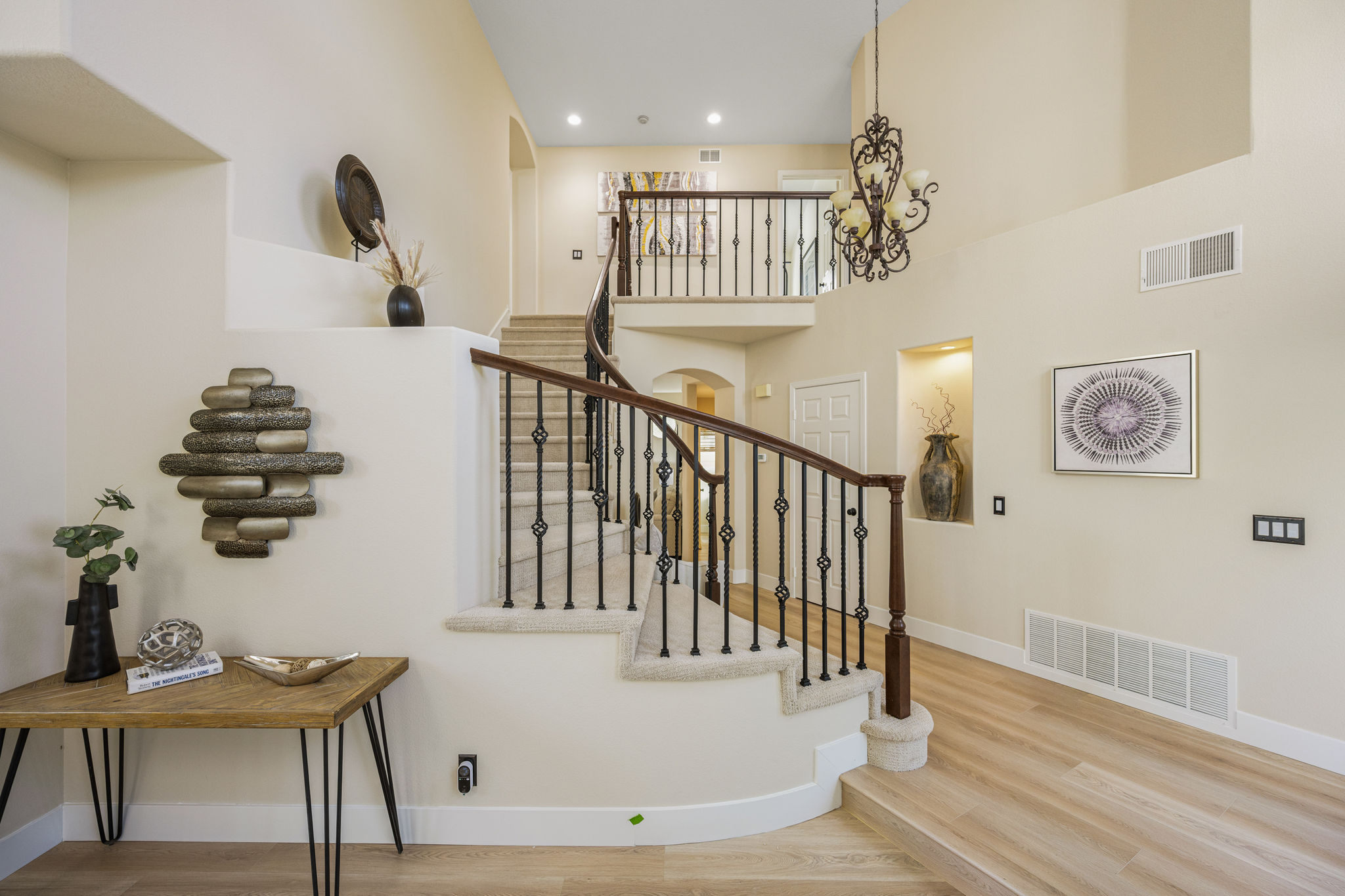Nestled on a quiet, tree-lined street in the wonderful hillside community of Foothill Ranch, this stunning residence has all the bells and whistles and will surely capture your heart! Built by William Lyon, this inviting home boasts 4 bedrooms, 2.5 bathrooms, and 2,233 square feet of stylish, open-concept living with upgraded finishes and inviting outdoor spaces that inspire comfortable living and entertaining. Guests are welcomed through custom iron double doors into a bright foyer that opens to a spacious formal living room and dining room with soaring ceilings and walls of windows that bring in natural light. The heart of the home is the remodeled kitchen with granite countertops, custom backsplash, upgraded appliances, and a breakfast nook that opens to the family room—the perfect place for gatherings. Custom upgrades include new luxury vinyl flooring, new carpet, plantation shutters, vinyl windows, recessed lighting, upgraded baseboards, fresh paint, a remodeled guest bathroom, a newer water heater, and an upgraded electrical panel. There is also a convenient downstairs laundry room. The spacious primary suite boasts a vaulted ceiling, a large walk-in closet, and a fully remodeled bathroom with a tiled shower, a seamless glass enclosure, a custom standalone tub, a quartz vanity with dual sinks, new mirrors, and light fixtures. Three additional bedrooms share a remodeled secondary bathroom. The backyard offers a private setting for relaxation and entertaining, with a built-in BBQ and a fire pit. With custom upgrades throughout, a three-car garage, and a peaceful cul-de-sac location, this Foothill Ranch home offers a rare opportunity and is in true move-in condition.