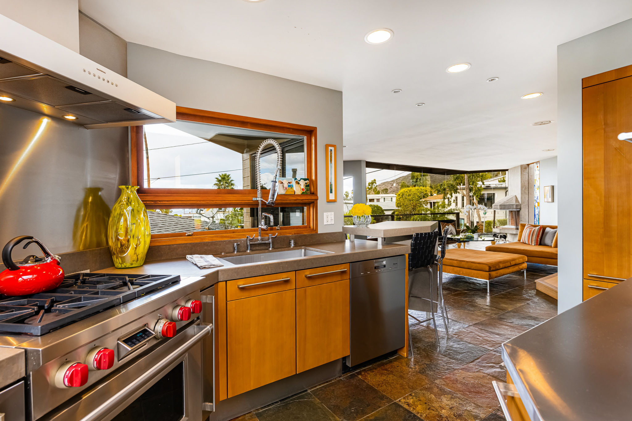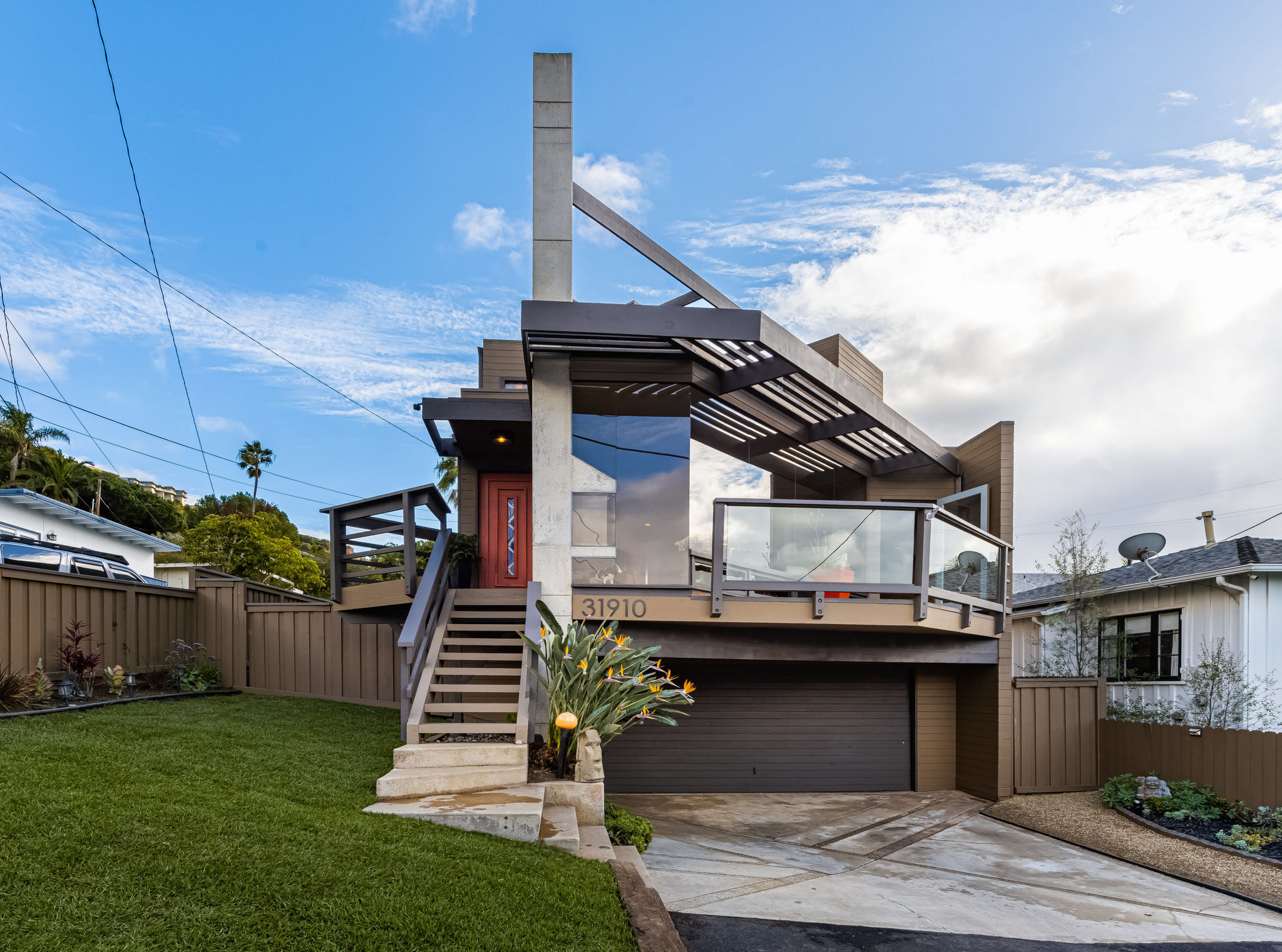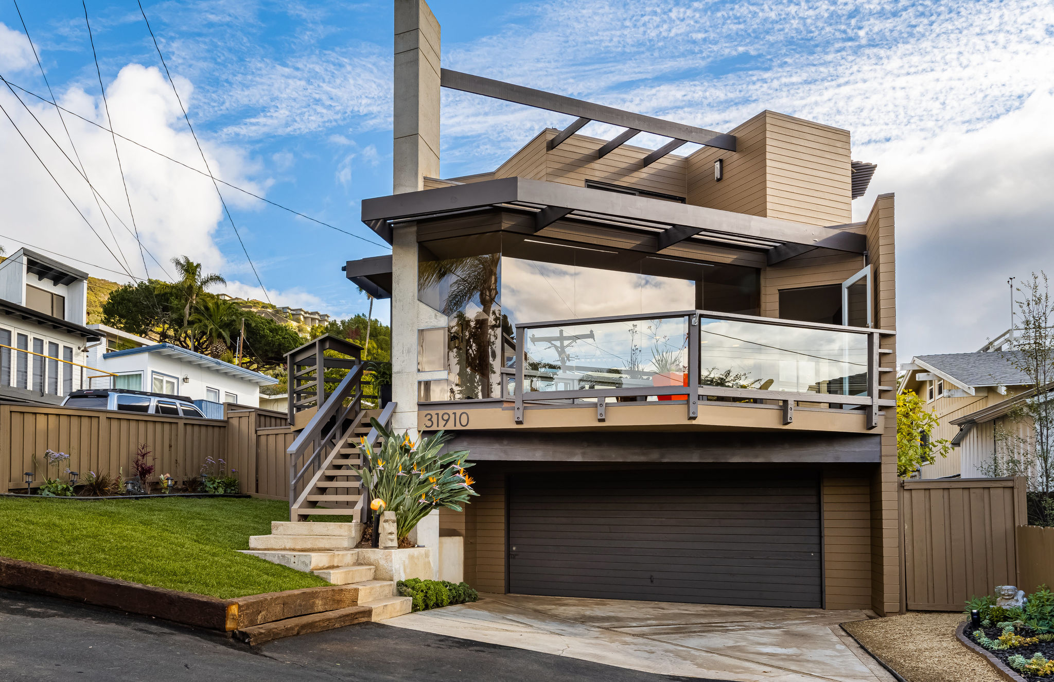 GREAT LOCATION!! OCEAN VIEWS!! This property is the one you've been waiting for. Just one block up from South Laguna's famous Thousand Steps Beach with pristine sandy shores and clear ocean waters, world-class skimboarding, bodyboarding, and snorkeling. Modern construction awaits you with an open floor plan that flows seamlessly from the indoor spaces to spacious wrap-around outdoor decks. This designer home has been meticulously remodeled with stunning architecture and exceptional finish materials. This is your ocean view dream home featuring 3 bedrooms, 3 baths, two-car attached garage with a two-car driveway!! Upon entering the home you'll notice the floor-to-ceiling glass walls, with fabulous ocean views from the living, dining, and kitchen areas. Imagine yourself in the open living room watching the flames flicker in the free-standing concrete fireplace as you watch the beautiful evening sunset. Amazing industrial chef's kitchen, custom-designed by Euro Kitchen in Laguna Beach. Caesar Stone, steel countertops, semantic wood cabinetry, under-counter lighting, Wolf range/oven, Gaggenau vent hood, Meile dishwasher, SUBZERO refrigerator, stainless steel microwave, sink, and another patio off the kitchen just waiting for a cup of morning coffee. Convenient first-level bedroom with adjacent remodeled bathroom. Upstairs Master suite with amazing ocean views, open sliding doors to a large outdoor patio with Catalina, sunset and ocean views, stunning remodeled master bath with walk-in "Mr. Steam" shower, skylight, large closet area, and private balcony. You could actually step away from your sink and walk out onto your own private balcony looking out over spectacular ocean views. I love this house:) Adjoining en-suite bedroom with a gorgeous remodeled bathroom. Yes, there's even a large side yard perfect for a victory garden, play area, or a perfect place for outdoor dining. This house is SPECIAL!! Don't miss out on this DREAM HOME!!