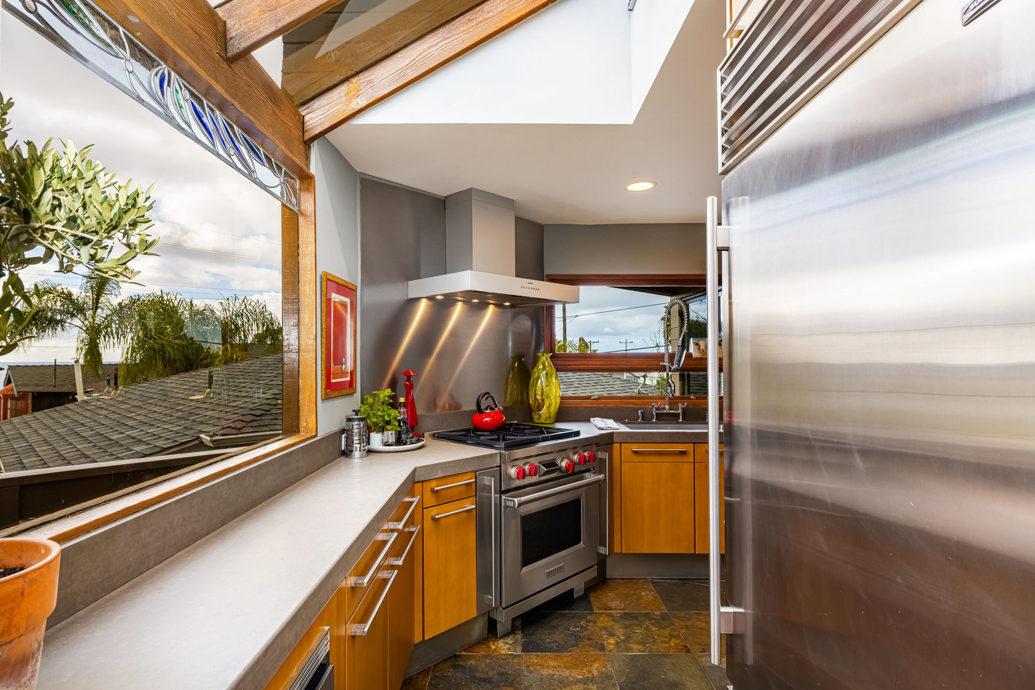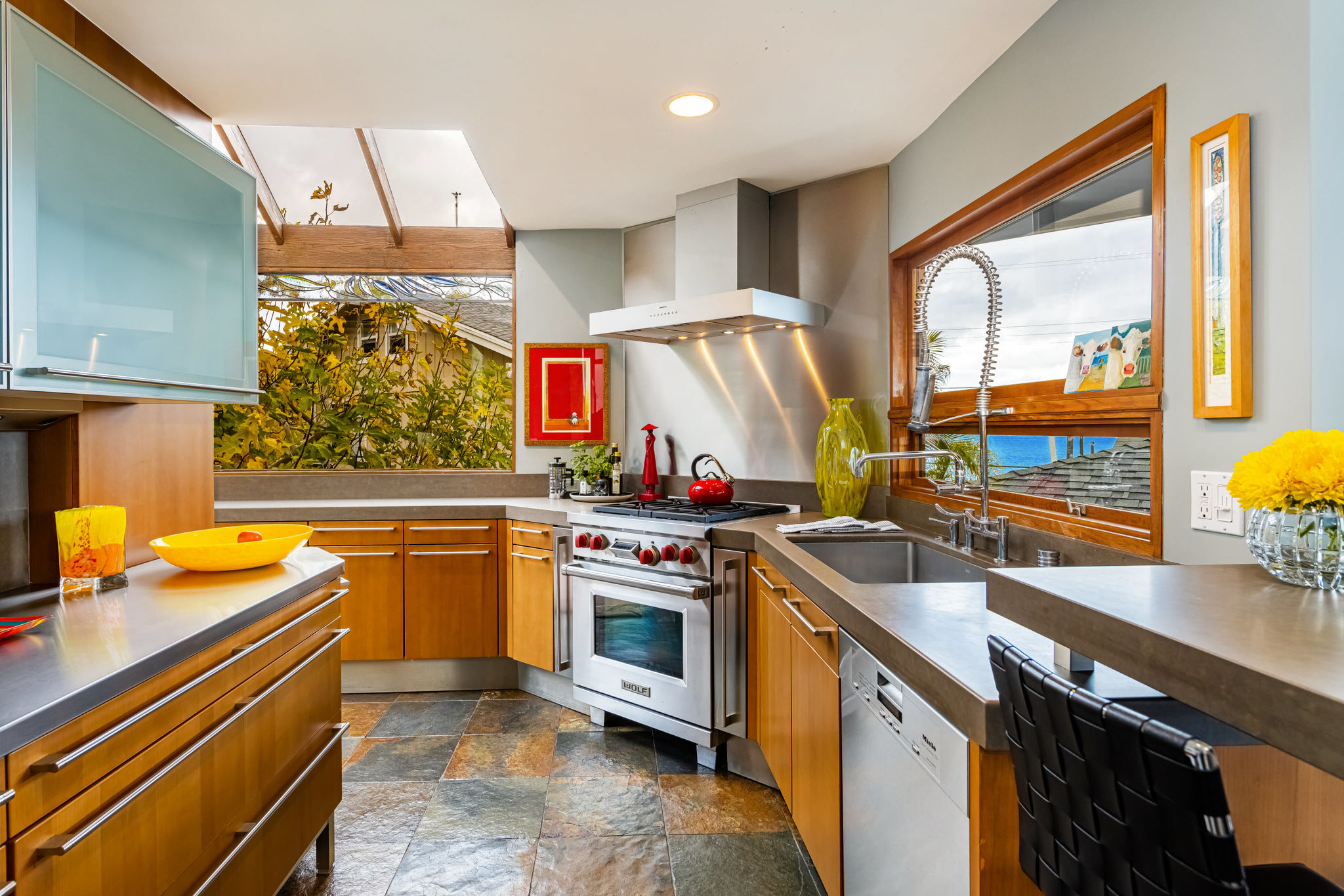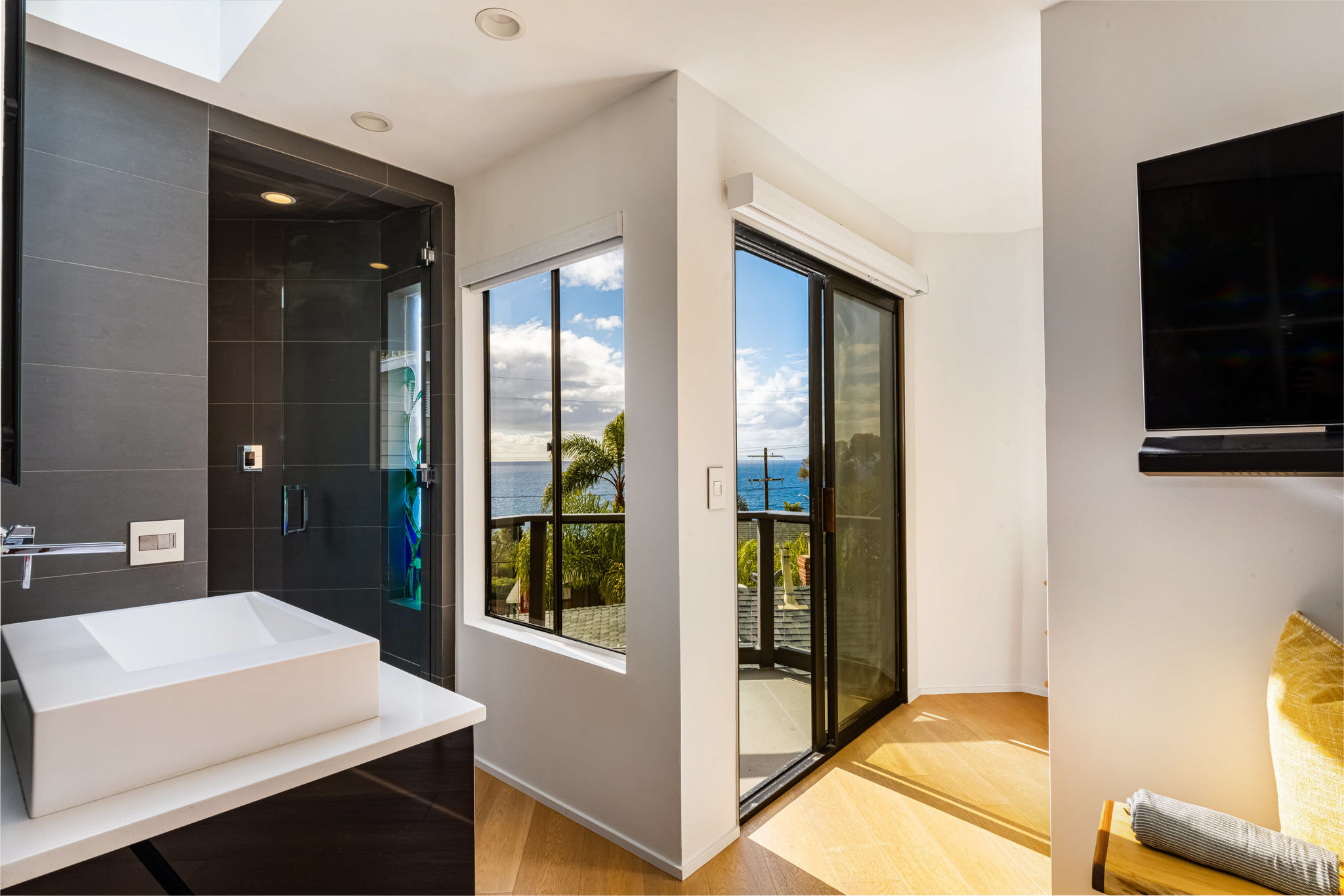 GREAT LOCATION!! OCEAN VIEWS!! This property is the one you've been waiting for. Just one block up from South Laguna's famous Thousand Steps Beach with pristine sandy shores and clear ocean waters, world-class skimboarding, bodyboarding, and snorkeling. Modern construction awaits you with an open floor plan that flows seamlessly from the indoor spaces to spacious wrap-around outdoor decks. This designer home has been meticulously remodeled with stunning architecture and exceptional finish materials. This is your ocean view dream home featuring 3 bedrooms, 3 baths, two-car attached garage with a two-car driveway!! Upon entering the home you'll notice the floor-to-ceiling glass walls, with fabulous ocean views from the living, dining, and kitchen areas. Imagine yourself in the open living room watching the flames flicker in the free-standing concrete fireplace as you watch the beautiful evening sunset. Amazing industrial chef's kitchen, custom-designed by Euro Kitchen in Laguna Beach. Caesar Stone, steel countertops, semantic wood cabinetry, under-counter lighting, Wolf range/oven, Gaggenau vent hood, Meile dishwasher, SUBZERO refrigerator, stainless steel microwave, sink, and another patio off the kitchen just waiting for a cup of morning coffee. Convenient first-level bedroom with adjacent remodeled bathroom. Upstairs Master suite with amazing ocean views, open sliding doors to a large outdoor patio with Catalina, sunset and ocean views, stunning remodeled master bath with walk-in "Mr. Steam" shower, skylight, large closet area, and private balcony. You could actually step away from your sink and walk out onto your own private balcony looking out over spectacular ocean views. I love this house:) Adjoining en-suite bedroom with a gorgeous remodeled bathroom. Yes, there's even a large side yard perfect for a victory garden, play area, or a perfect place for outdoor dining. This house is SPECIAL!! Don't miss out on this DREAM HOME!!