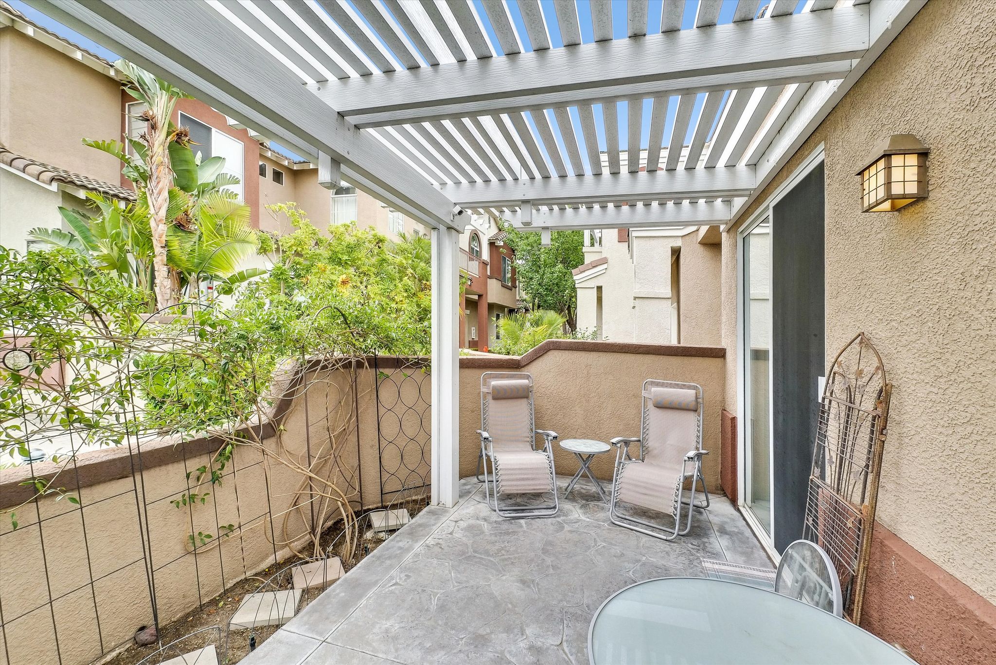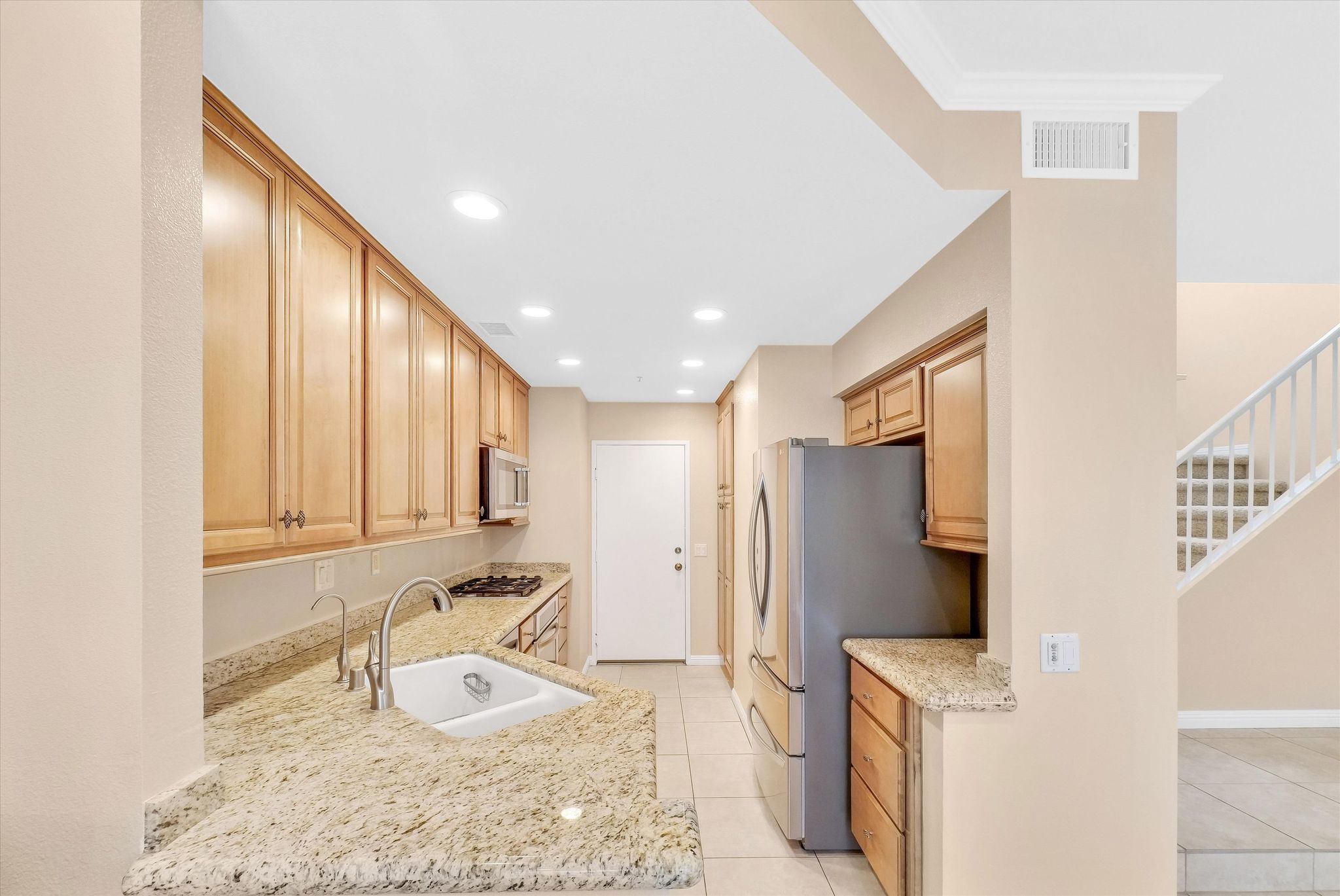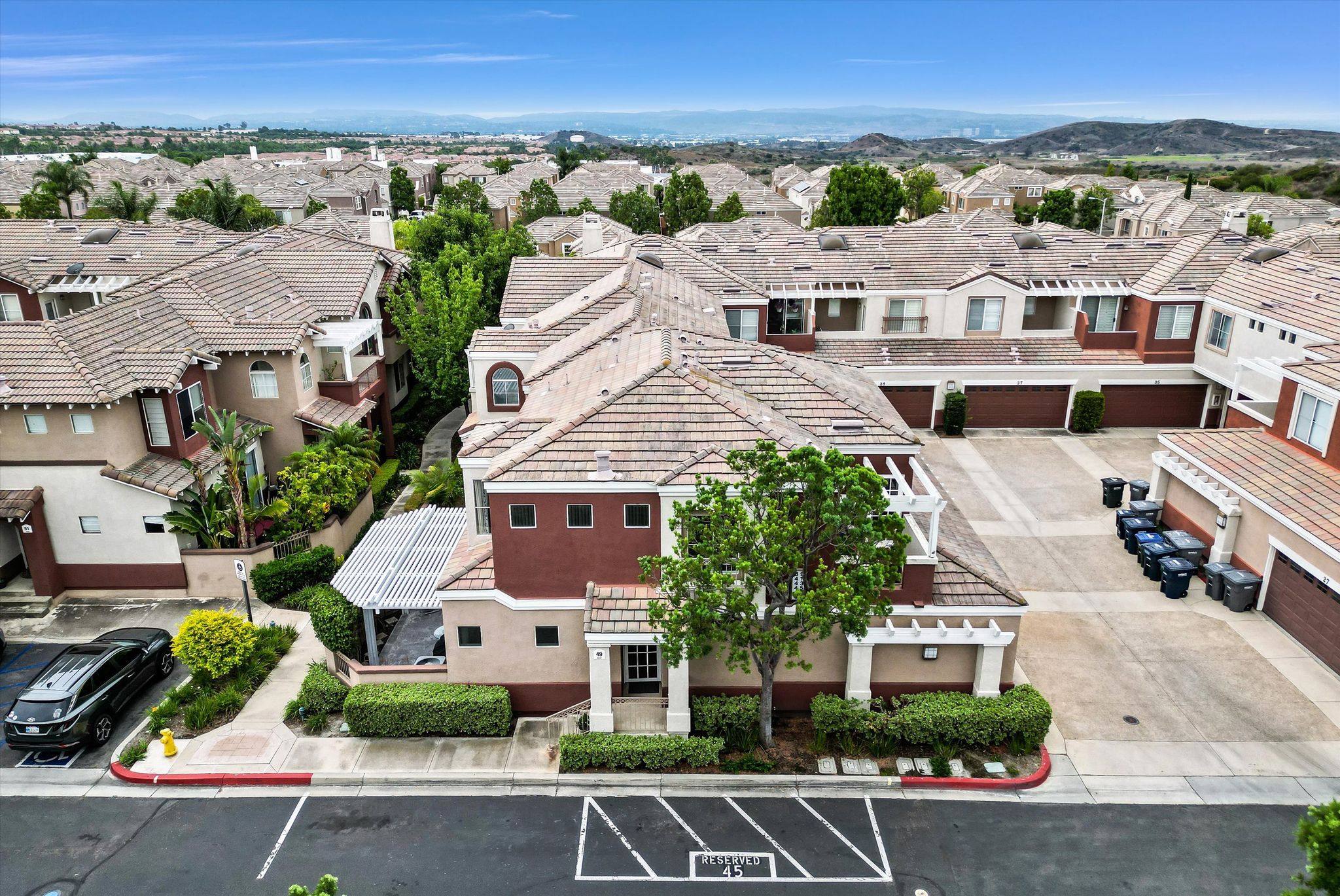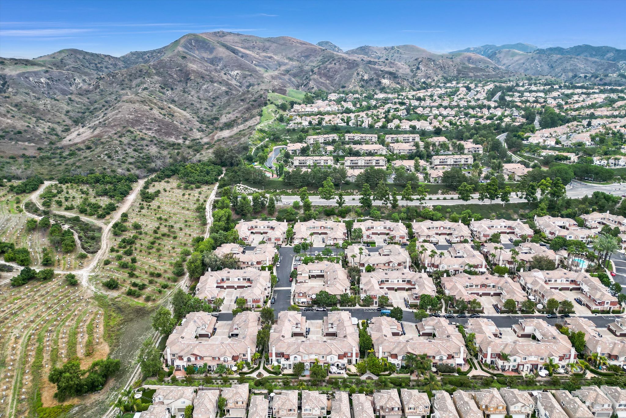 Welcome to the highly desirable Vineyards Community of Foothill Ranch. This unit is a 2 bed, 2.5 bath home that has direct access from the 2 car garage. Downstairs features tile flooring throughout with light neutral colors and has direct access to the side patio. The large kitchen features granite countertops, recessed lighting, plenty of cabinet space for storage and a built-in stove and oven . The living room is spacious and has a cozy and inviting fireplace. Garage features custom built in storage and tool bench. Upstairs boasts a large primary suite with a walk-in closet. The secondary bedroom has a full bath with its own private balcony. The laundry area is conveniently located upstairs between both bedrooms. Custom upgrades include: Brand New PEX Piping, crown molding and updated base boards. Vineyard's residents enjoy resort-style amenities including parks, pool/spa, & children’s playground.  Conveniently located close to the Irvine Spectrum, Foothill Ranch Towne Center, award-winning schools, and Whiting Ranch Wilderness Park. Easy Toll Road & Freeways Access makes it a great location.